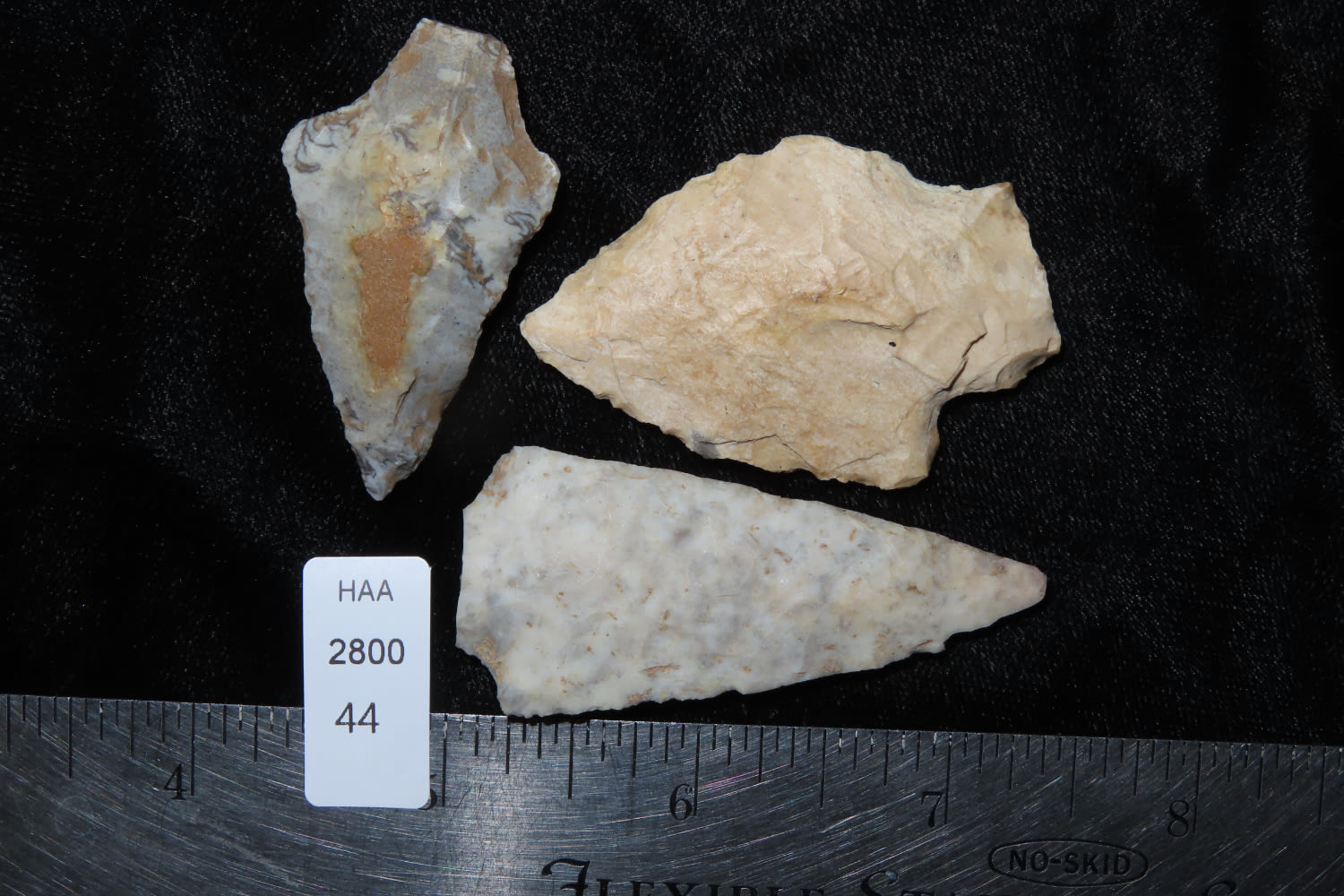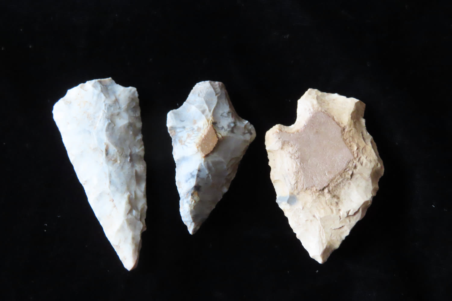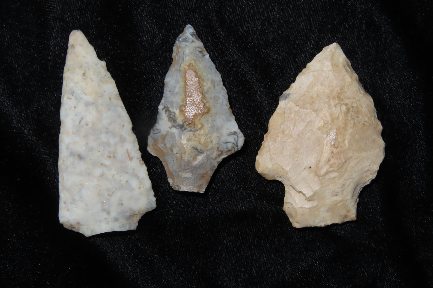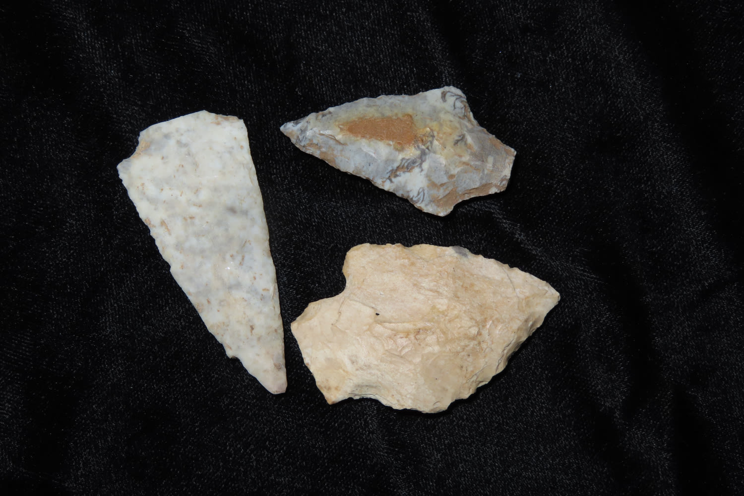 Grouping of 3 Native American Arrrowheads found in Southern USA..