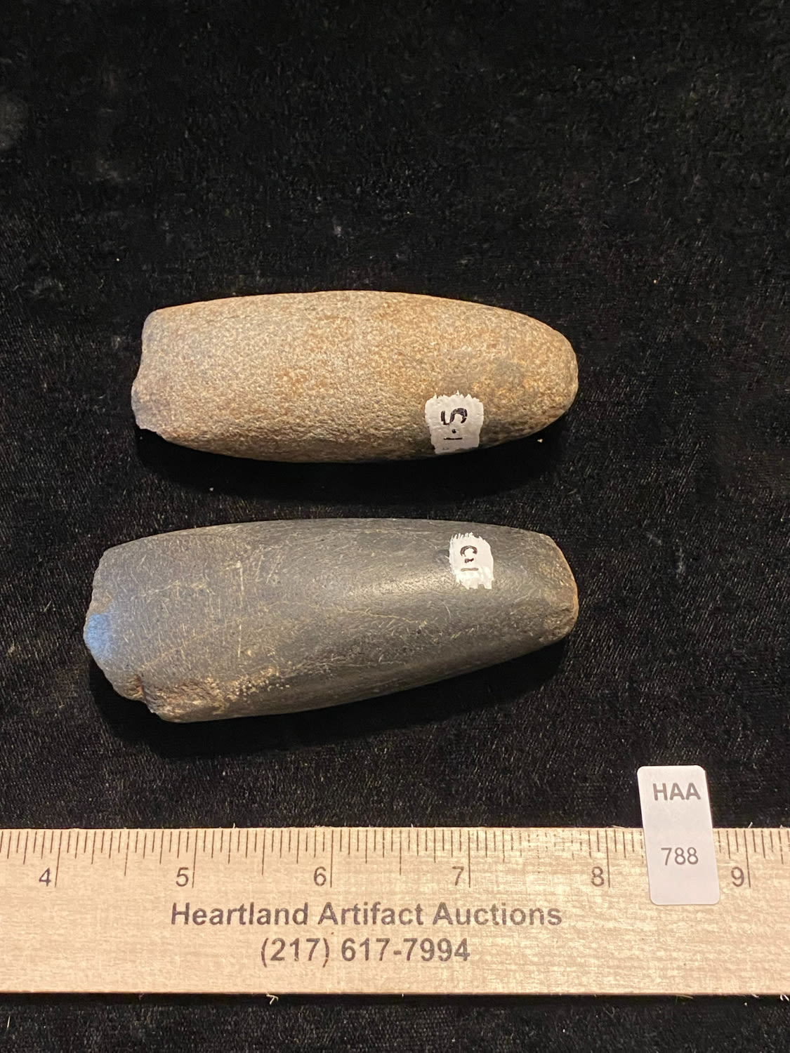 (2) 3 1/4″ Mandan Celts, found in Central Oklahoma, Ex Jesse Jordon Collection