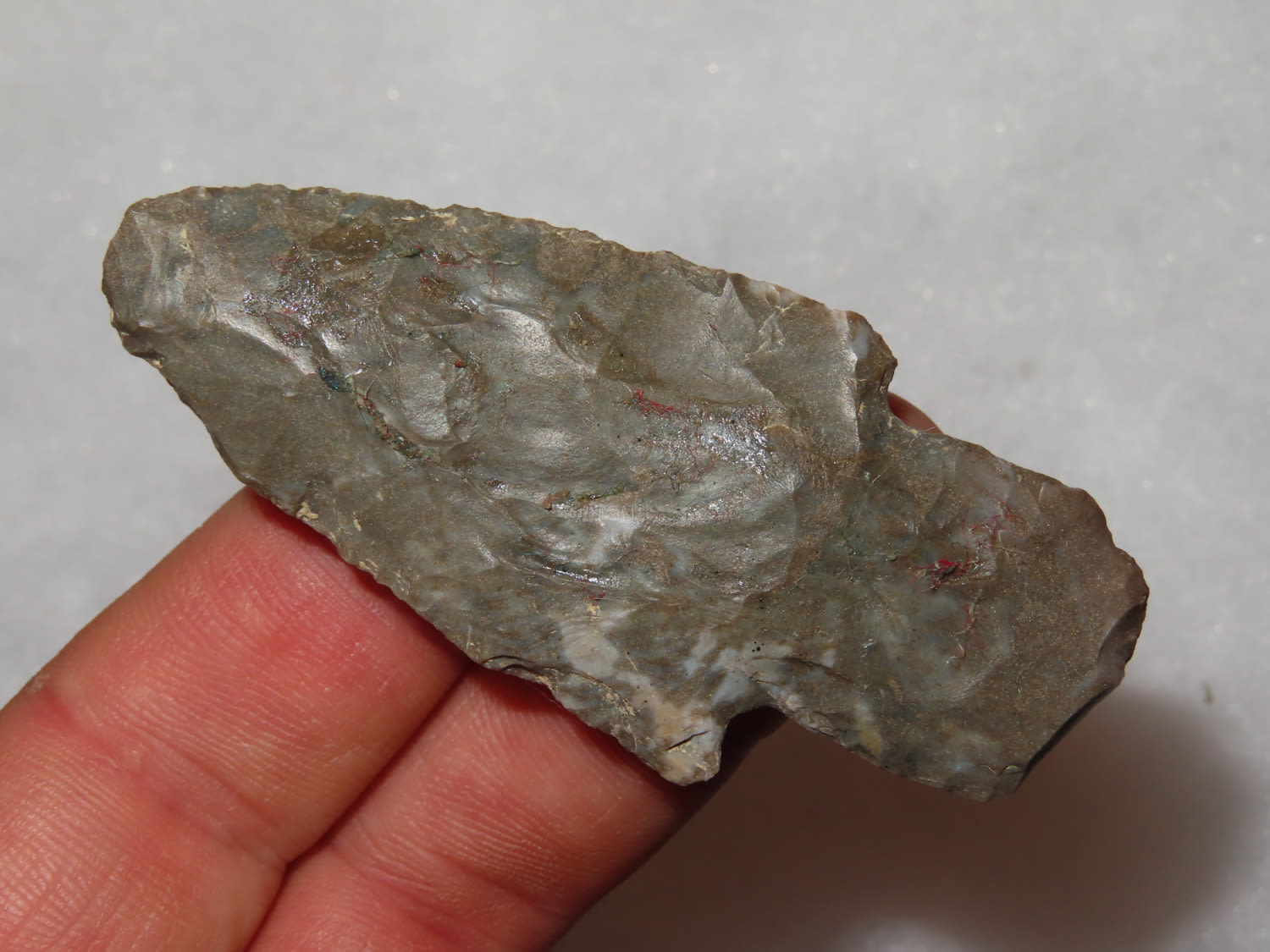 2 3/4″ Turkeytail, Found in Barren County Kentucky, From a Private Collection that RockyHall local to him through an estate sale. These are the best of the 1300 pieces of flint out of the collection. It was mostly personal finds, however there were a couple pieces from Missouri and Texas. All are Guaranteed Authentic and come with a NQA 30 Day Money Back Guarantee.