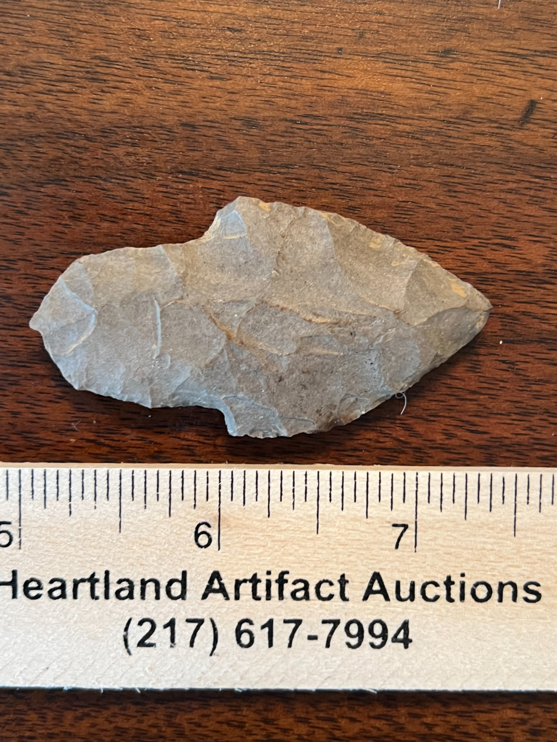 Nice Arrowhead Found in Barren County Kentucky, From a Private Collection that RockyHall local to him through an estate sale. These are the best of the 1300 pieces of flint out of the collection. It was mostly personal finds, however there were a couple pieces from Missouri and Texas. All are Guaranteed Authentic and come with a NQA 30 Day Money Back Guarantee.