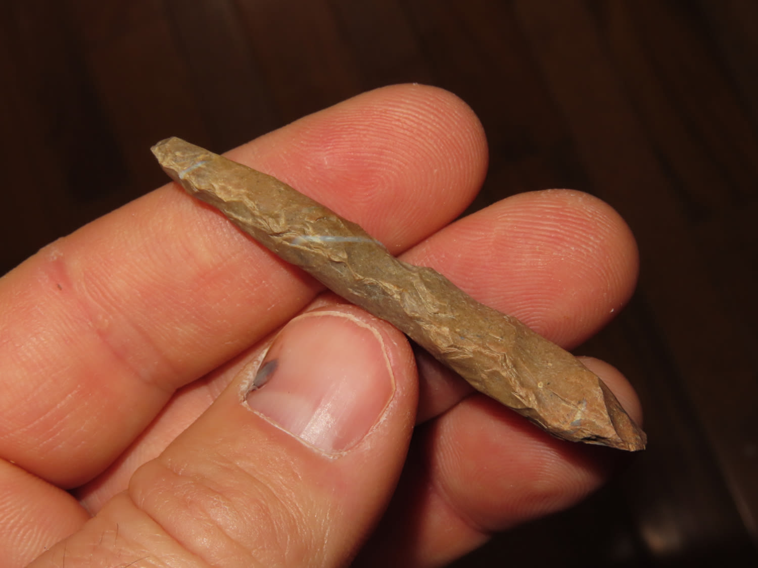 2.3/8″ Pencil Drill. Found in Barren County Kentucky, From a Private Collection that RockyHall local to him through an estate sale. These are the best of the 1300 pieces of flint out of the collection. It was mostly personal finds, however there were a couple pieces from Missouri and Texas. All are Guaranteed Authentic and come with a NQA 30 Day Money Back Guarantee.