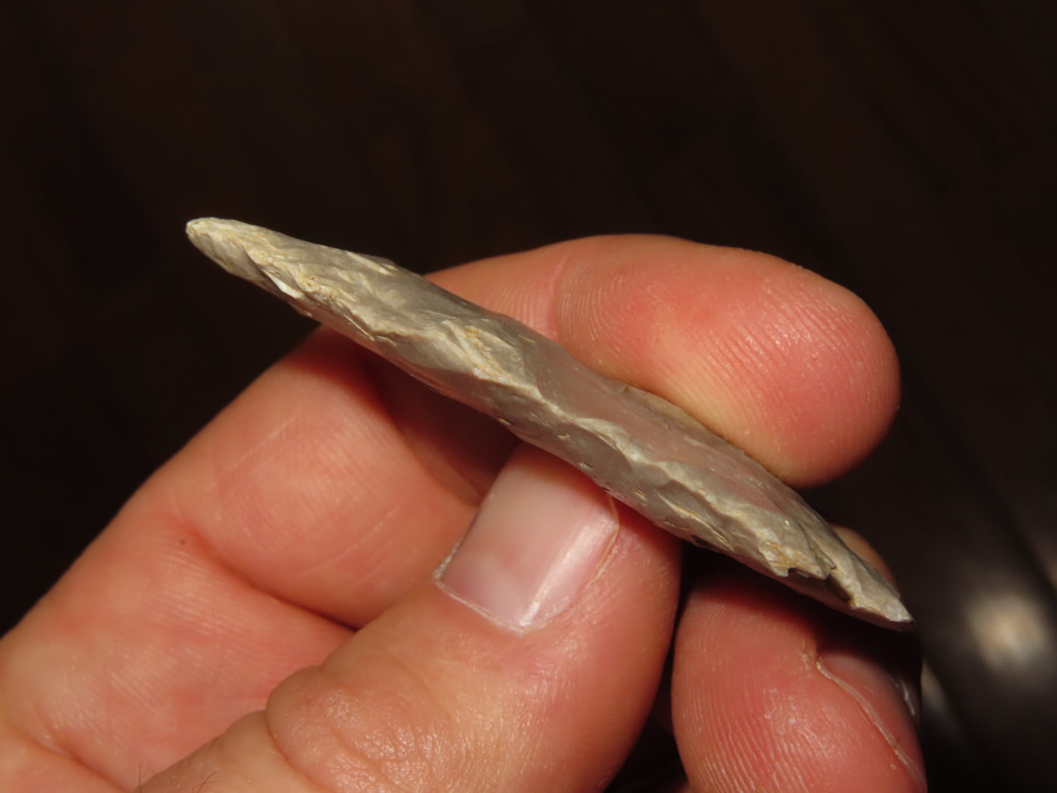 2.3/16″ Kirk Corner Notch Found in Barren County Kentucky, From a Private Collection that RockyHall local to him through an estate sale. These are the best of the 1300 pieces of flint out of the collection. It was mostly personal finds, however there were a couple pieces from Missouri and Texas. All are Guaranteed Authentic and come with a NQA 30 Day Money Back Guarantee.