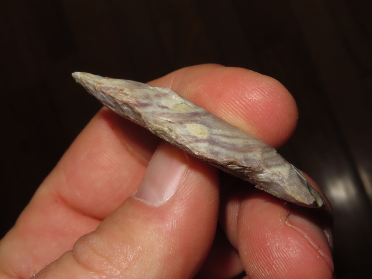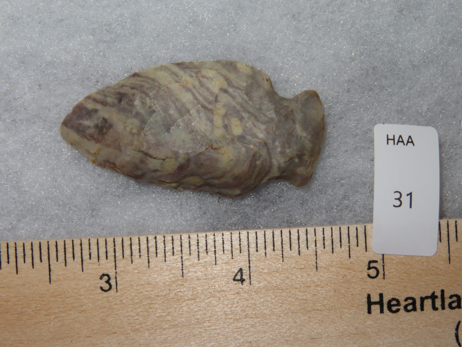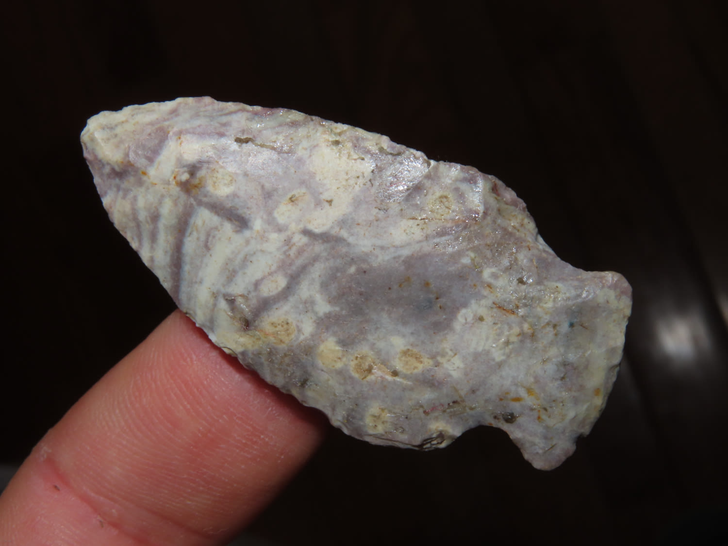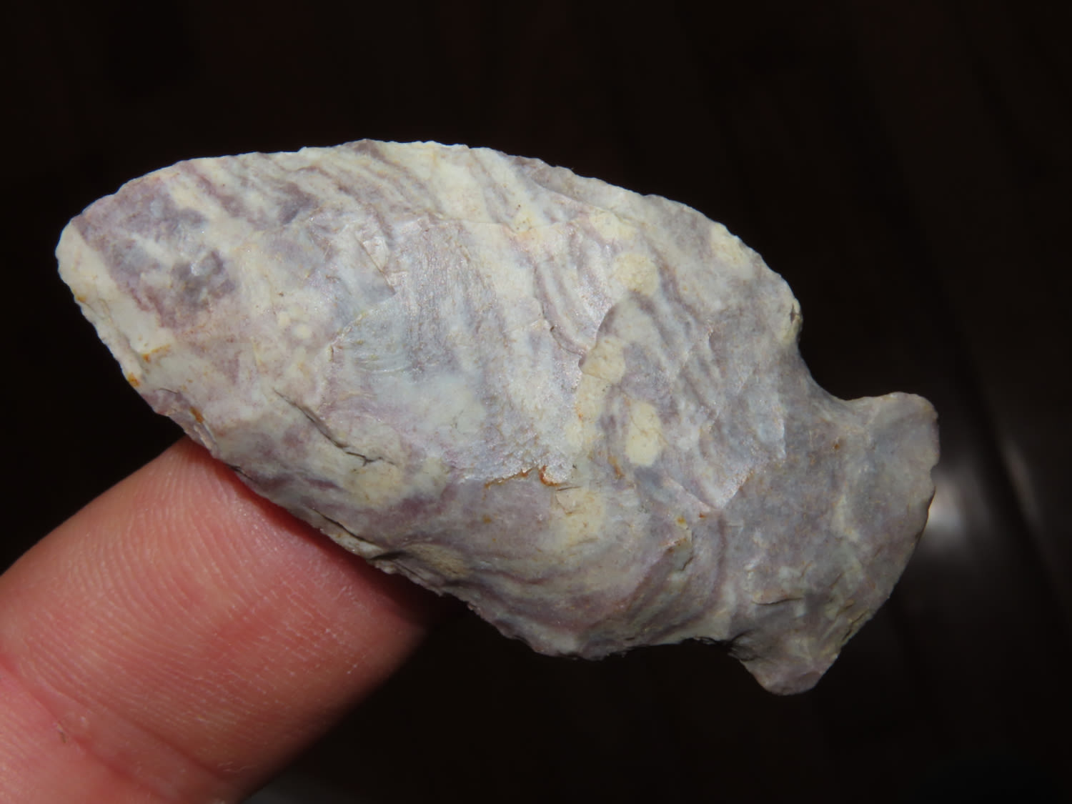2.1/8″ Super Colorful Bottleneck Found in Barren County Kentucky, From a Private Collection that RockyHall local to him through an estate sale. These are the best of the 1300 pieces of flint out of the collection. It was mostly personal finds, however there were a couple pieces from Missouri and Texas. All are Guaranteed Authentic and come with a NQA 30 Day Money Back Guarantee.
