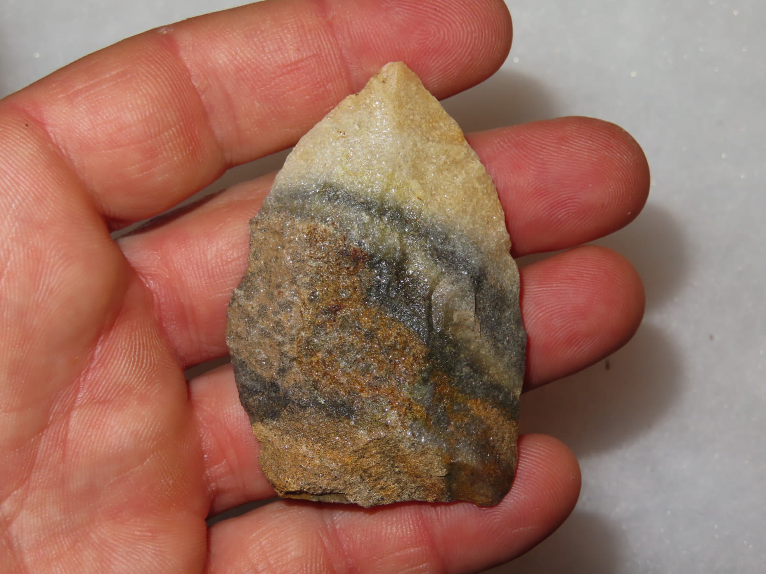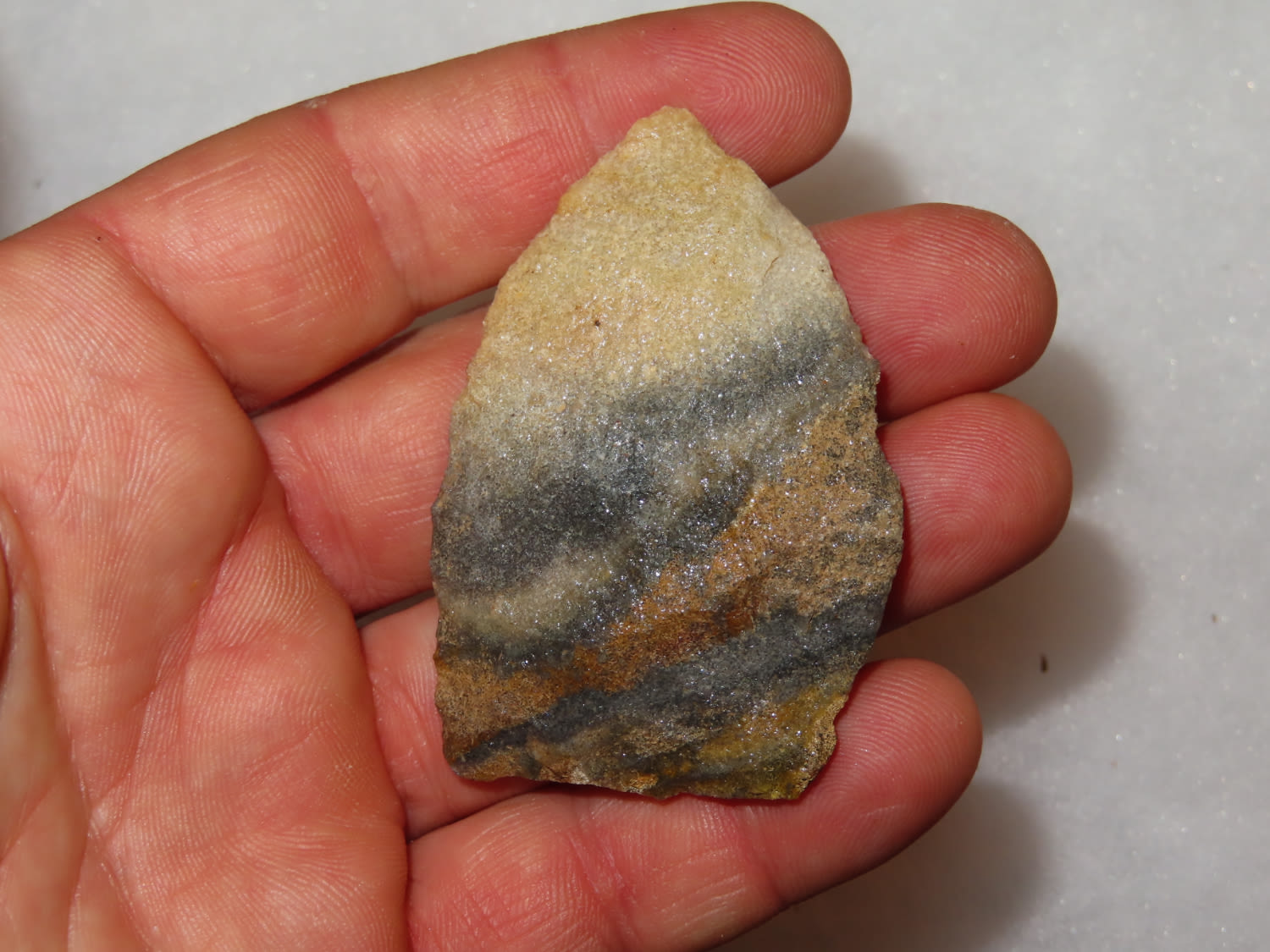 2.3/8″ Beautiful Quartzite Archic Blade. Found in Barren County Kentucky, From a Private Collection that RockyHall local to him through an estate sale. These are the best of the 1300 pieces of flint out of the collection. It was mostly personal finds, however there were a couple pieces from Missouri and Texas. All are Guaranteed Authentic and come with a NQA 30 Day Money Back Guarantee.