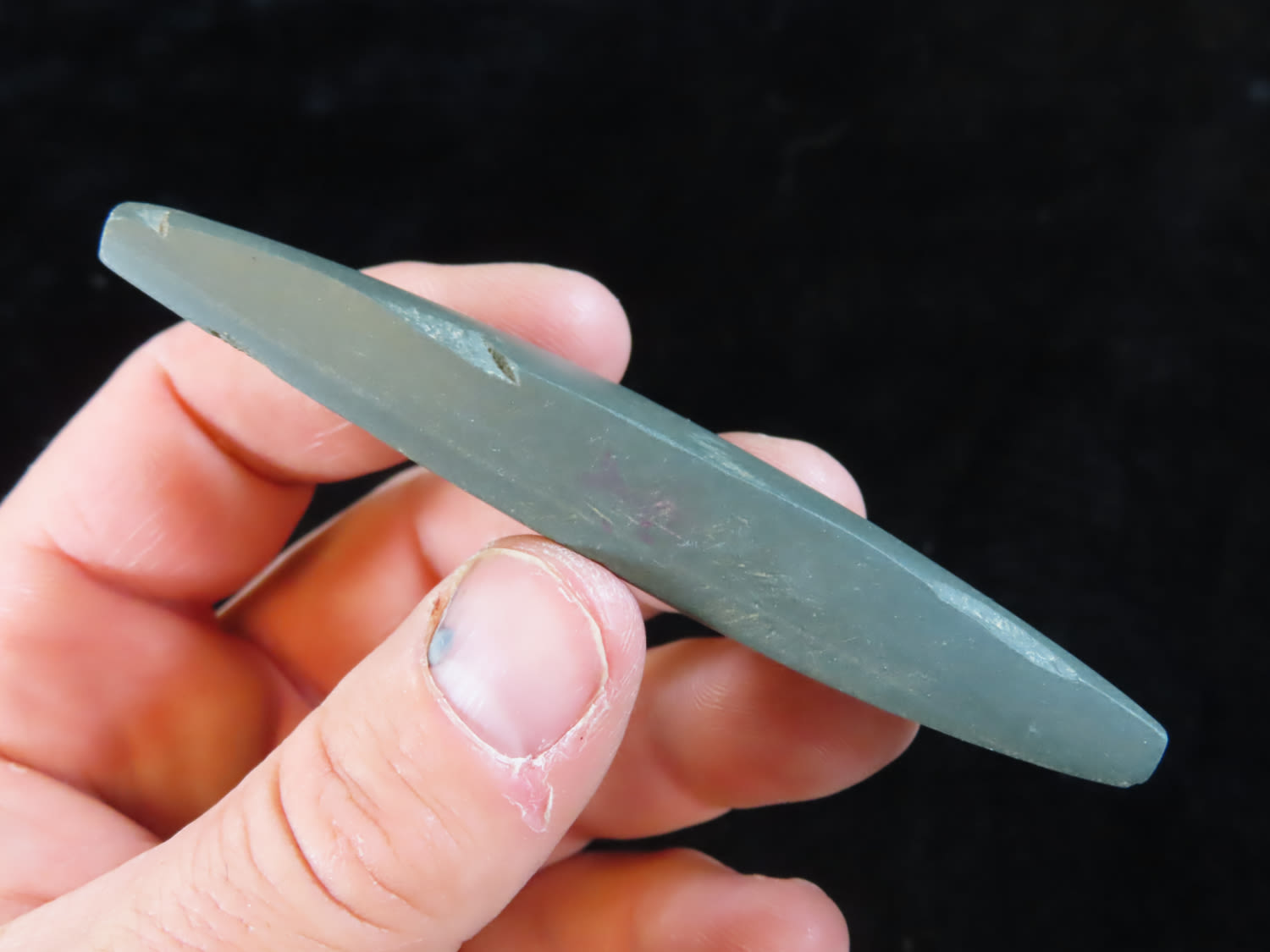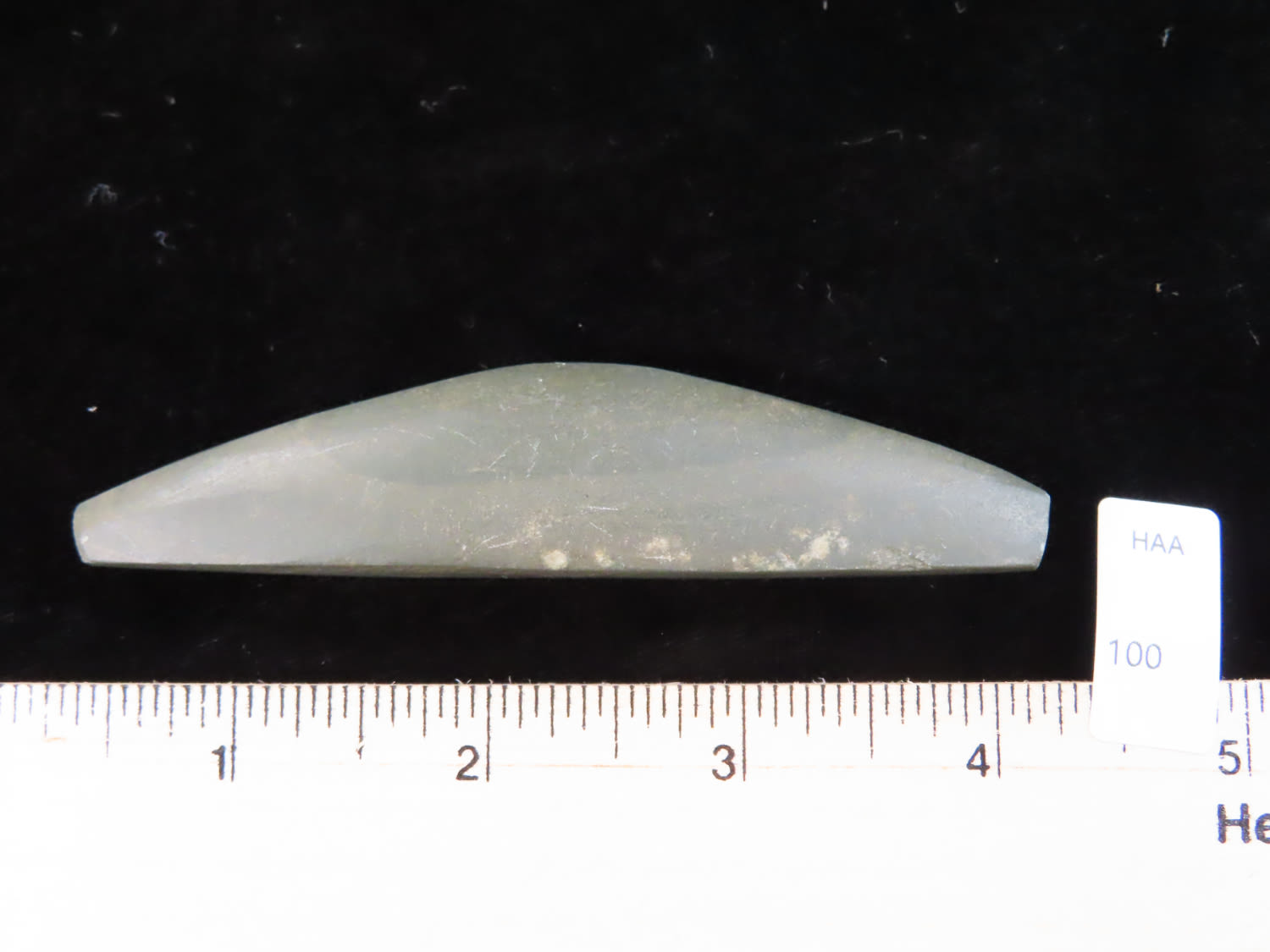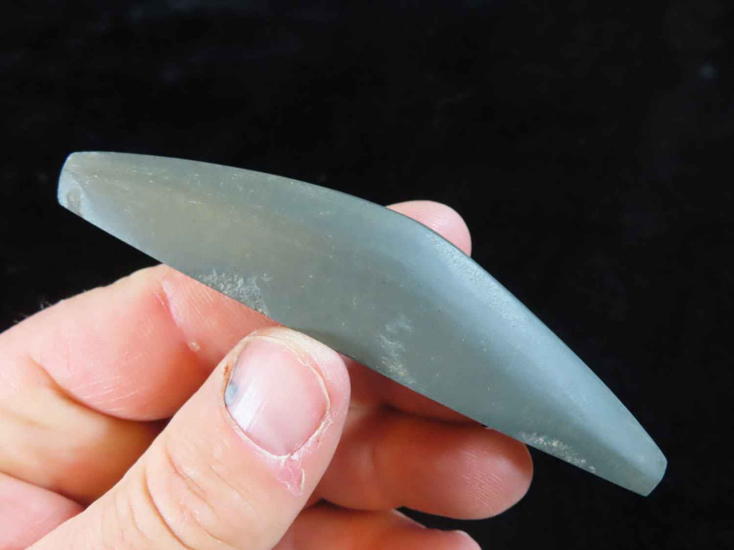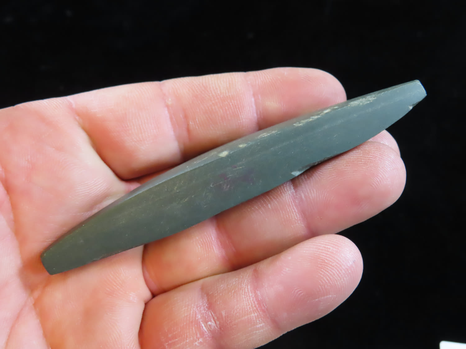 3 7/8″ Slate Boatstone, found in Arkansas, Ex Rick Steed, Ex Randall Kimbrell Collection