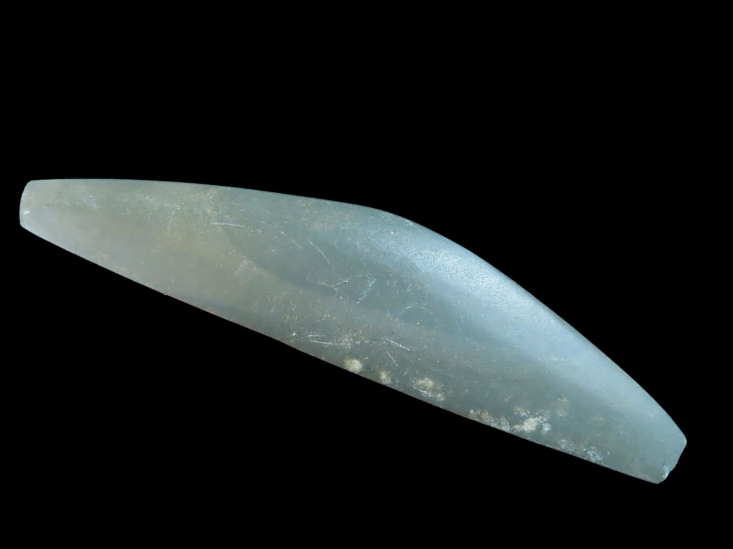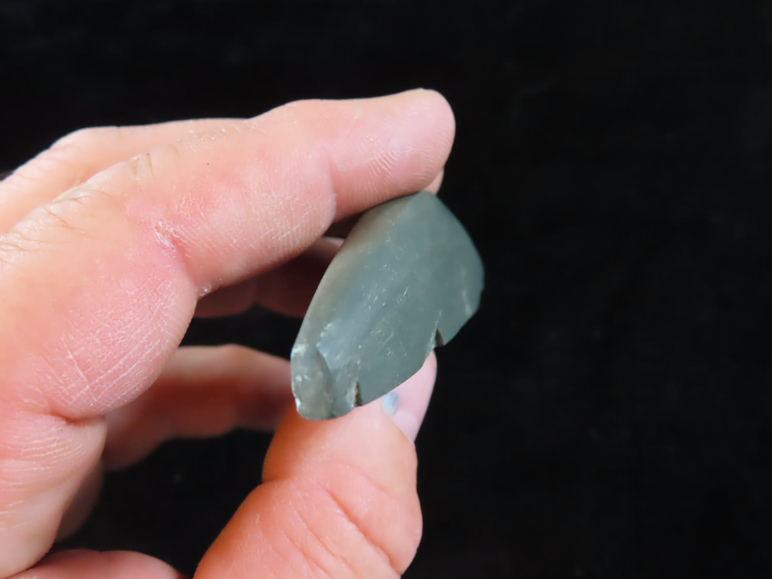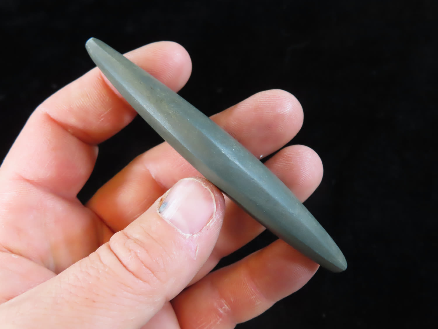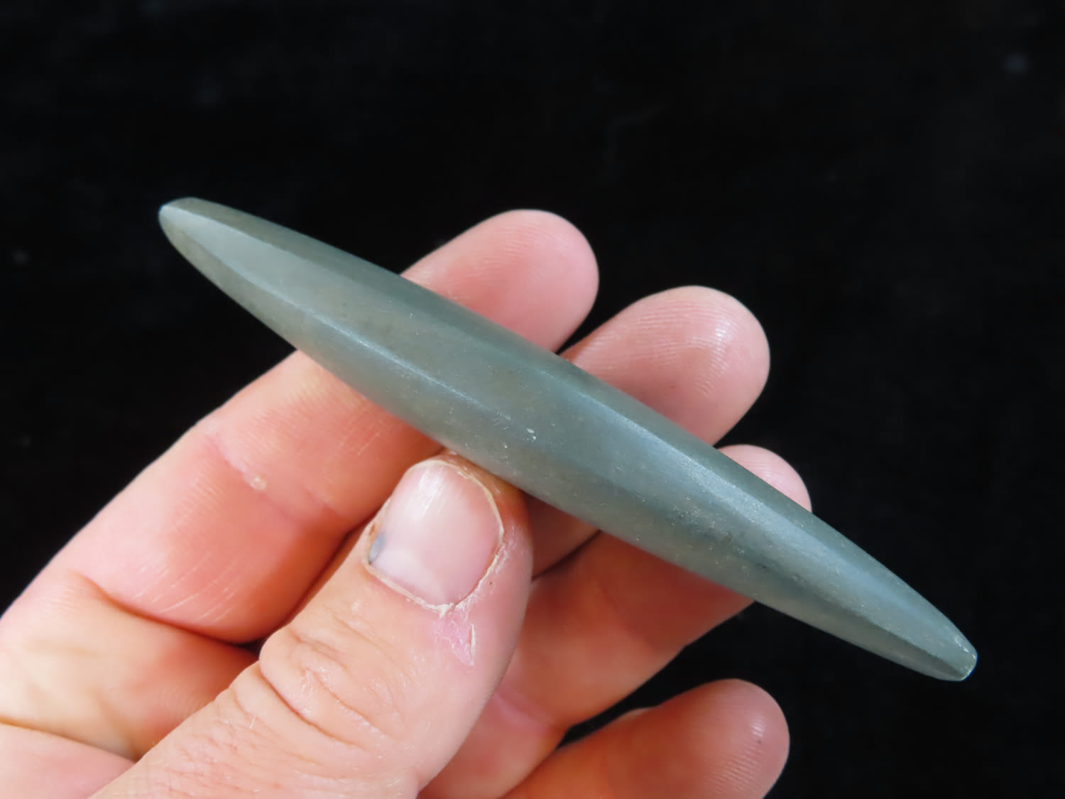 3 7/8″ Slate Boatstone, found in Arkansas, Ex Rick Steed, Ex Randall Kimbrell Collection