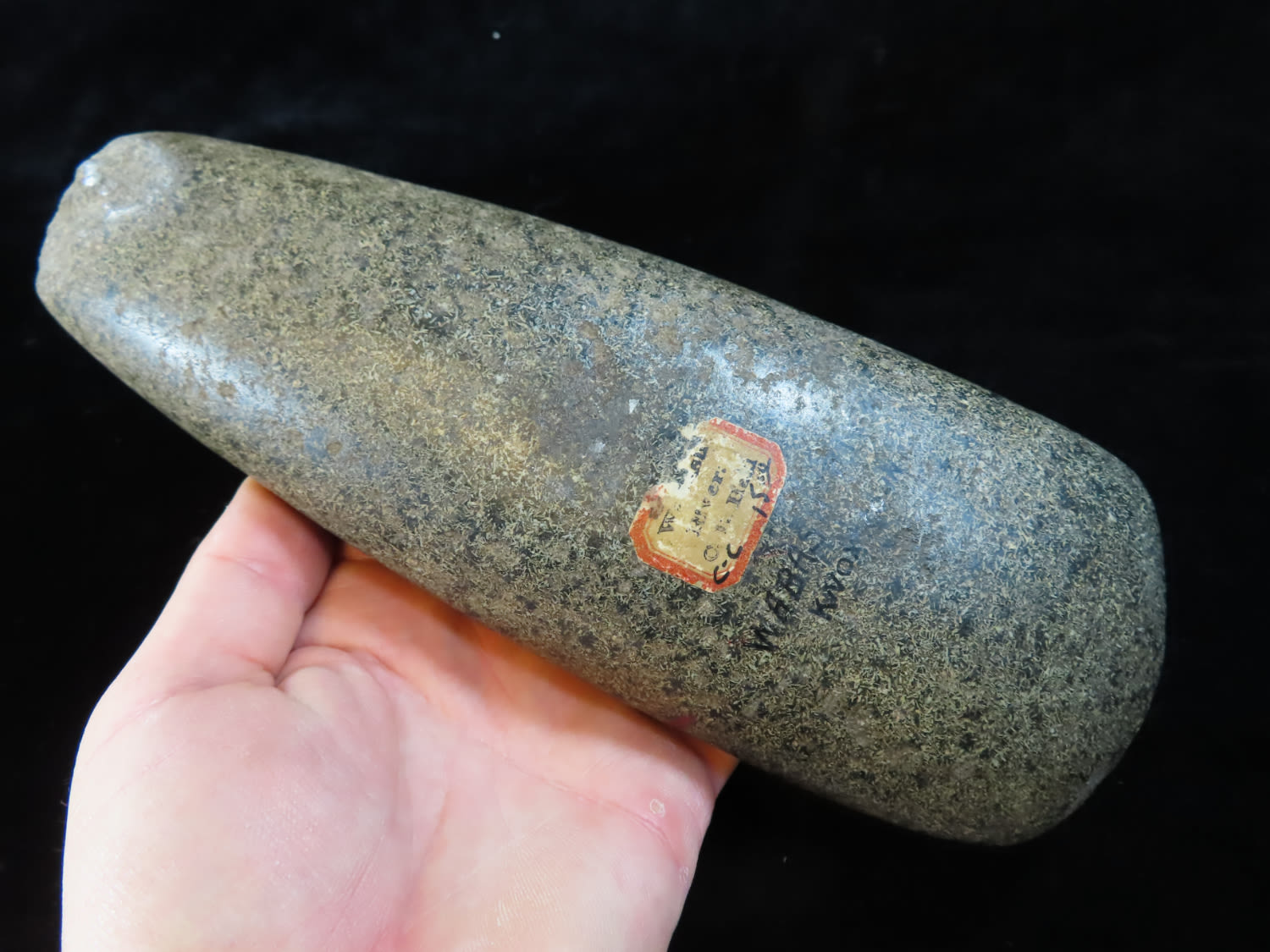 9 3/8" AMAZING Celt, Dicky COA, found in Knox Co Indiana, along the Wabash River-Nice Quality finish, Made of Wiry Granite, Ex Randall Kimbrell Collection