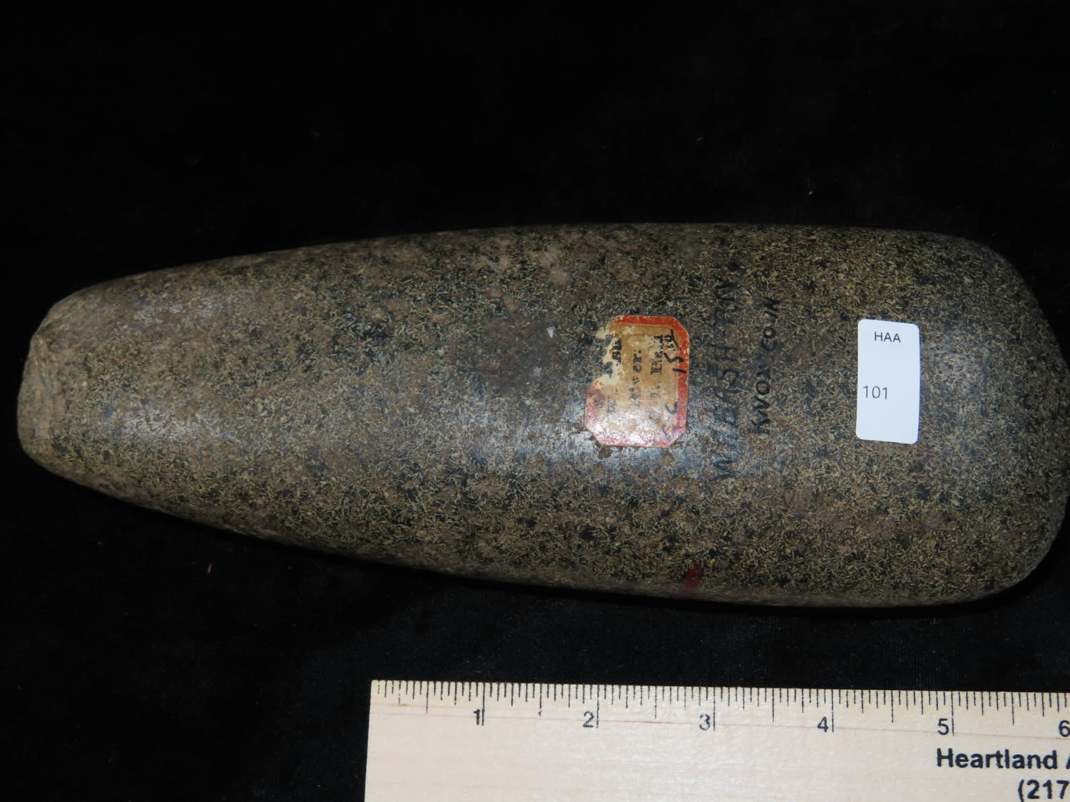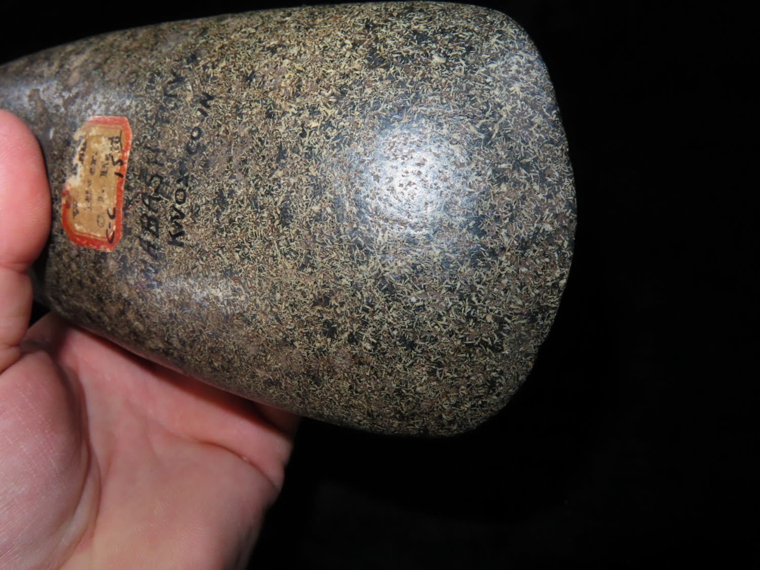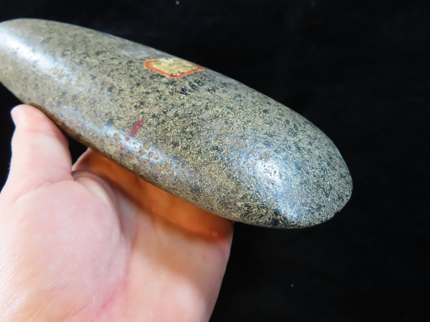 9 3/8″ AMAZING Celt, Dicky COA, found in Knox Co Indiana, along the Wabash River-Nice Quality finish, Made of Wiry Granite, Ex Randall Kimbrell Collection