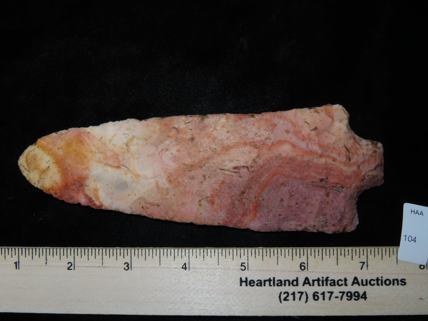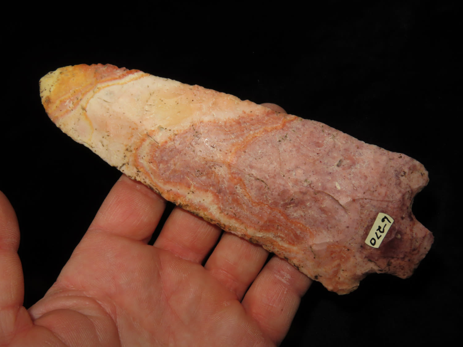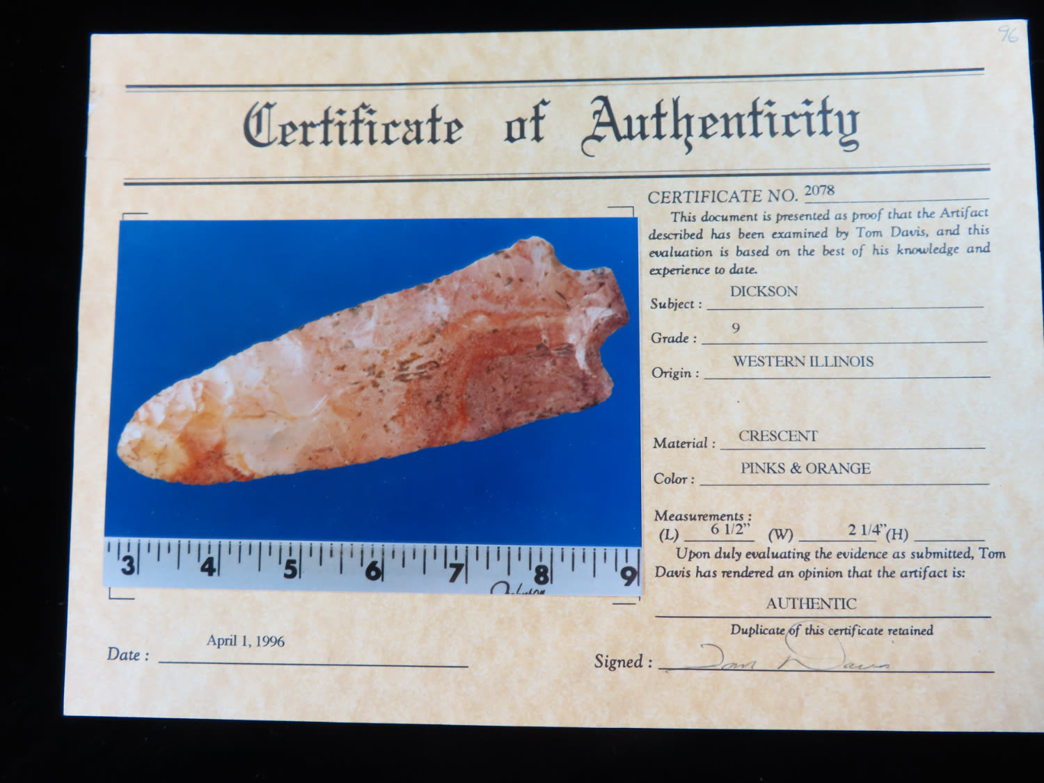 6 3/8″ Ross Blade/Dickson, Davis COA, Made of heat treated Kaolin Chert, found in Western Illinois, Pictured in CC Smith Sale Catalog, Ex Randall Kimbrell Collection