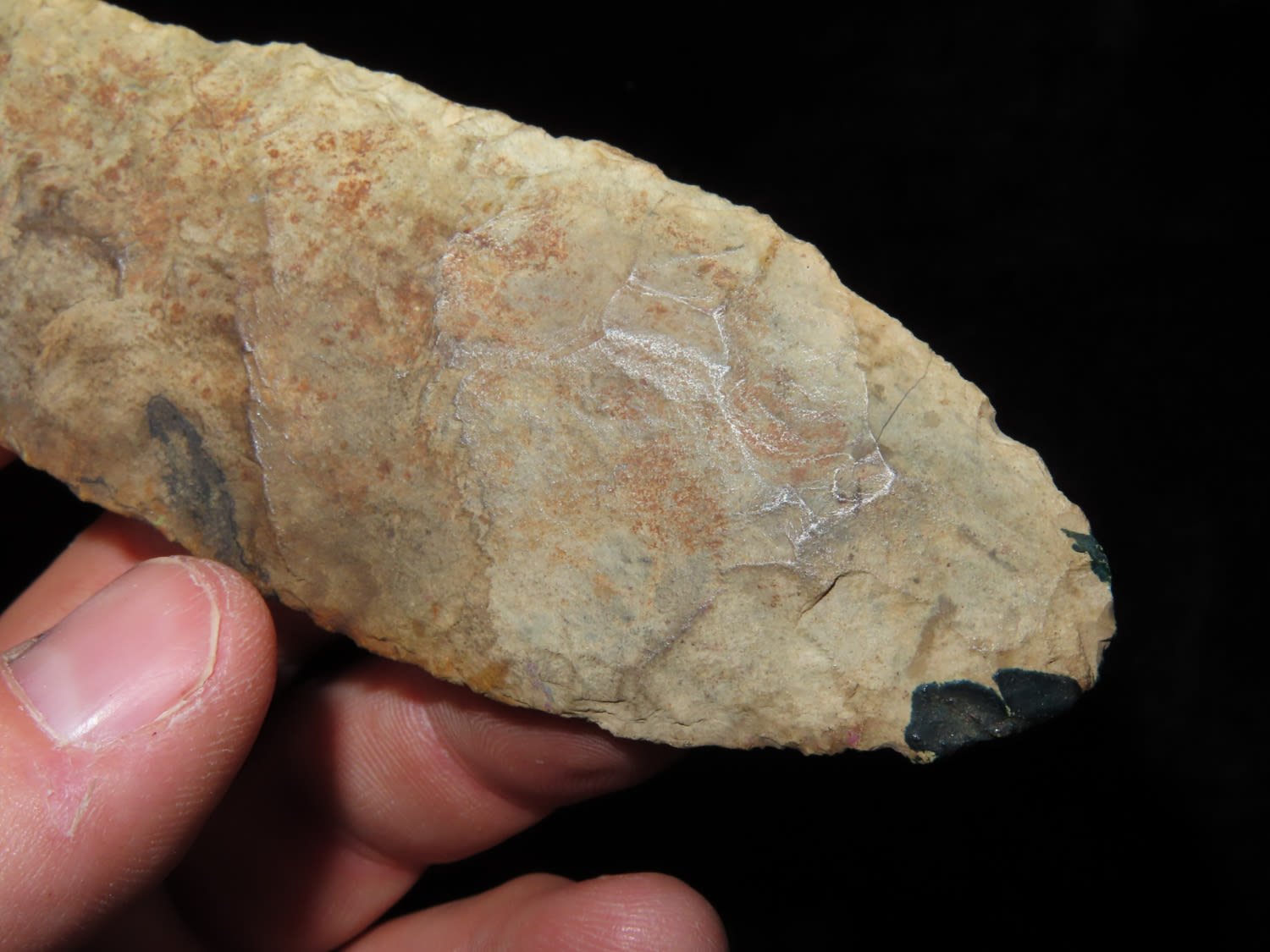 4 15/16″ Black Sand Adena Blade, found in Edwards Co Illinois by Charlie Cooper, Ex Randall Kimbrell Collection