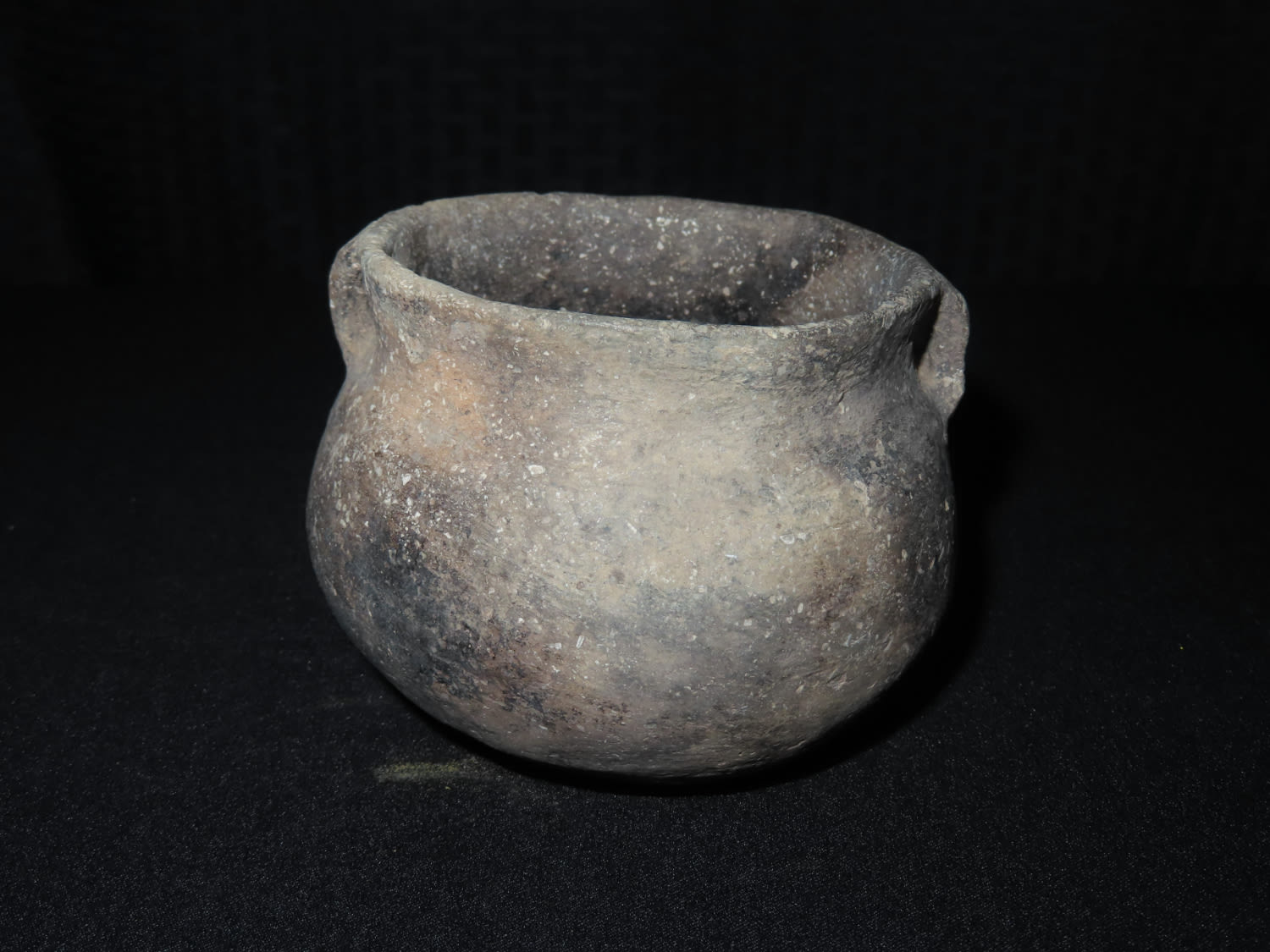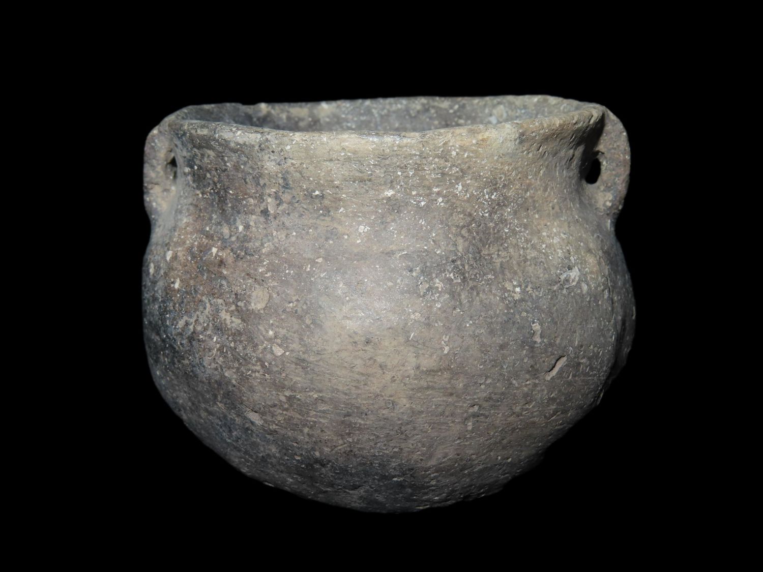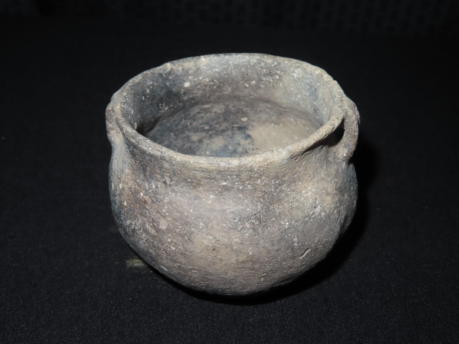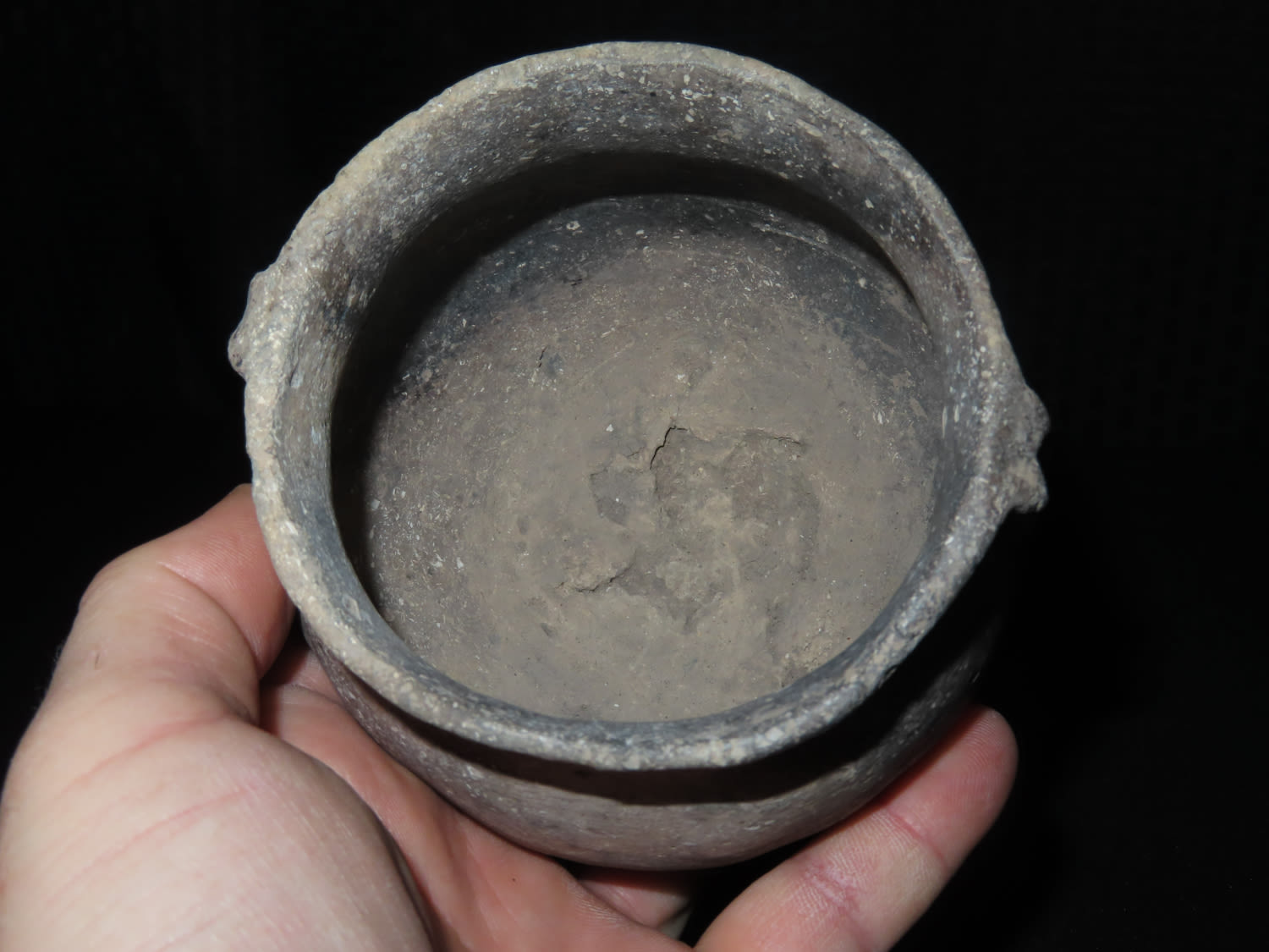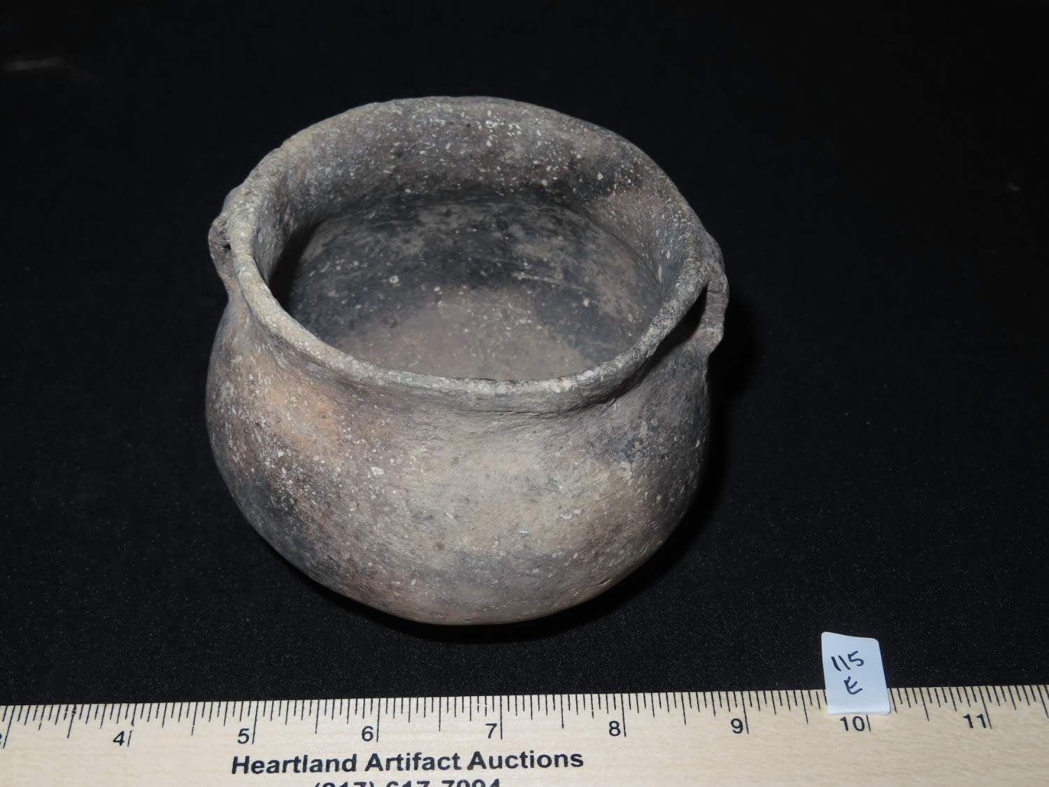 4″ dia. Miniature Strap Handle Mississippian Pottery Jar, found in Gibson Co Indiana, appears to have bottom repair, Ex Randall Kimbrell Collection **ALL POTTERY WILL INCUR FLAT $40 SHIPPING CHARGE PER LOT**