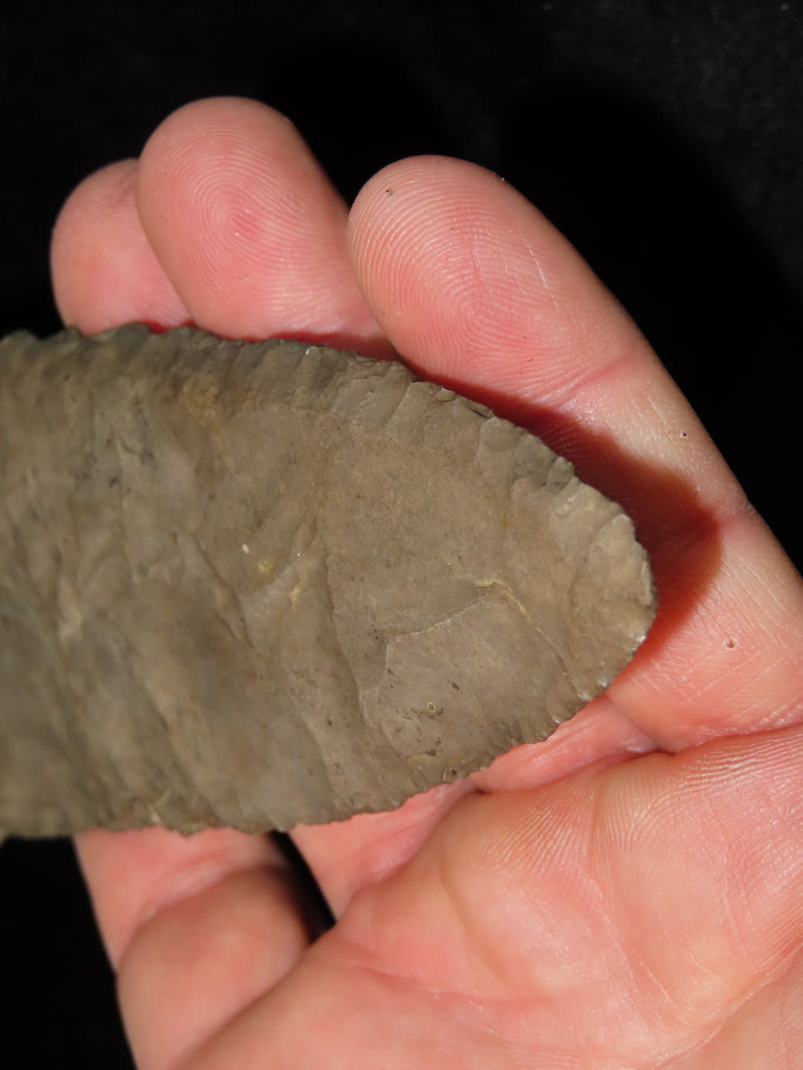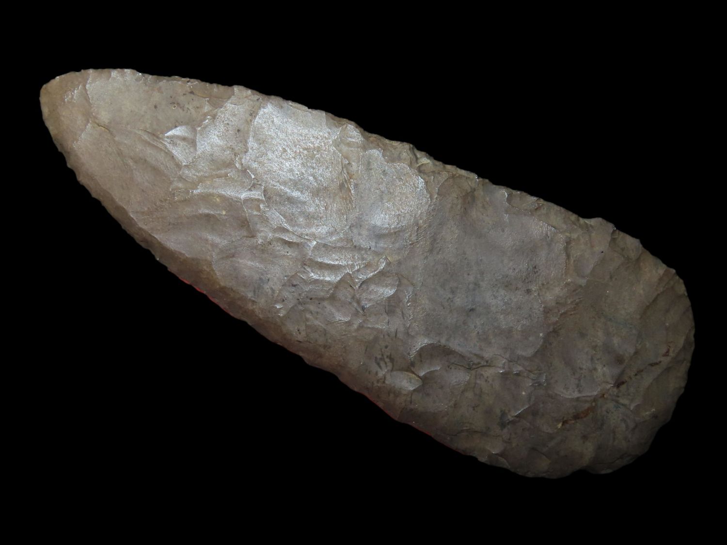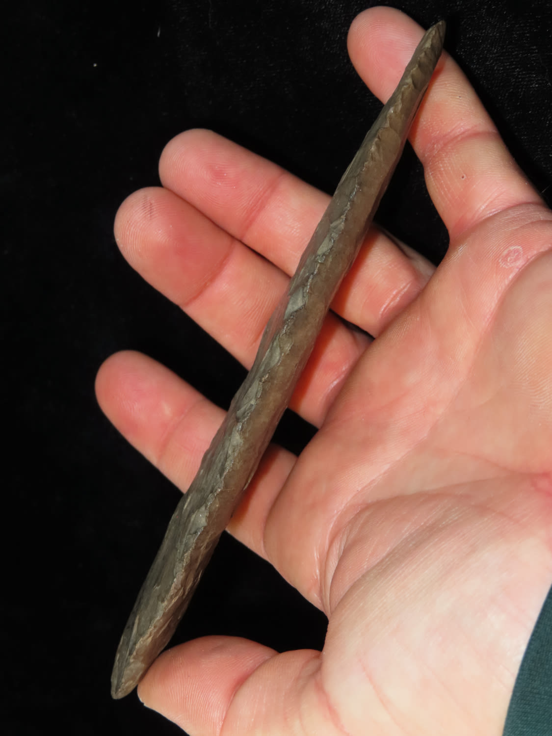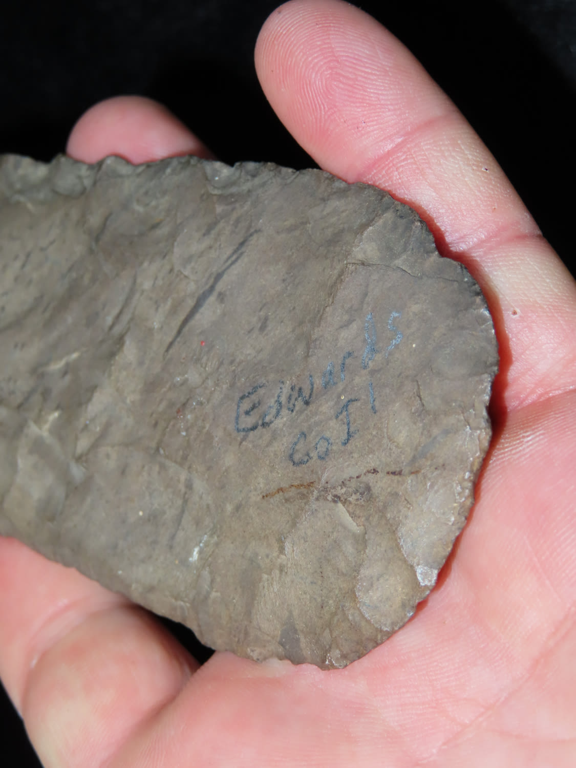 5 15/16″ Beveled Cobbs Blade Made of Dover Chert, found in Edwards Co Illinois by a school teacher, Ex Randall Kimbrell Collection