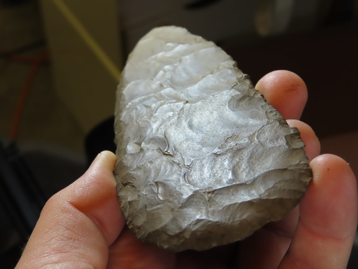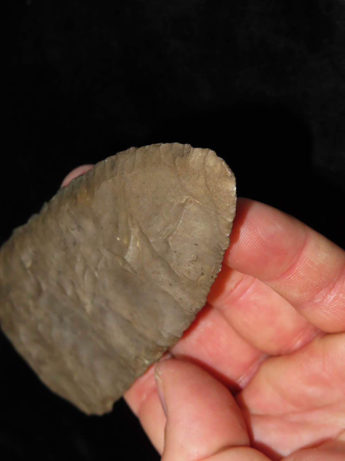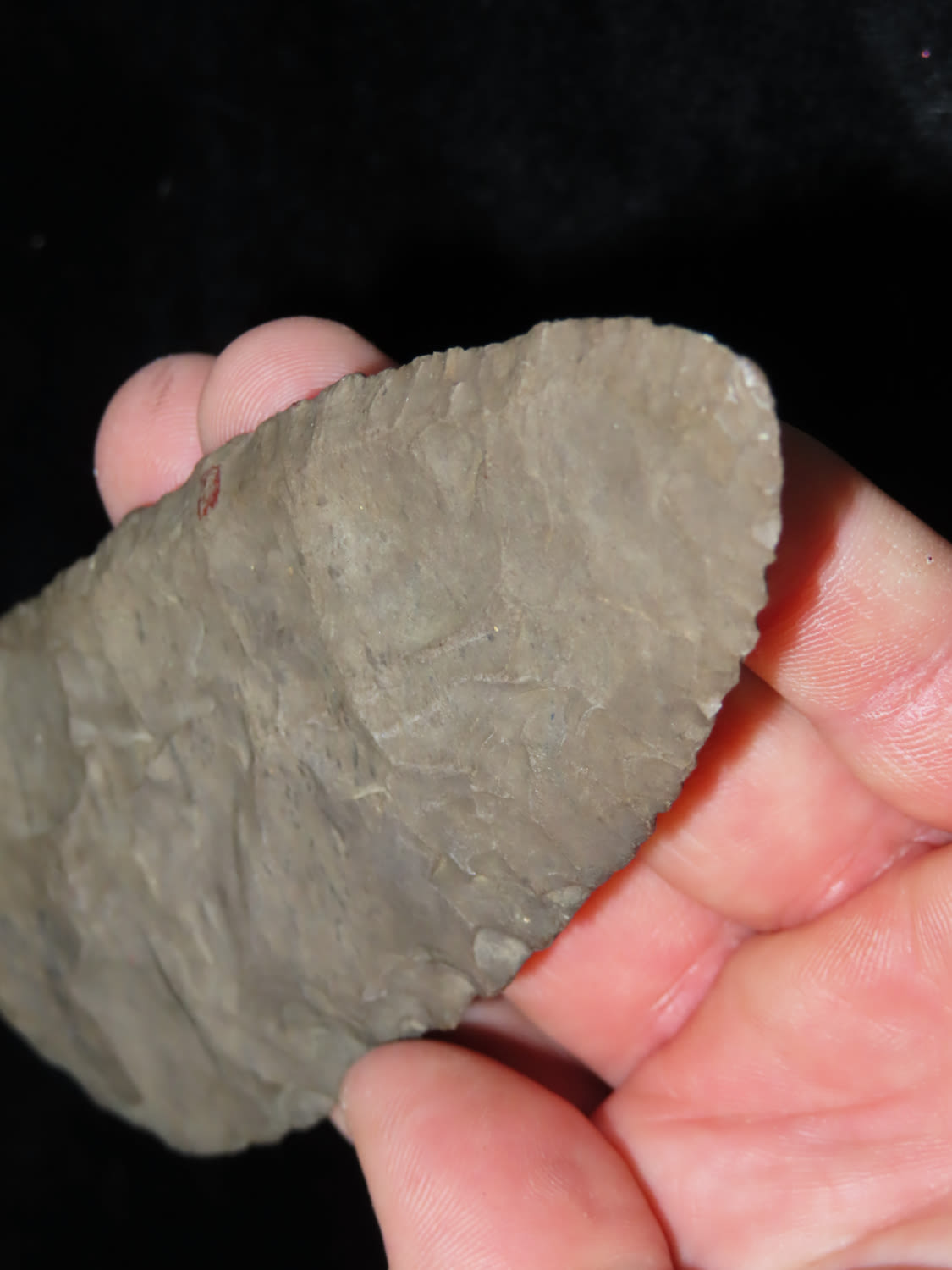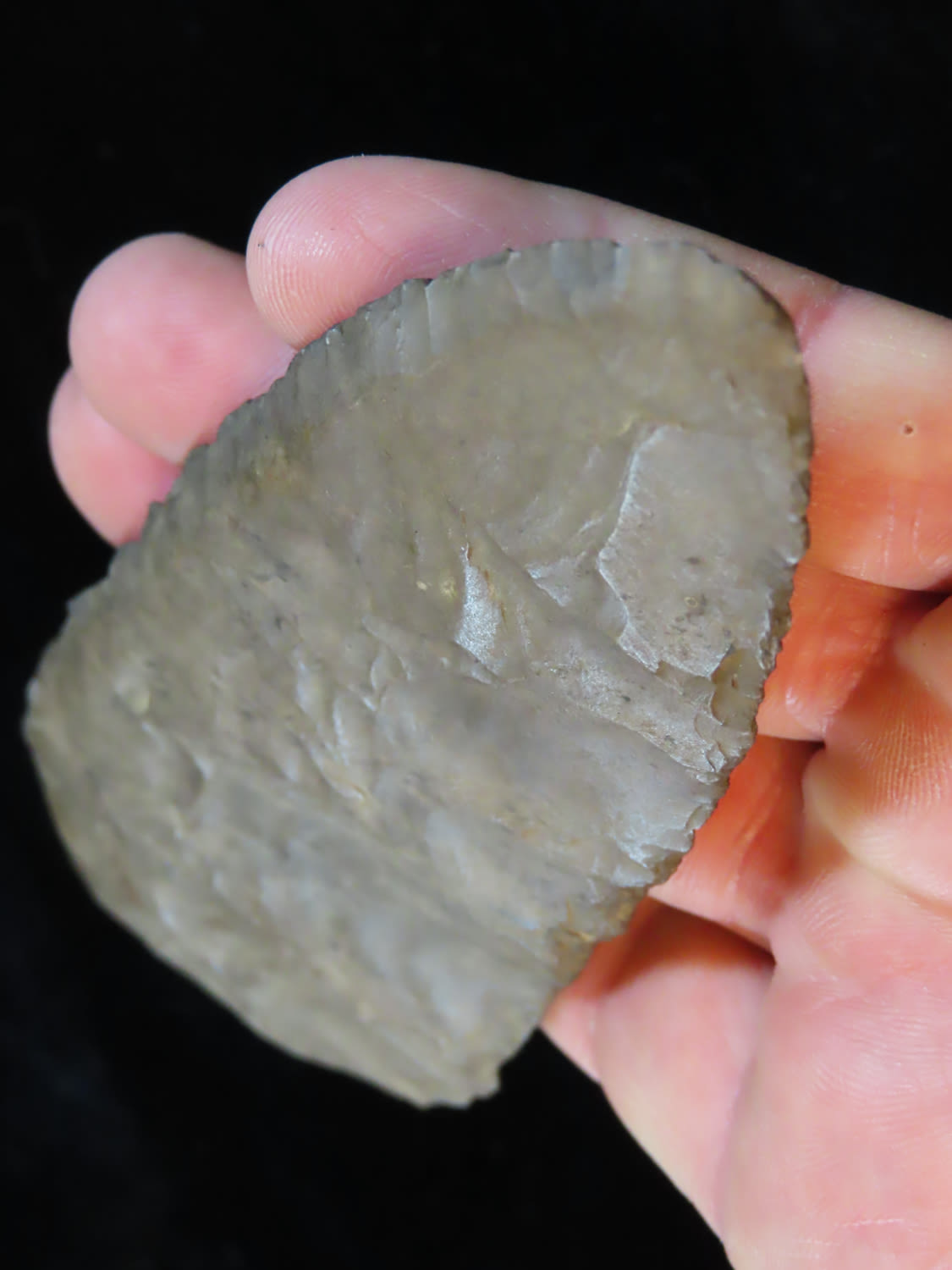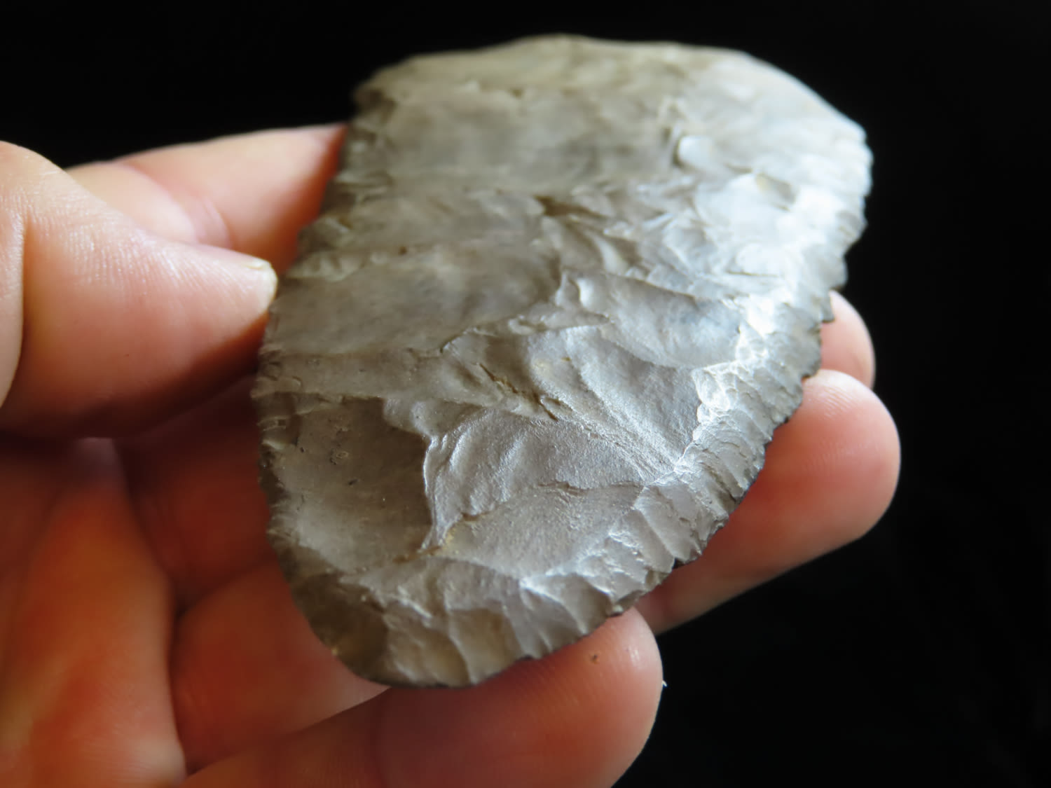5 15/16″ Beveled Cobbs Blade Made of Dover Chert, found in Edwards Co Illinois by a school teacher, Ex Randall Kimbrell Collection
