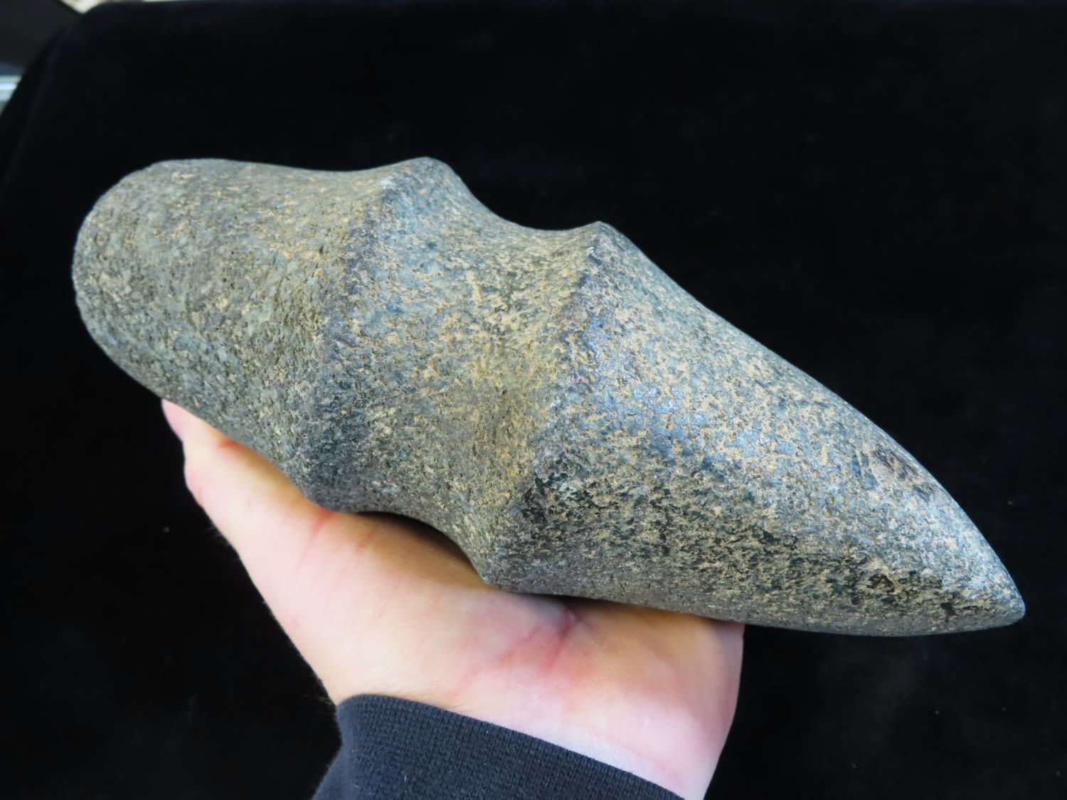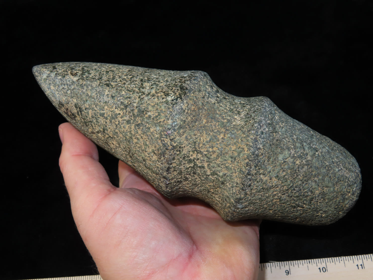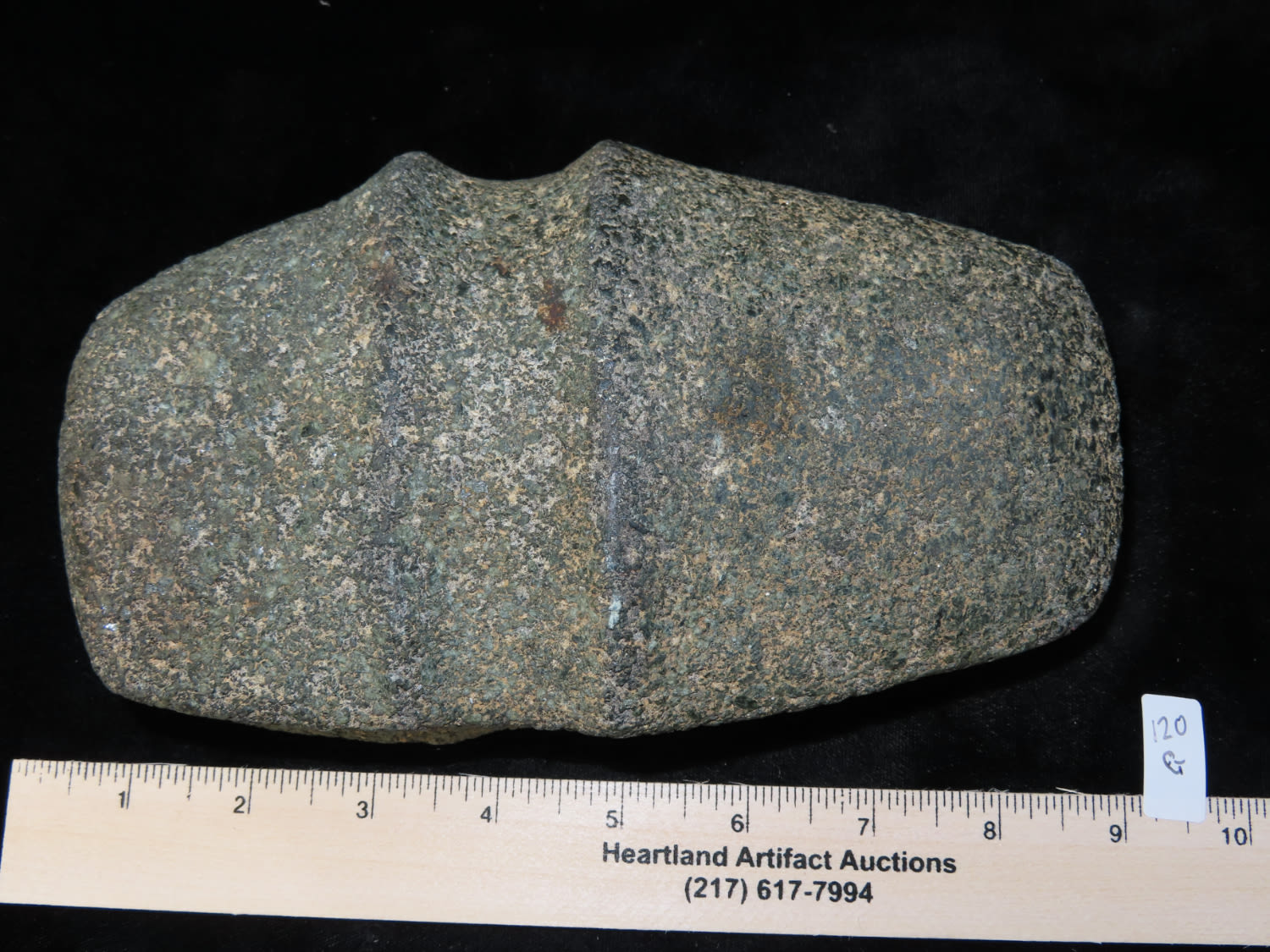 7 3/4" Illinois High Dome Axe, found in Fulton Co Illinois by Harry Relinsky raised ridges and fluted bottom, Nice Extra Large Relic, Ex Randall Kimbrell Collection