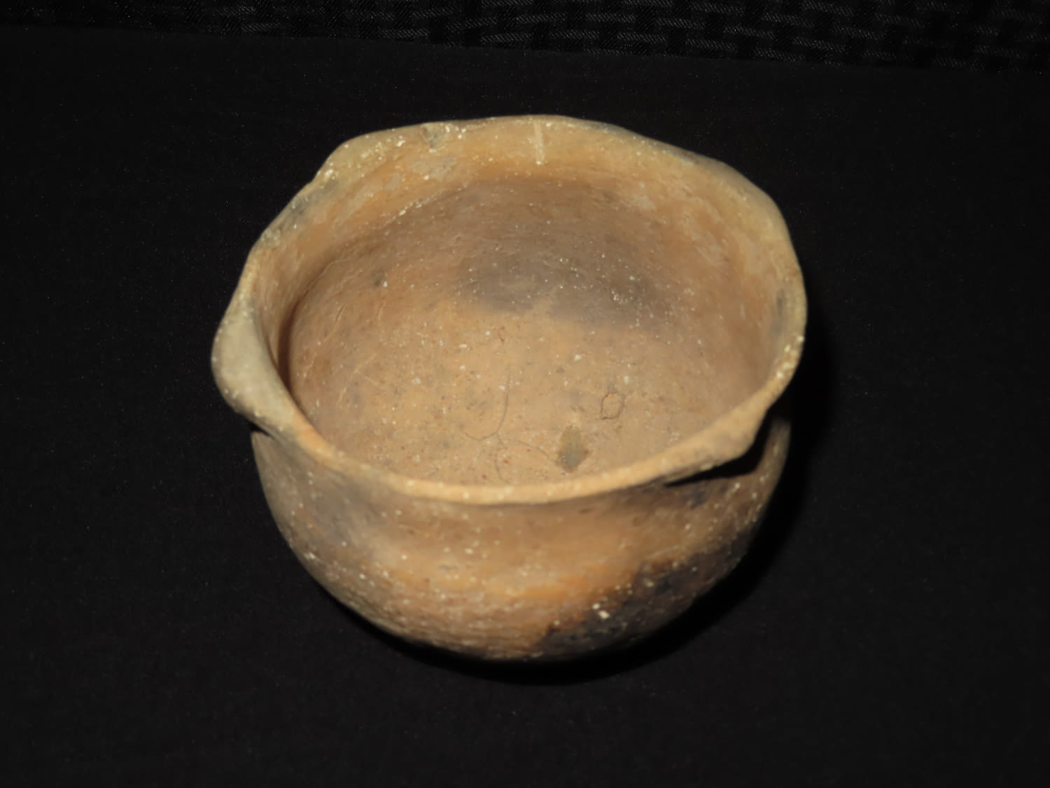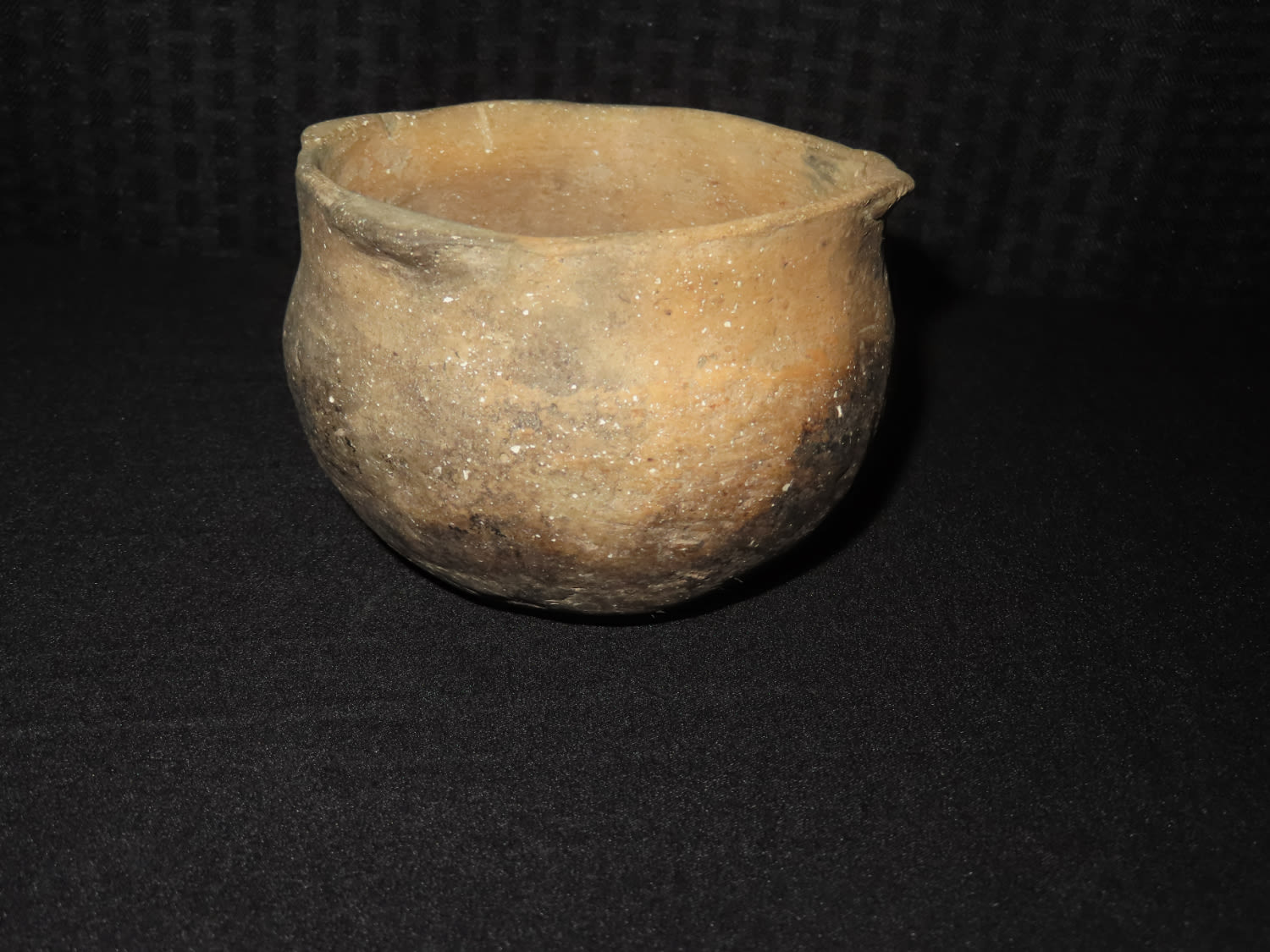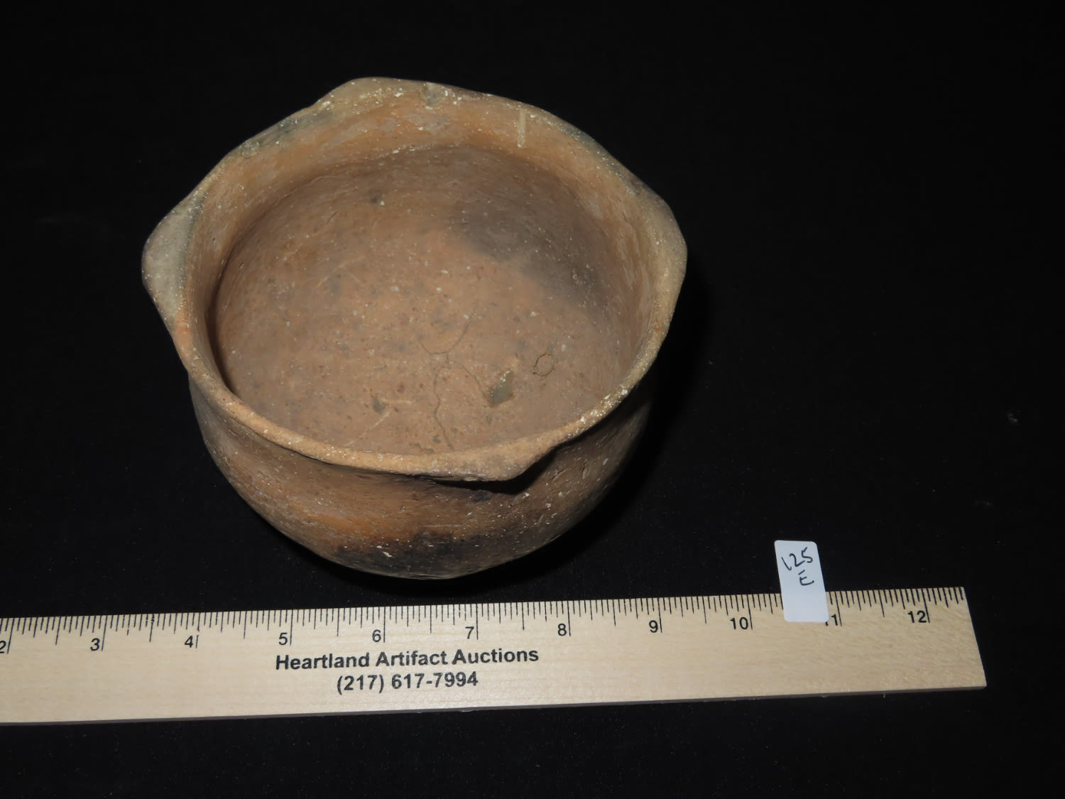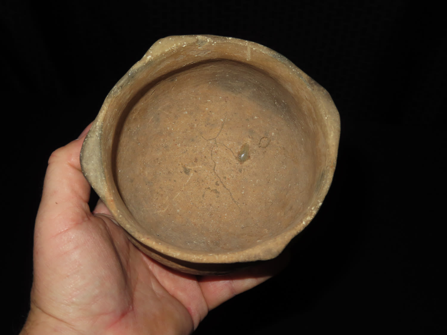 5″ dia. Mississippian Jar, with 4 Lug Handles decorate the rim, nice coloring, bottom repair, Ex Randall Kimbrell Collection **ALL POTTERY WILL INCUR FLAT $40 SHIPPING CHARGE PER LOT**