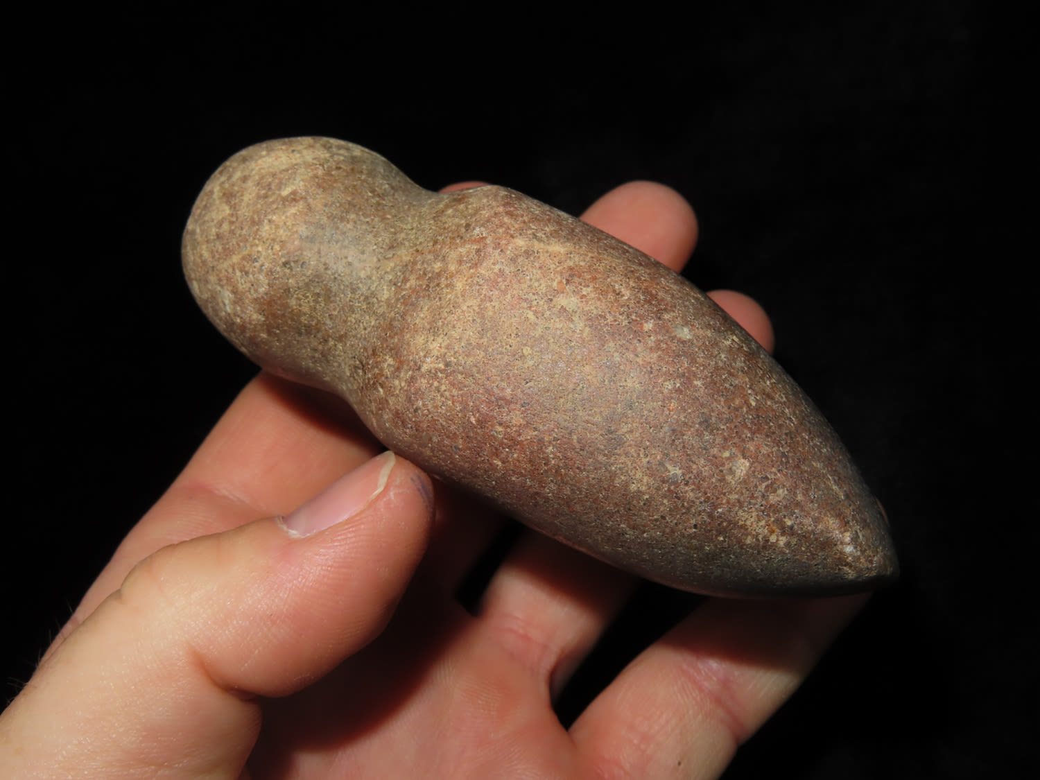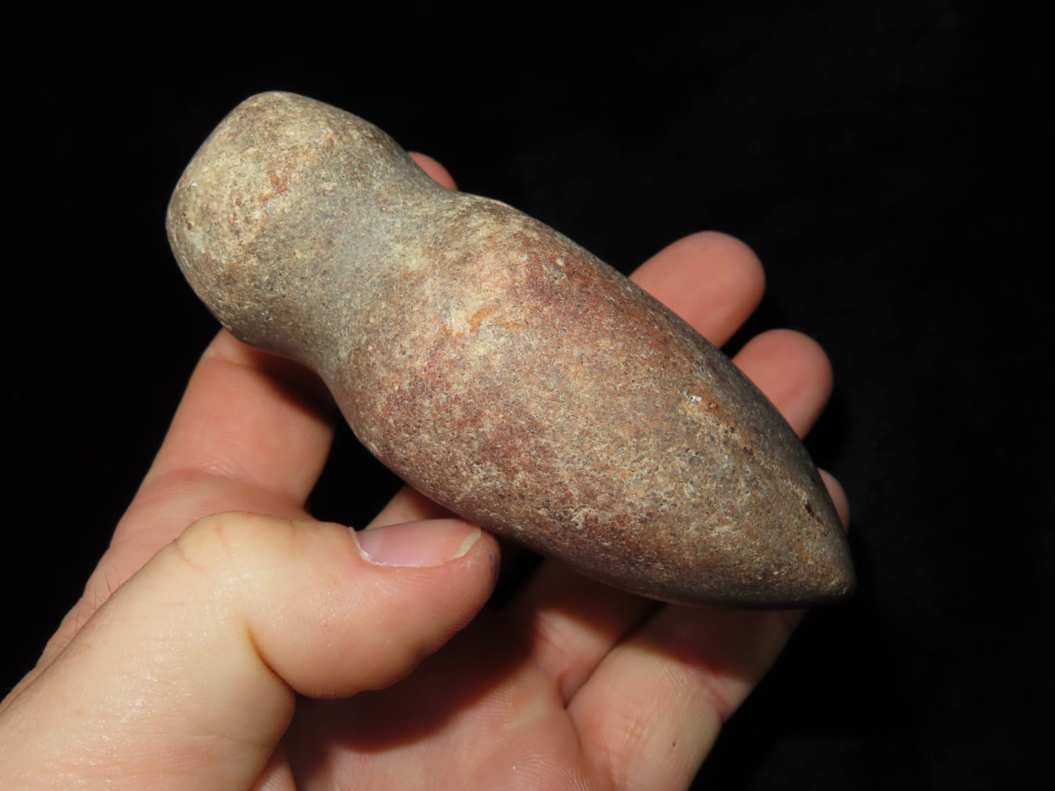 3 3/4″ Red Quartz Full Groove Axe, found in Wabash Co Illinois, Ex Randall Kimbrell Collection