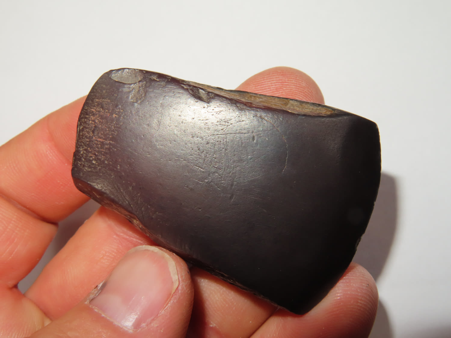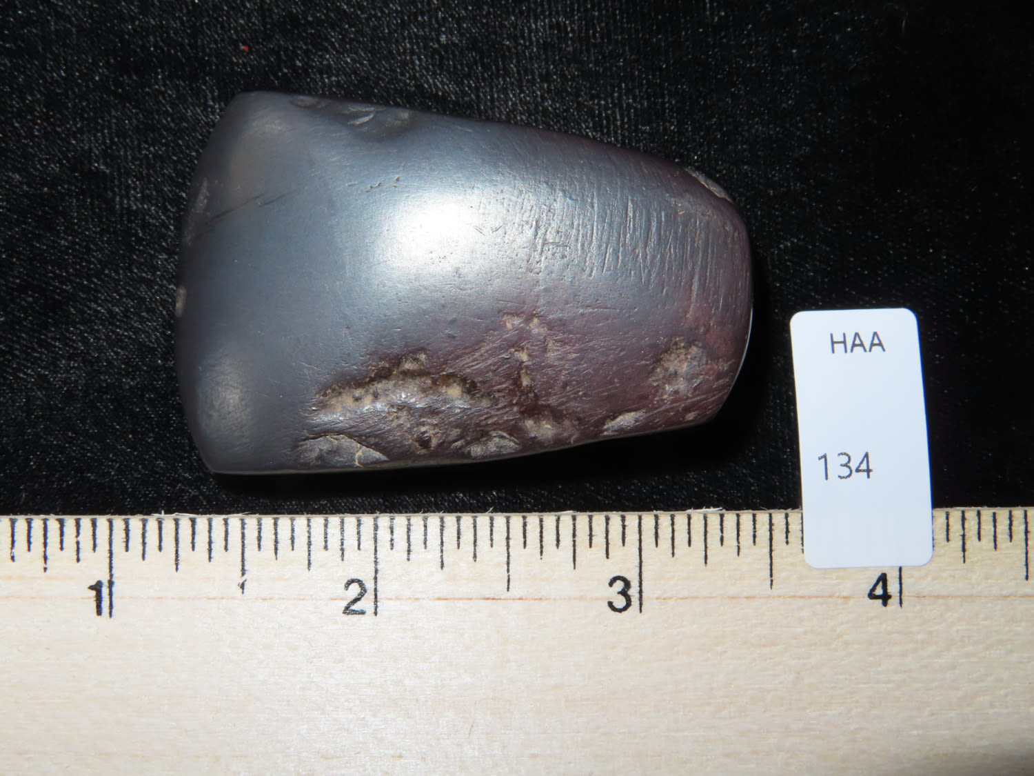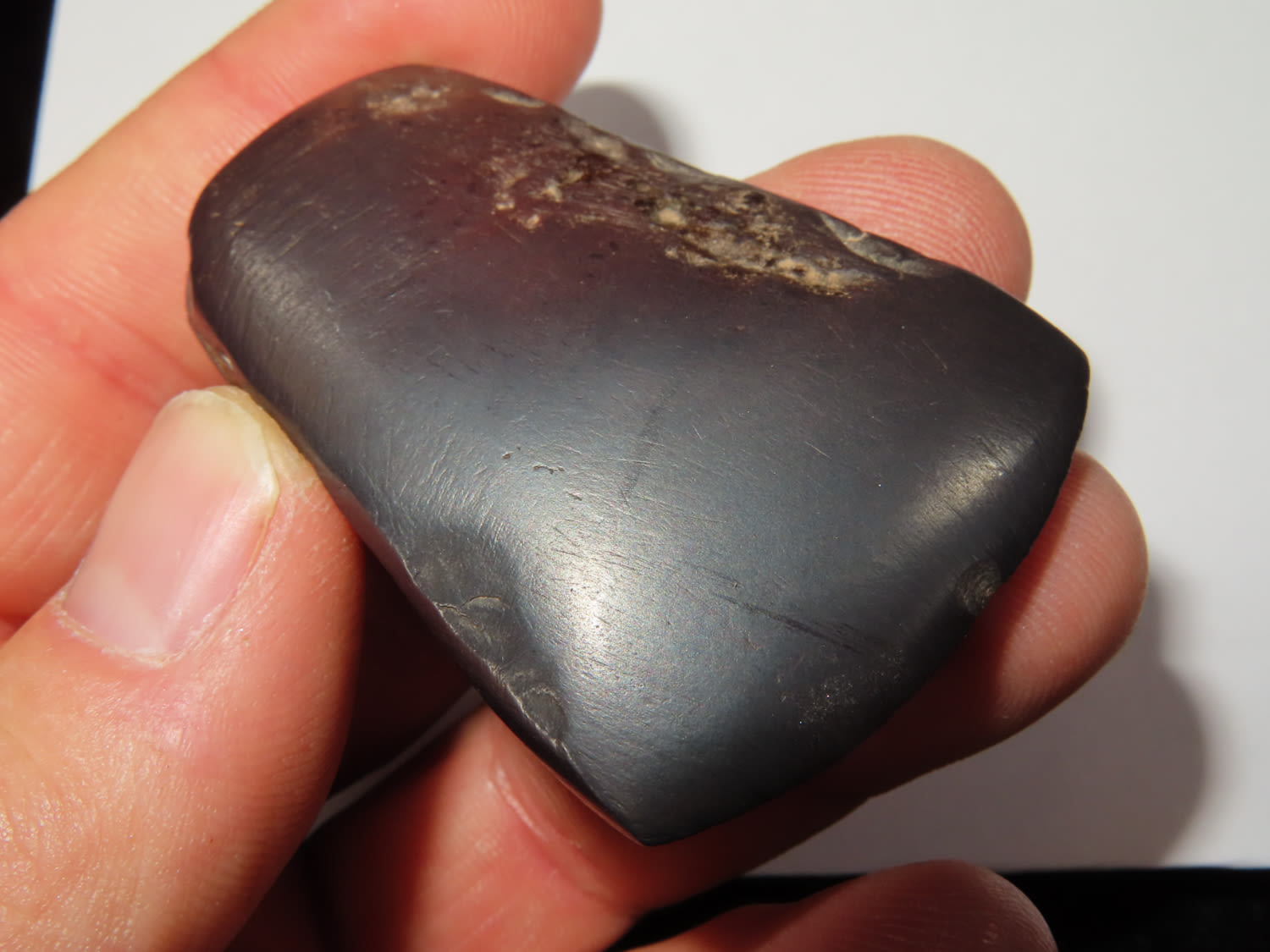 2 1/8″ gun-metal Hematite Celt, found in Lincoln Co missouri, Ex Randall Kimbrell Collection