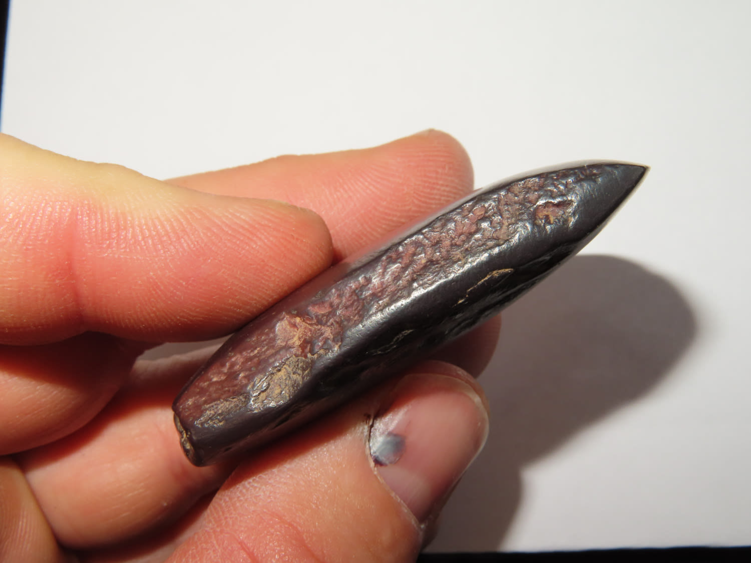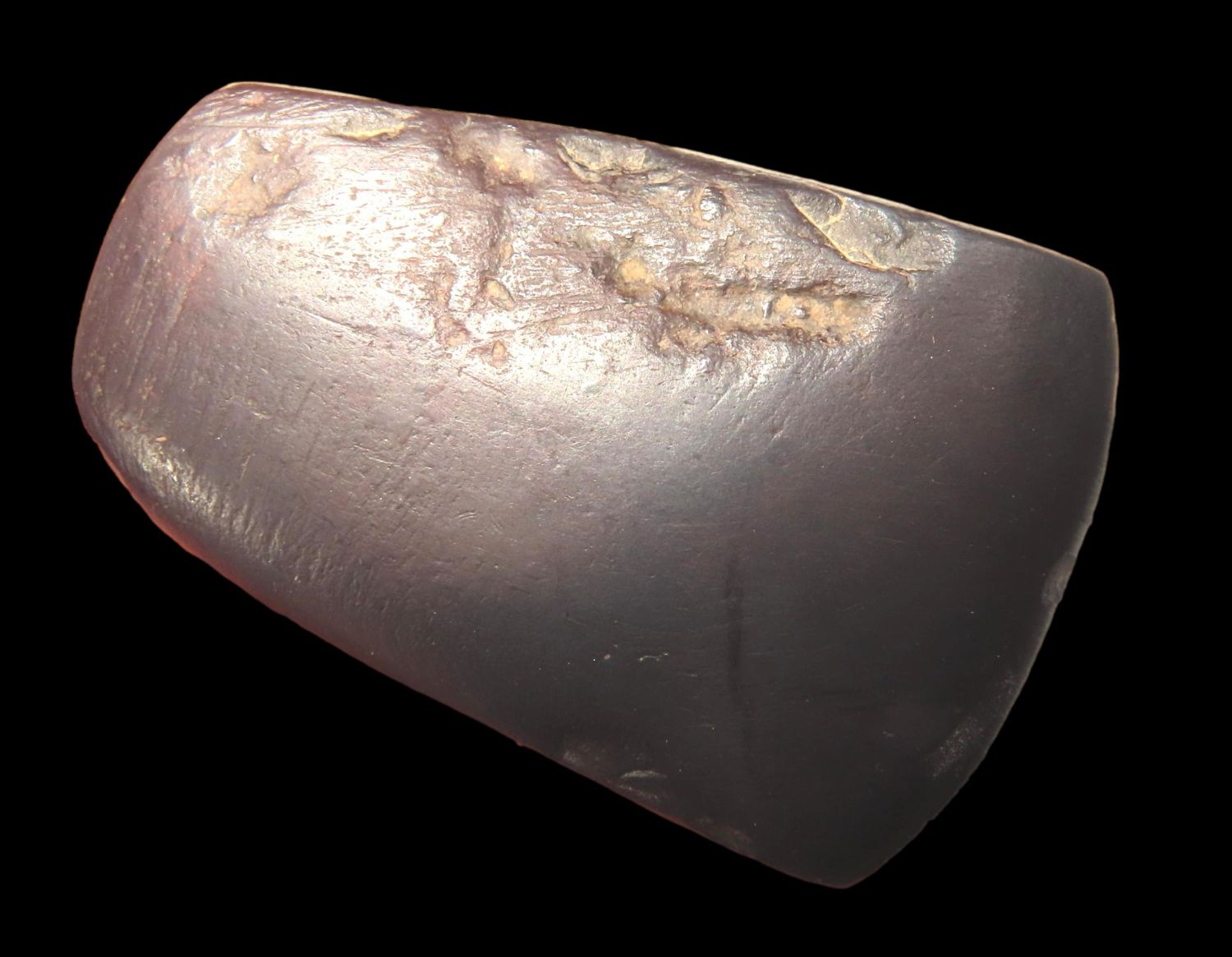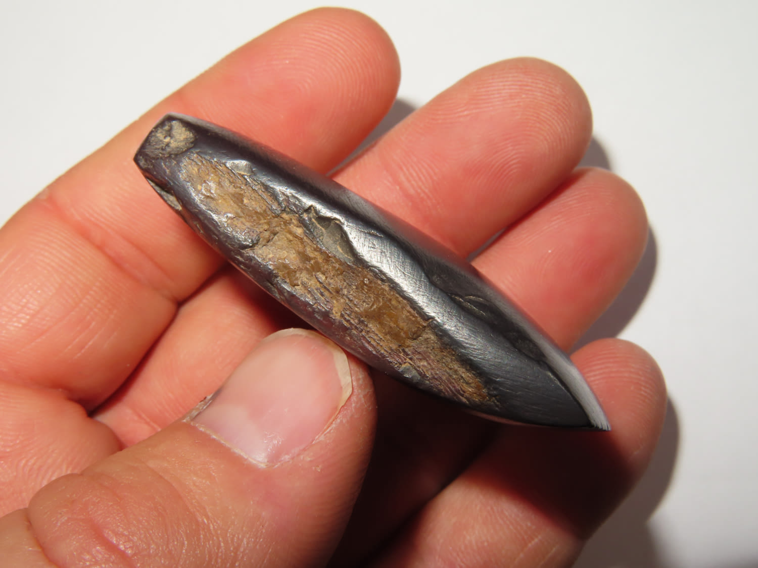 2 1/8″ gun-metal Hematite Celt, found in Lincoln Co missouri, Ex Randall Kimbrell Collection