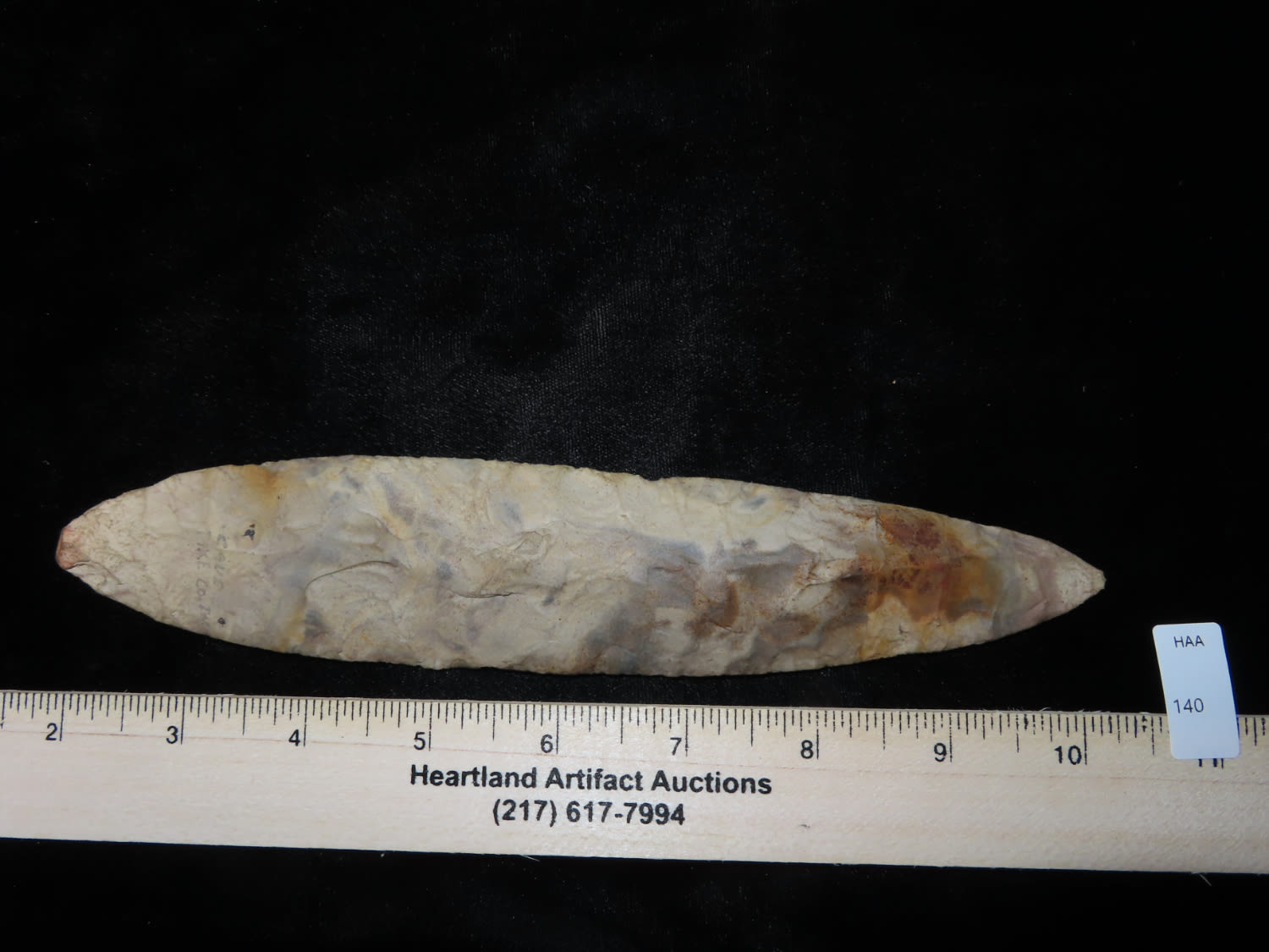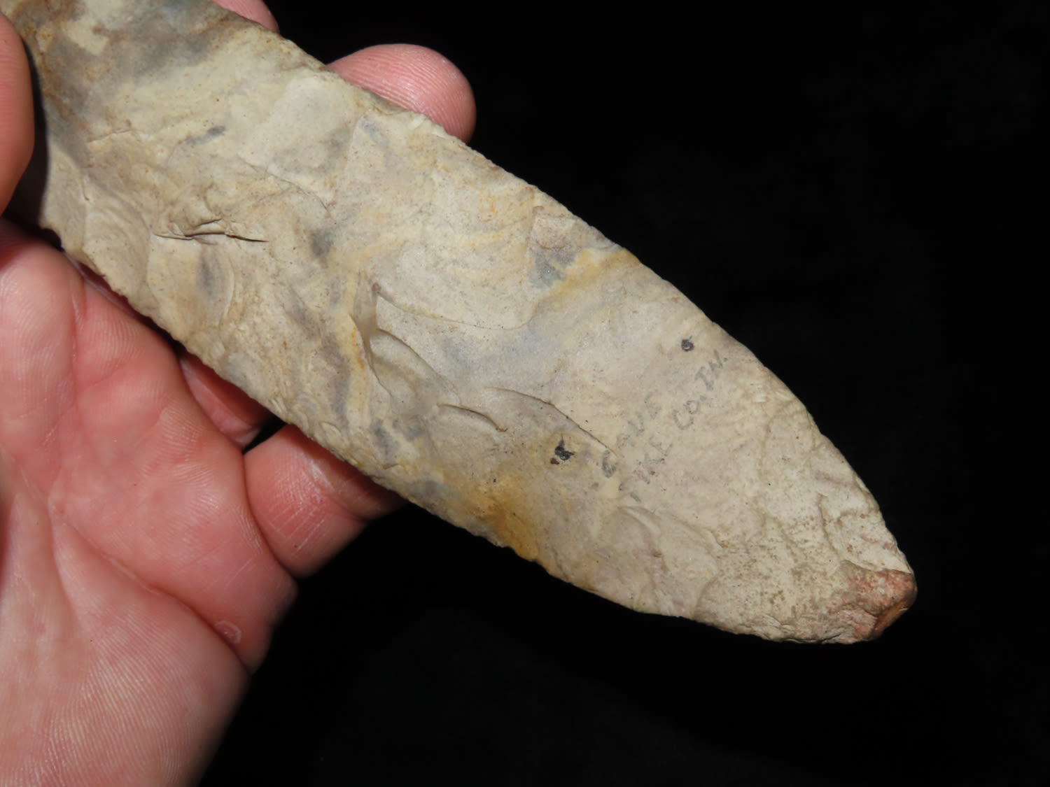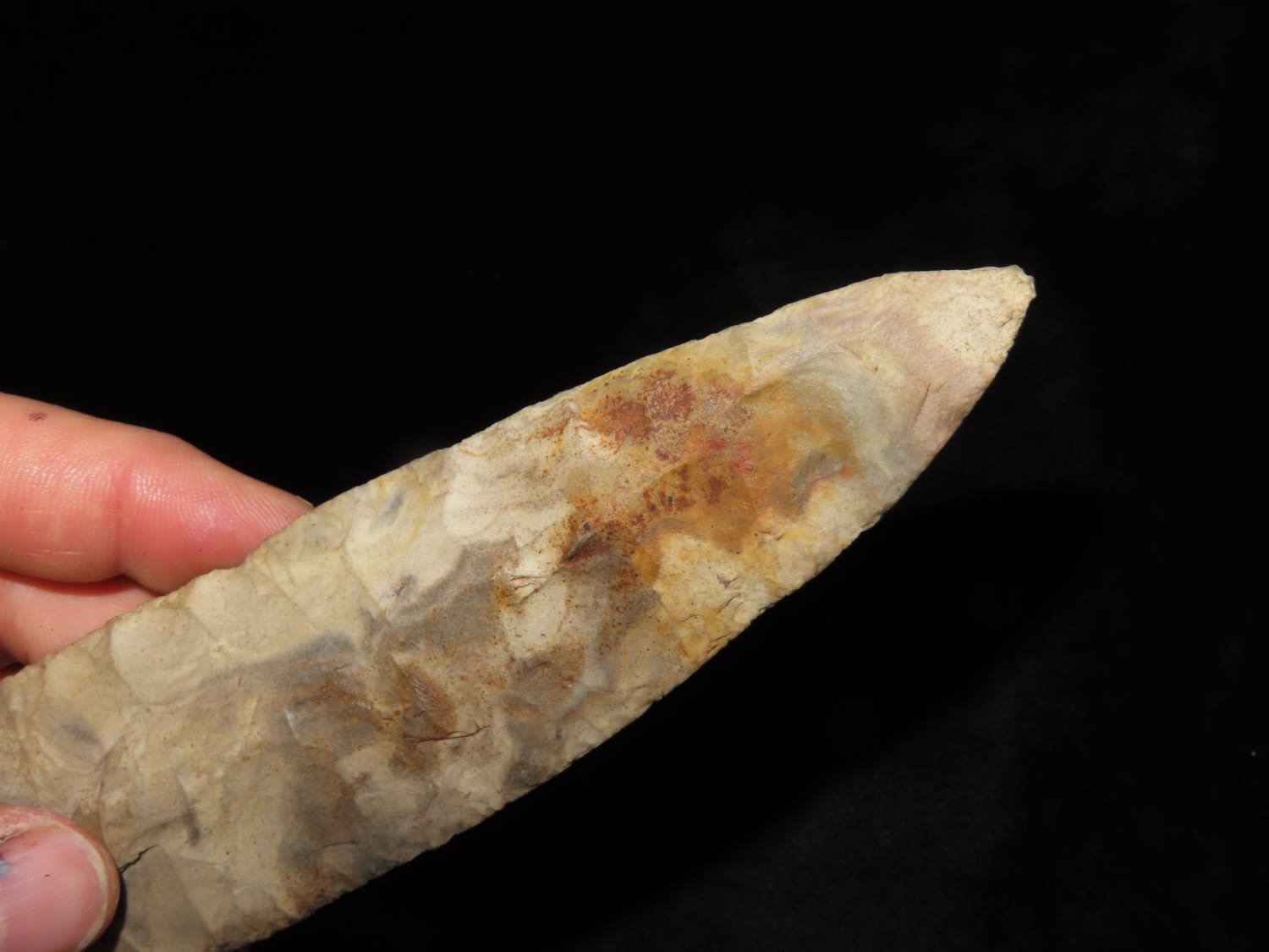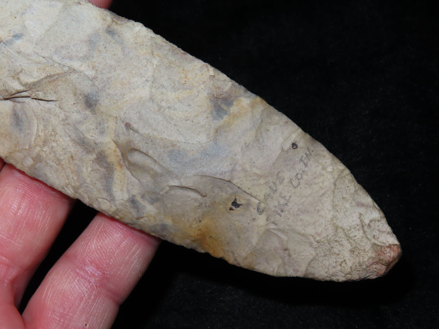 8 5/16″ Black Sand Adena Knife, found in Pike Co Indiana by Derek Gatewood, Exceptional Size and Color on piece with great overall presence, Ex Randall Kimbrell Collection