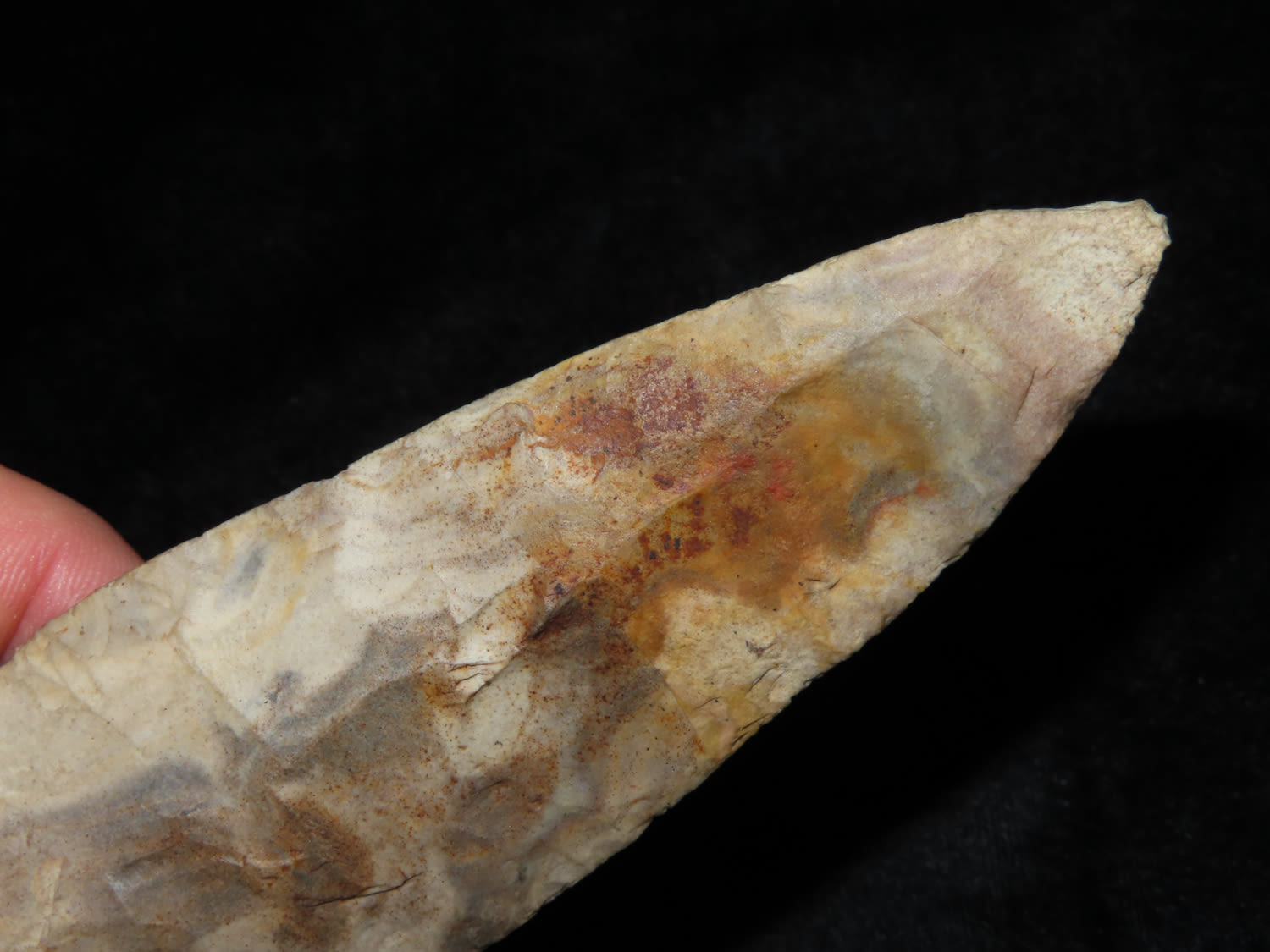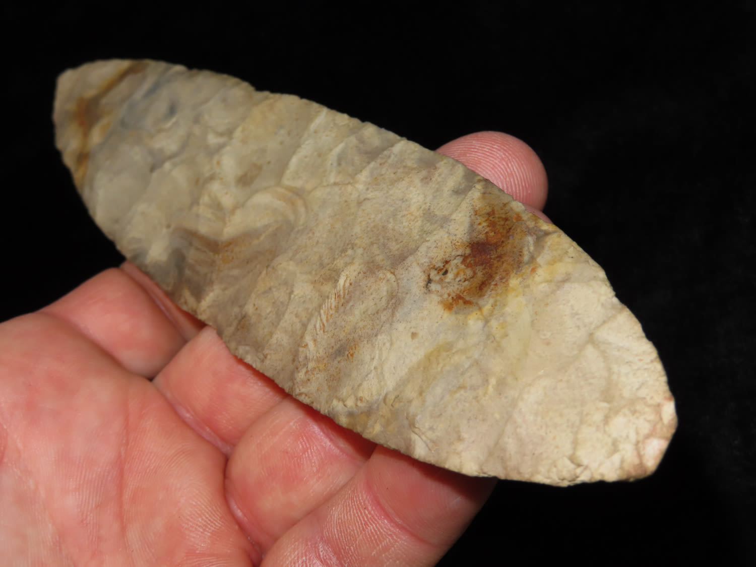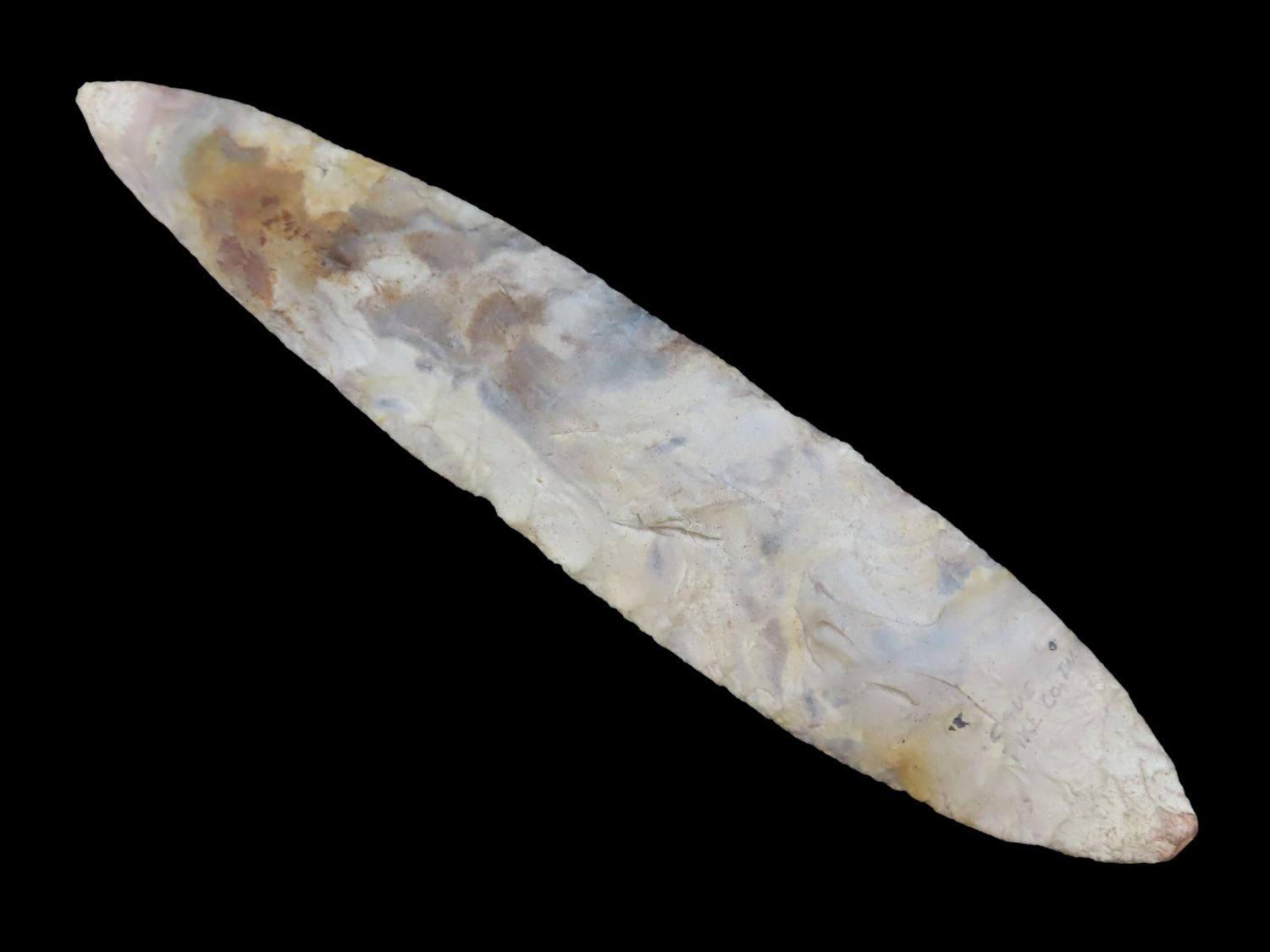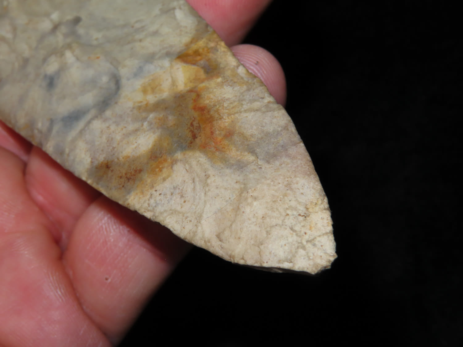 8 5/16″ Black Sand Adena Knife, found in Pike Co Indiana by Derek Gatewood, Exceptional Size and Color on piece with great overall presence, Ex Randall Kimbrell Collection
