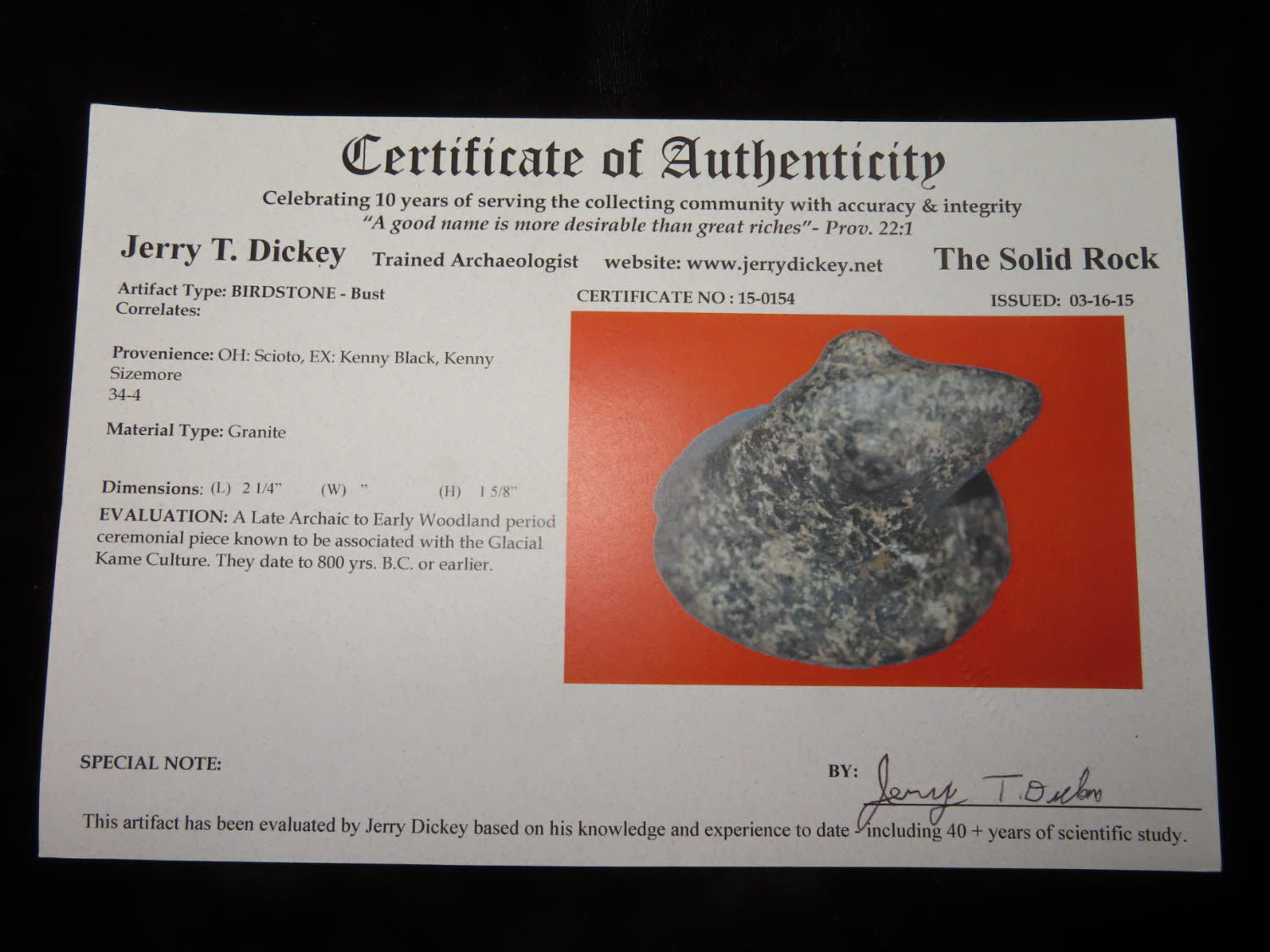 2 1/4″ Bust Birdstone, Dickey COA, overall nice color and finish, small pop-eyes, found in Scioto Co Ohio, Ex Kenny Black and Kenny Sizemore, Ex Randall Kimbrell Collection