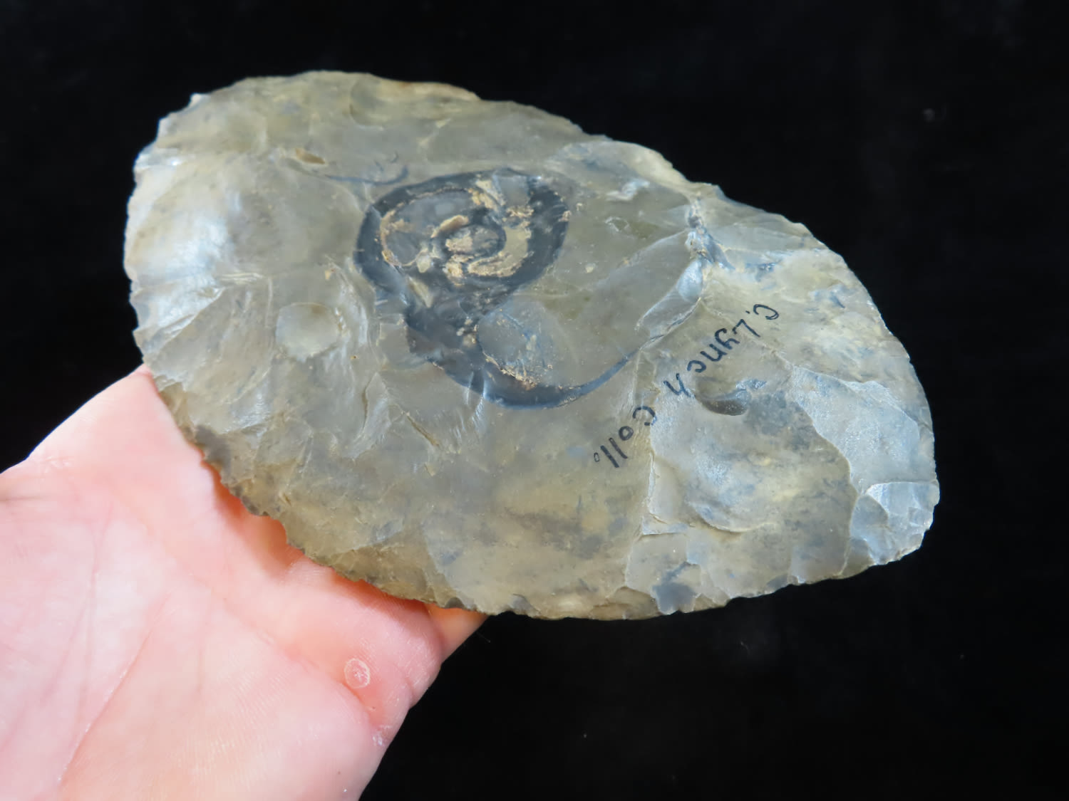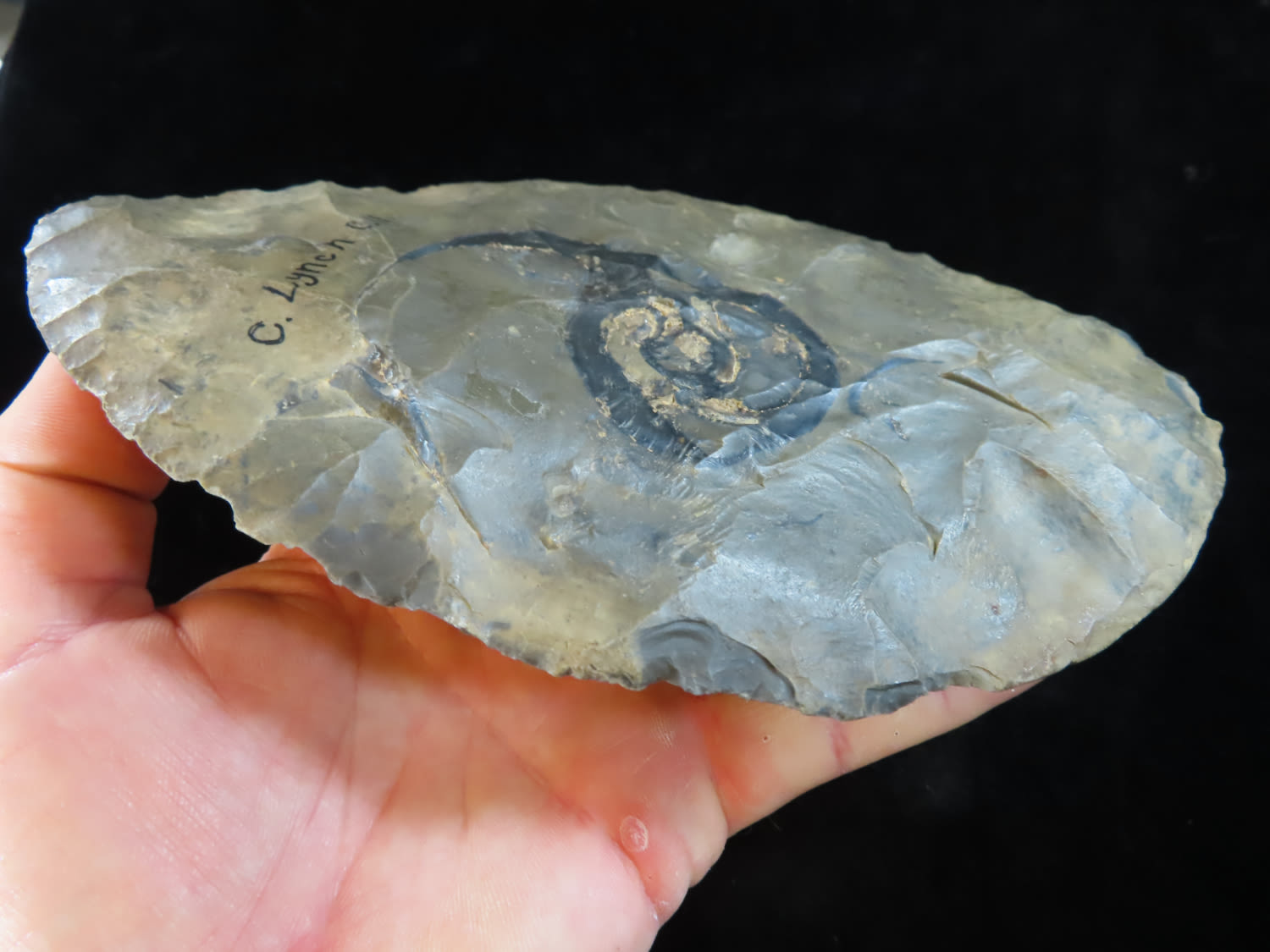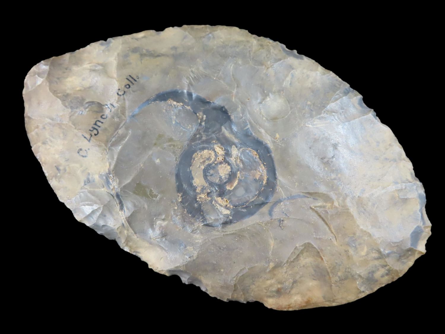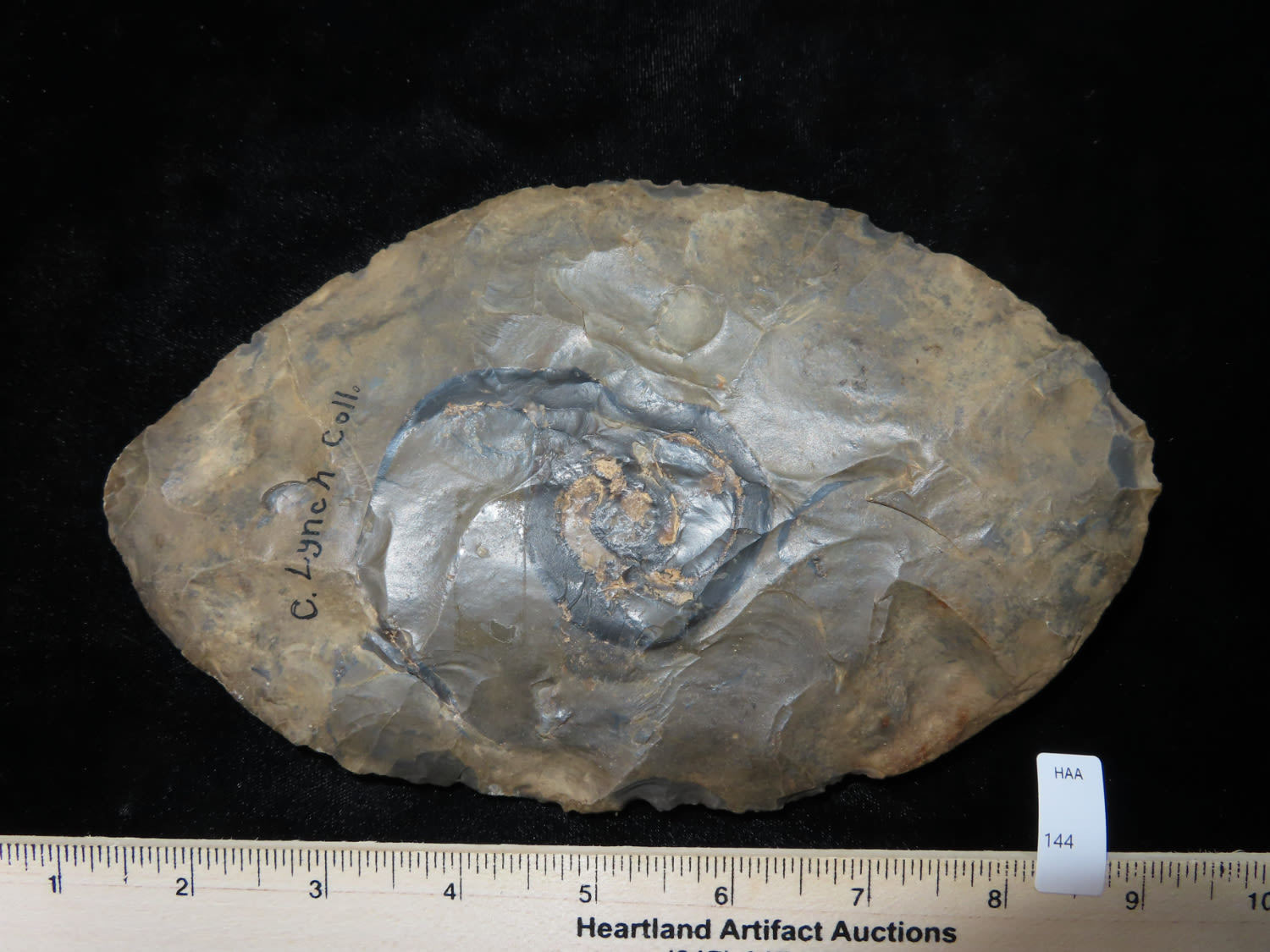 7 5/8″ x 4 7/8″ Cache Blade with AMAZING Bullseye, found in Posey Co Indiana, Ex Chalmer Lynch, Ex Randall Kimbrell Collection