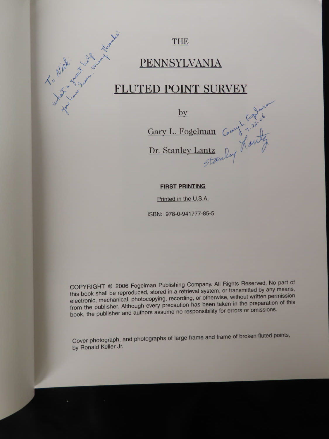 The Pennsylvania Fluted Point Survey by Gery L. Fogelman and Dr. Stanley W. Lantz