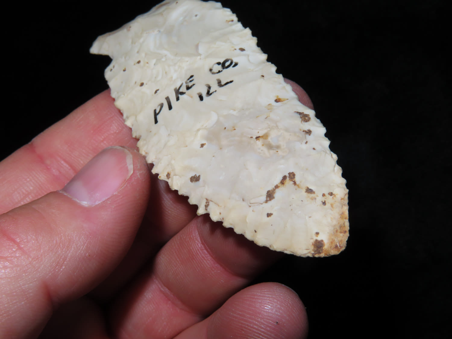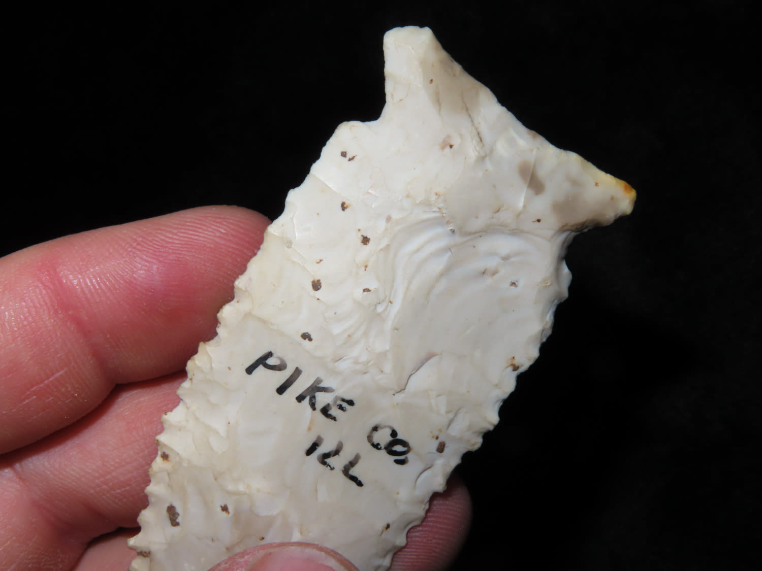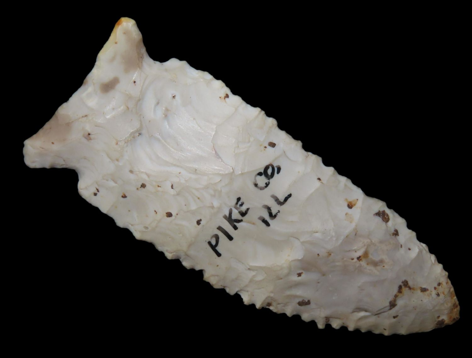 3 3/8″ Serrated Stillwell, found in Pike Co Illinois, Ex Mark Hanet, Roy Cunningham (Who’s Who #5), Ex Randall Kimbrell Collection