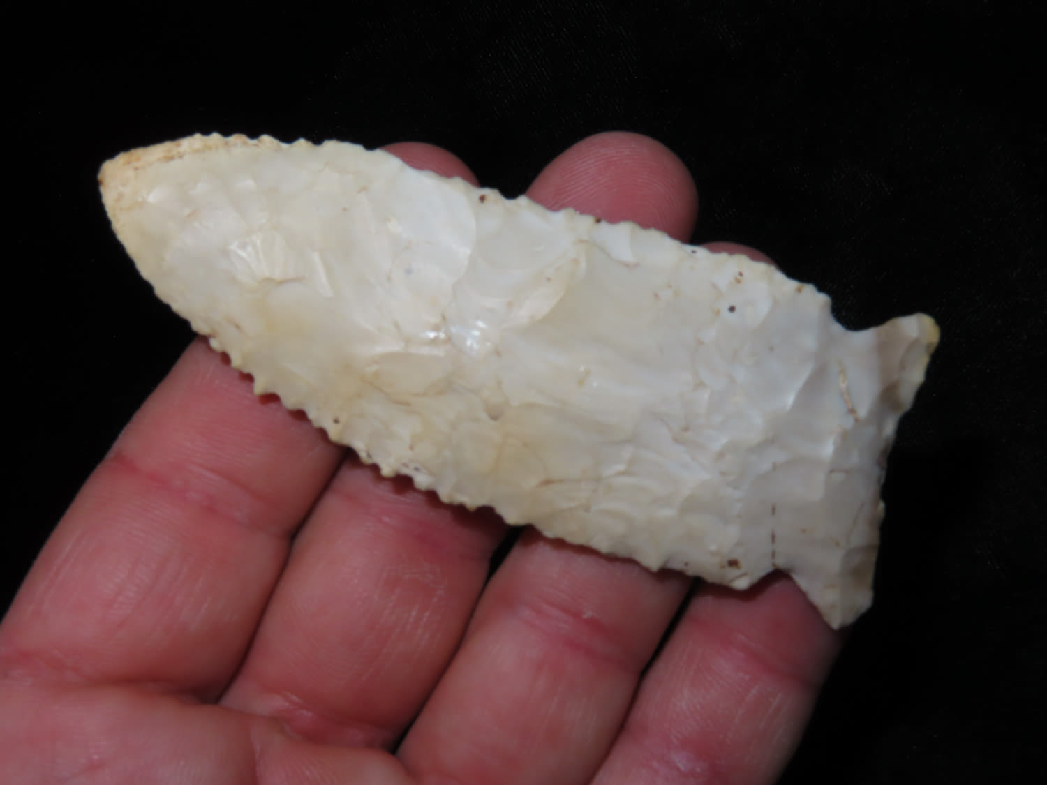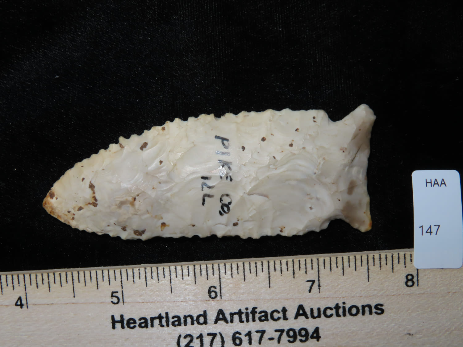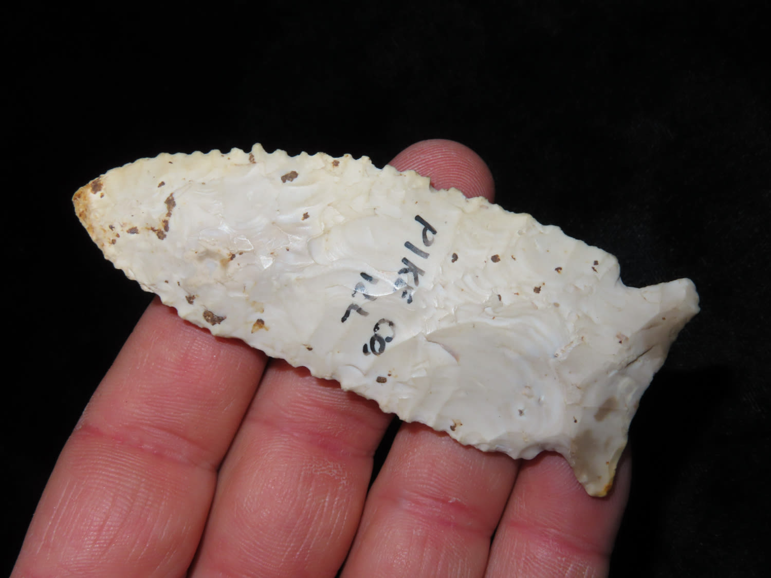 3 3/8″ Serrated Stillwell, found in Pike Co Illinois, Ex Mark Hanet, Roy Cunningham (Who’s Who #5), Ex Randall Kimbrell Collection