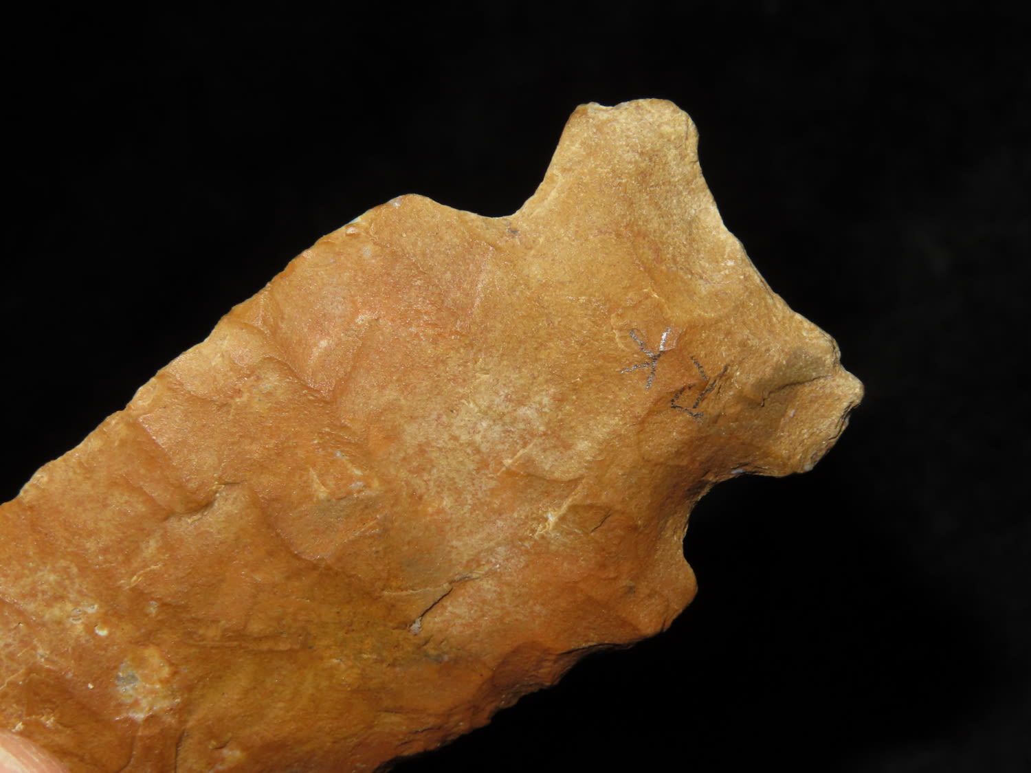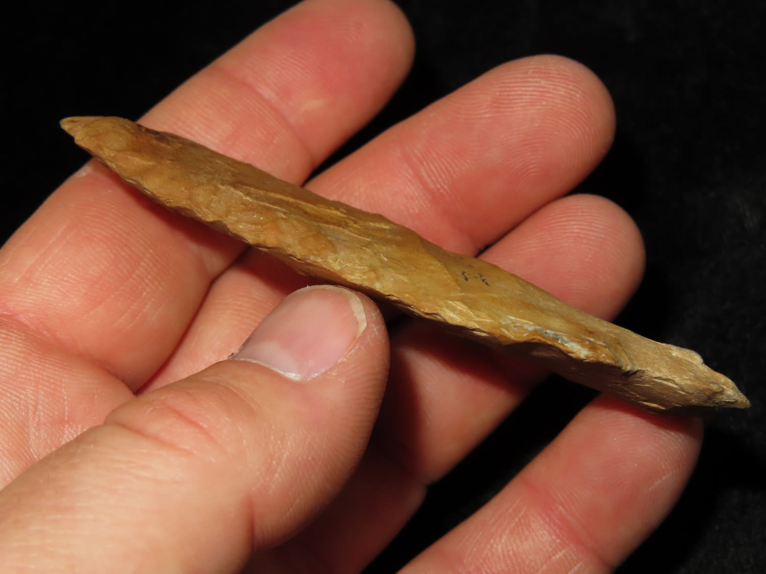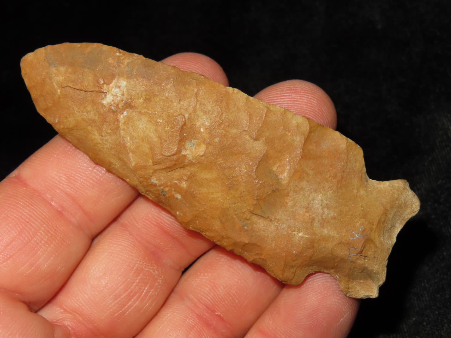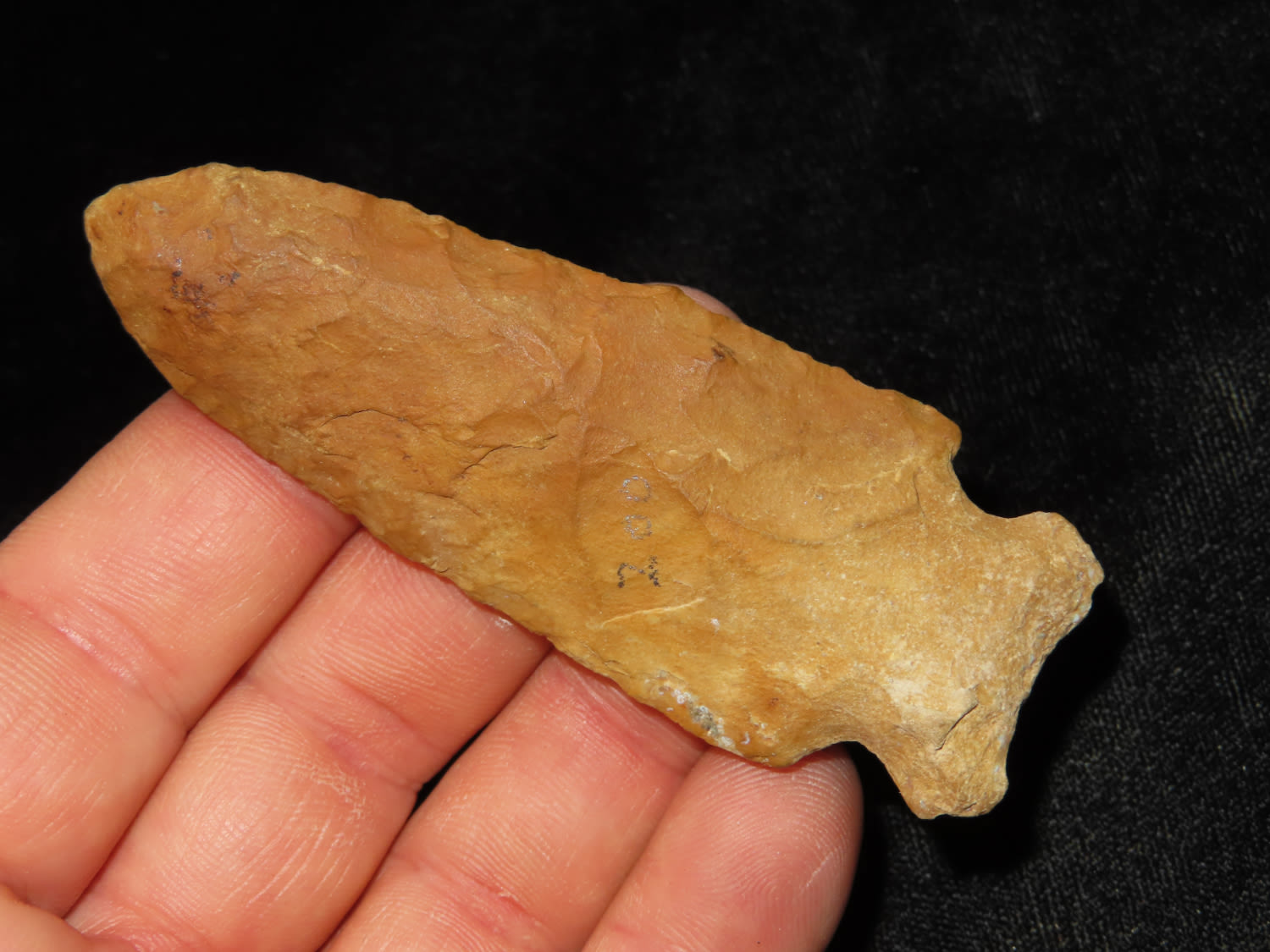 3 3/8″ Concave Base Big Sandy found by Steven Hines in Wabash Co Illinois, Ex Randall Kimbrell Collection
