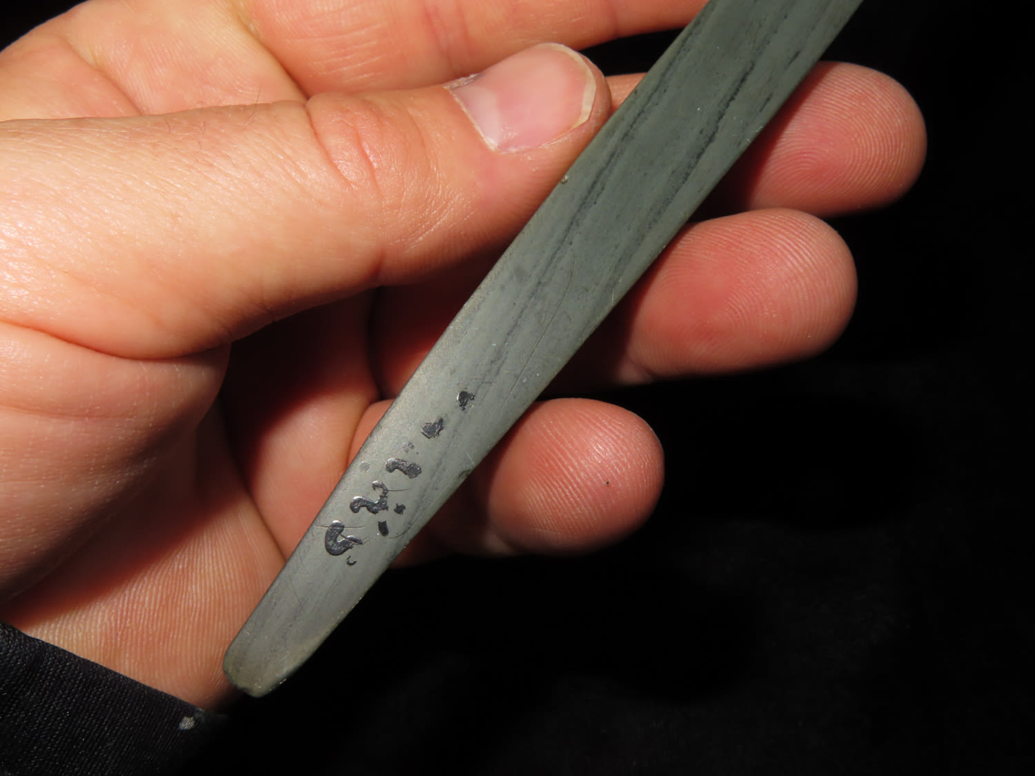 5 5/8″ Slate Bar, Ex Cameron Parks, Mac Costello, found in DeKalb Co Indiana, Ex Randall Kimbrell Collection