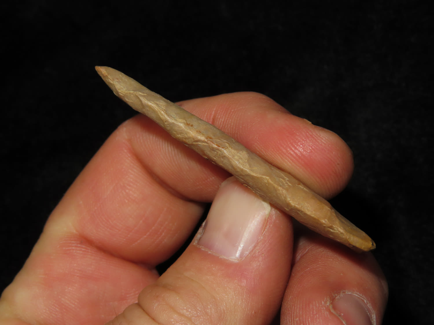2 1/4″ Dalton Drill, made of Bailey Chert, found in Alexander Co Illinois, Ex Randall Kimbrell Collection
