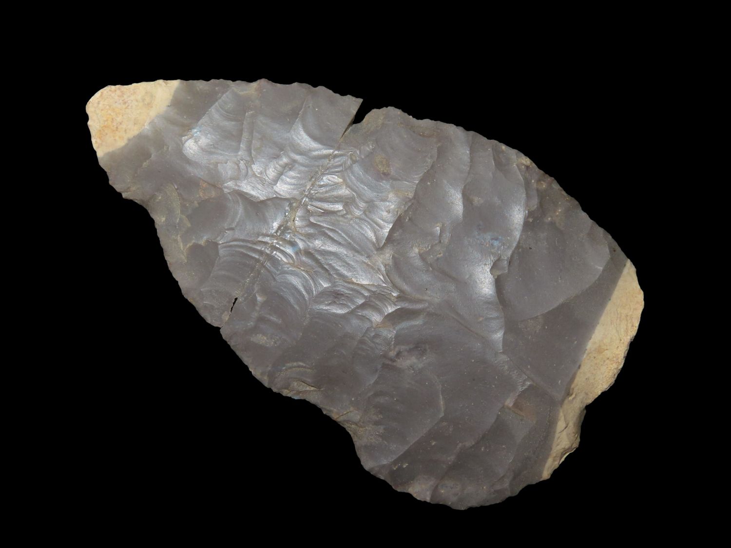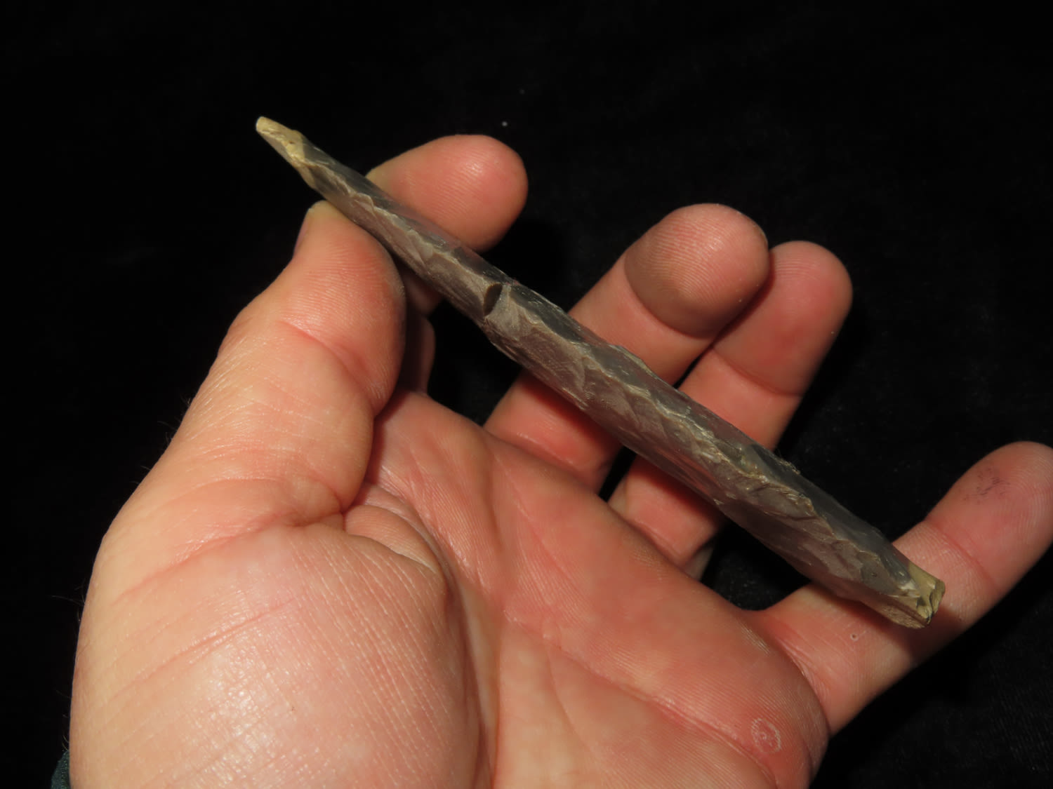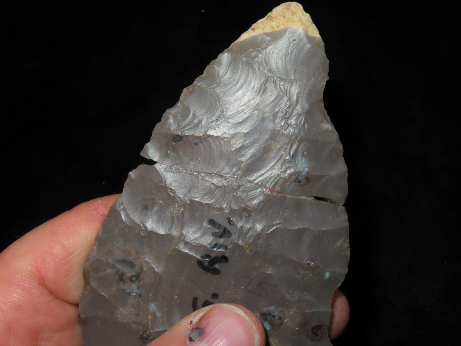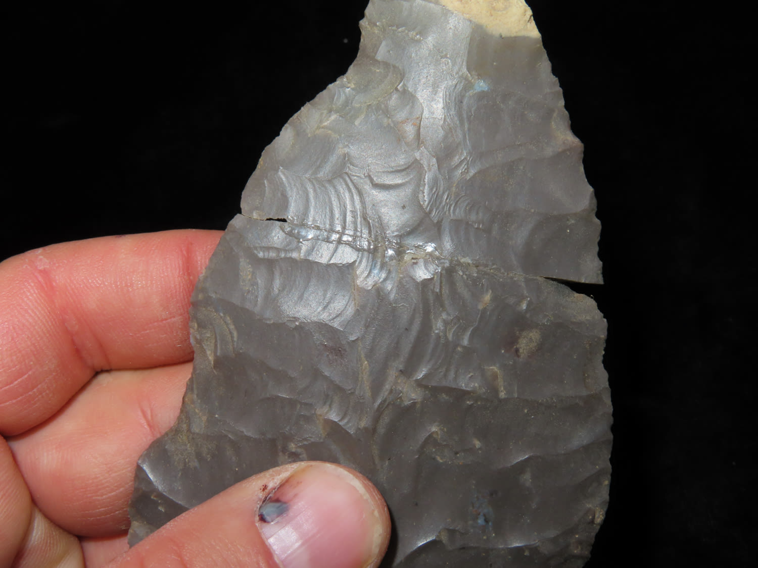 4 1/2″ Cache Blade, ***BROKEN AND GLUED***, found in Jasper Co Illinois, Ex Randall Kimbrell Collection