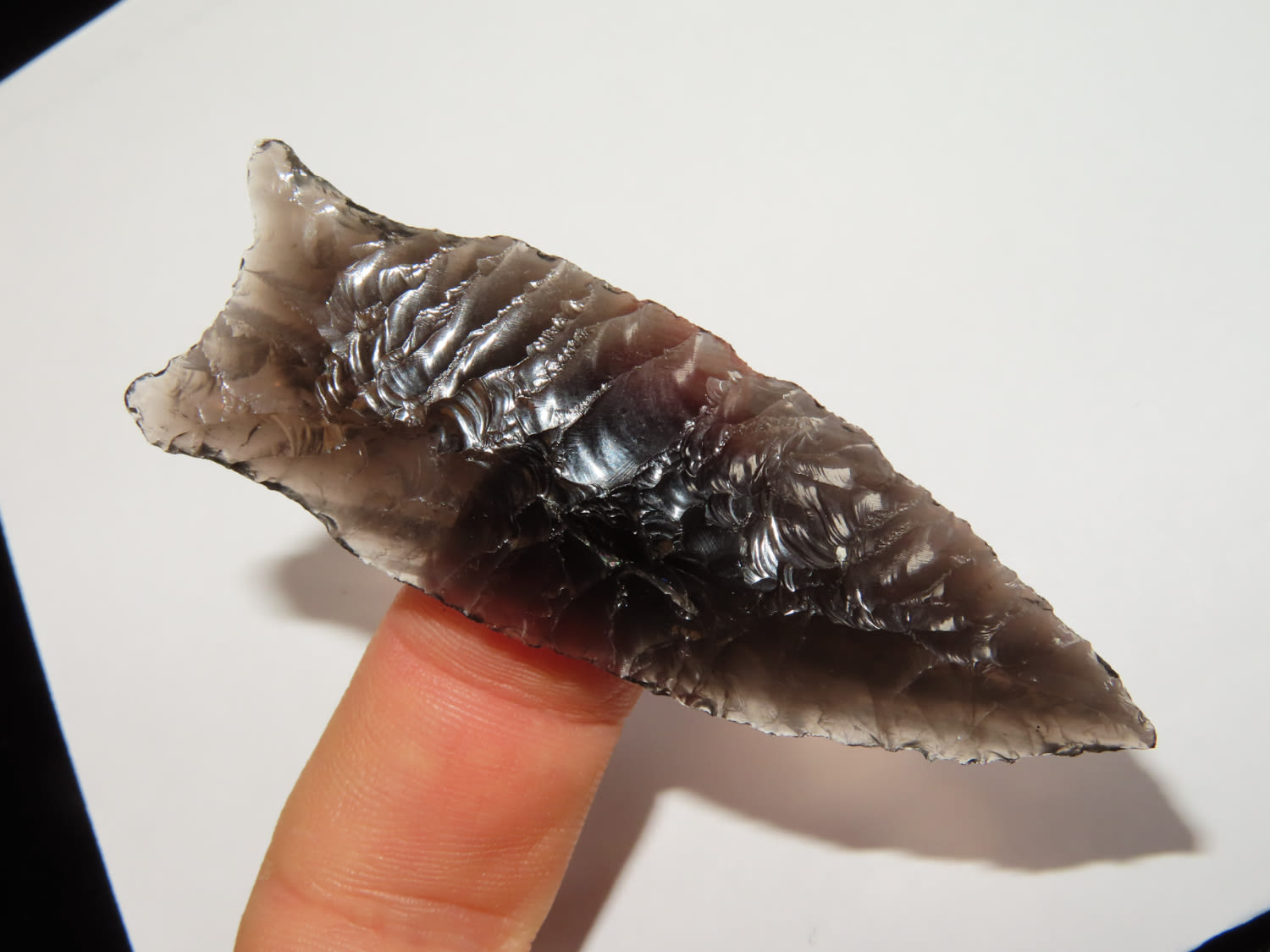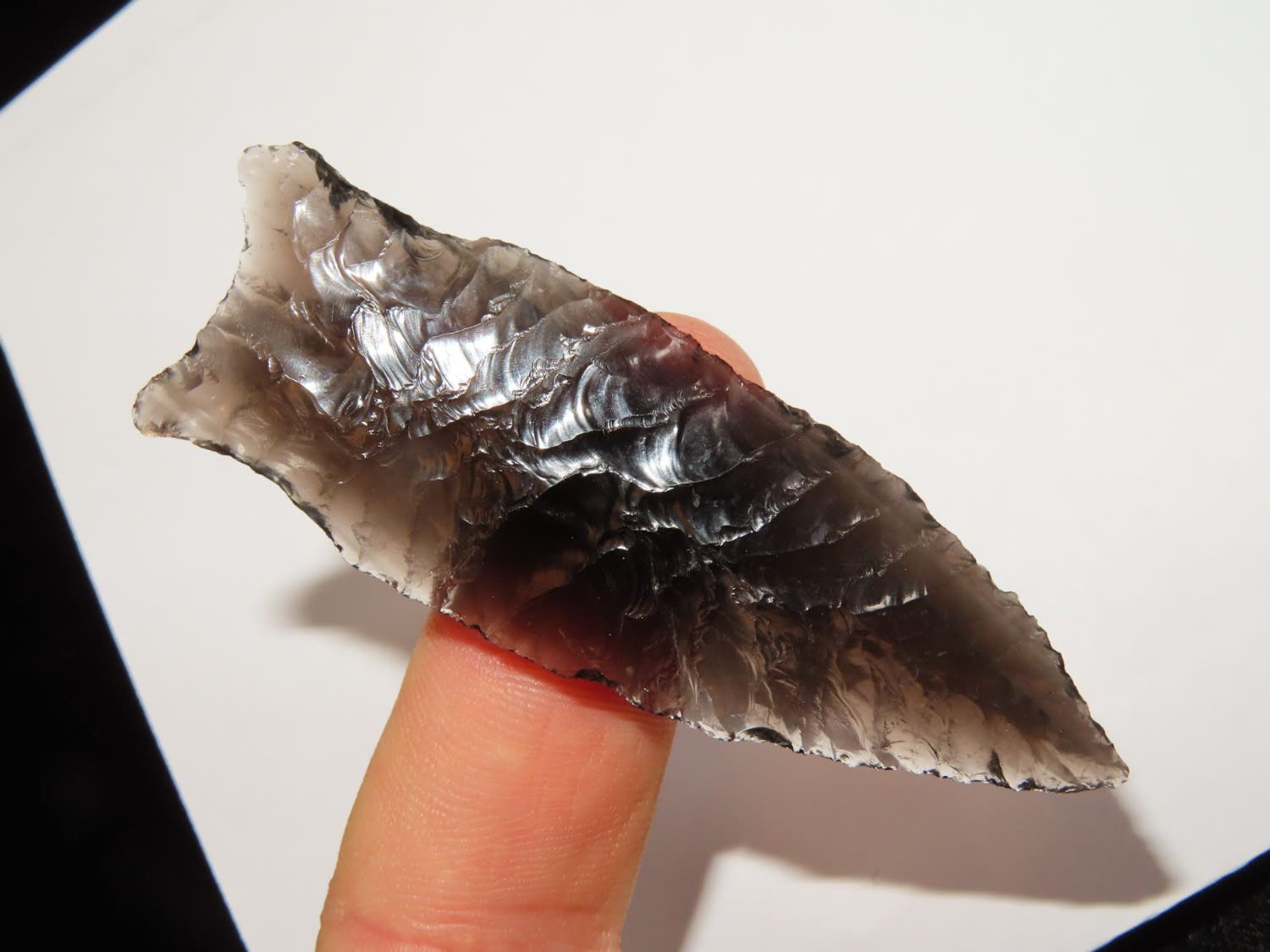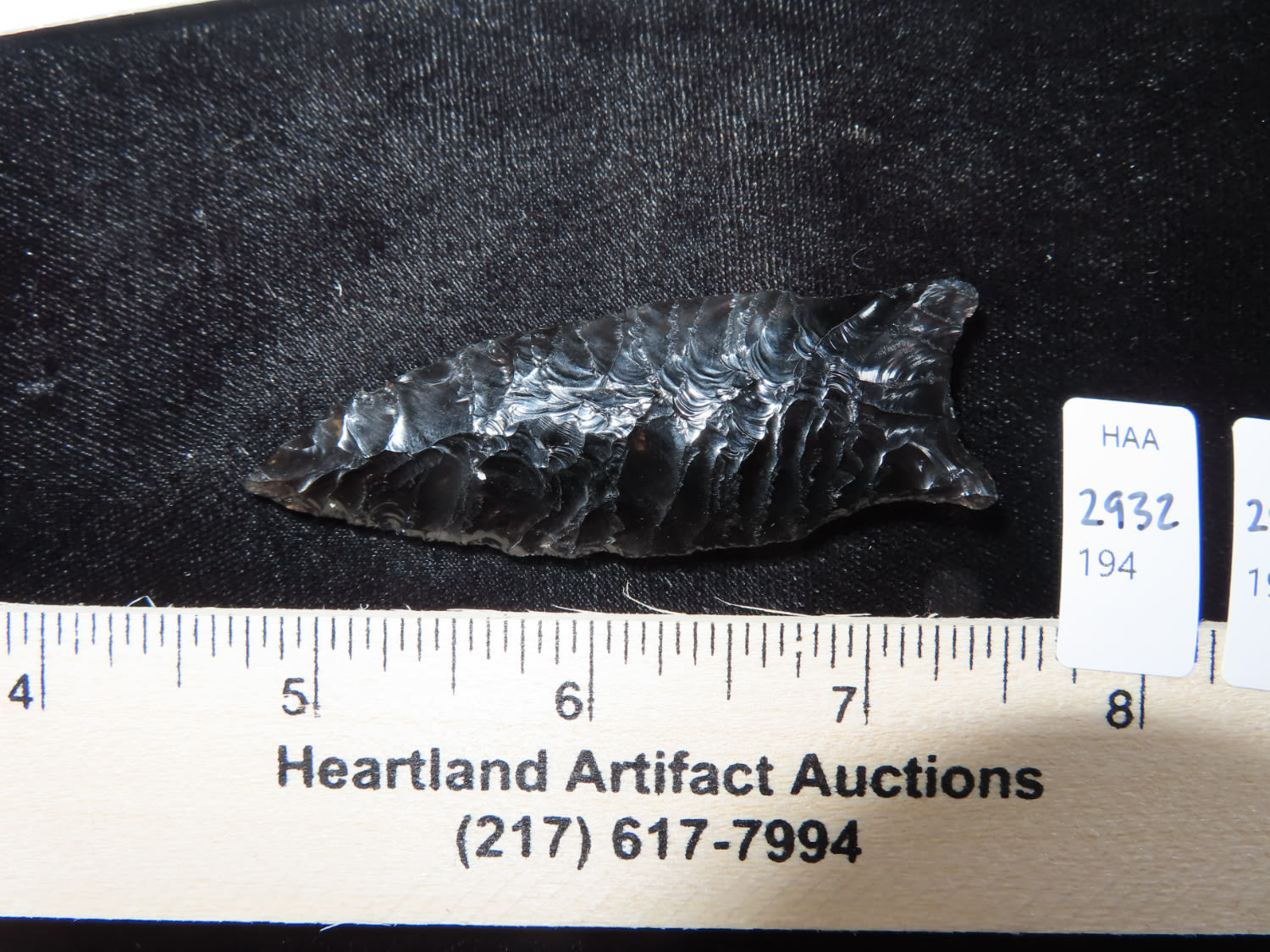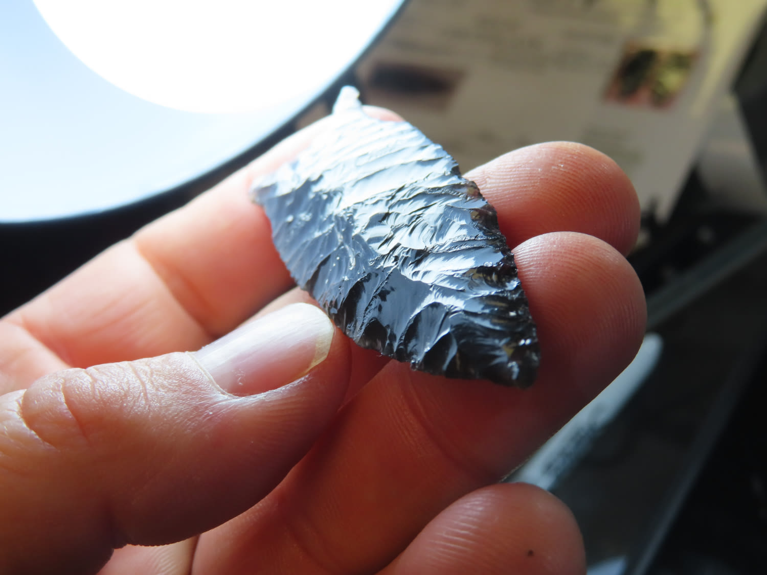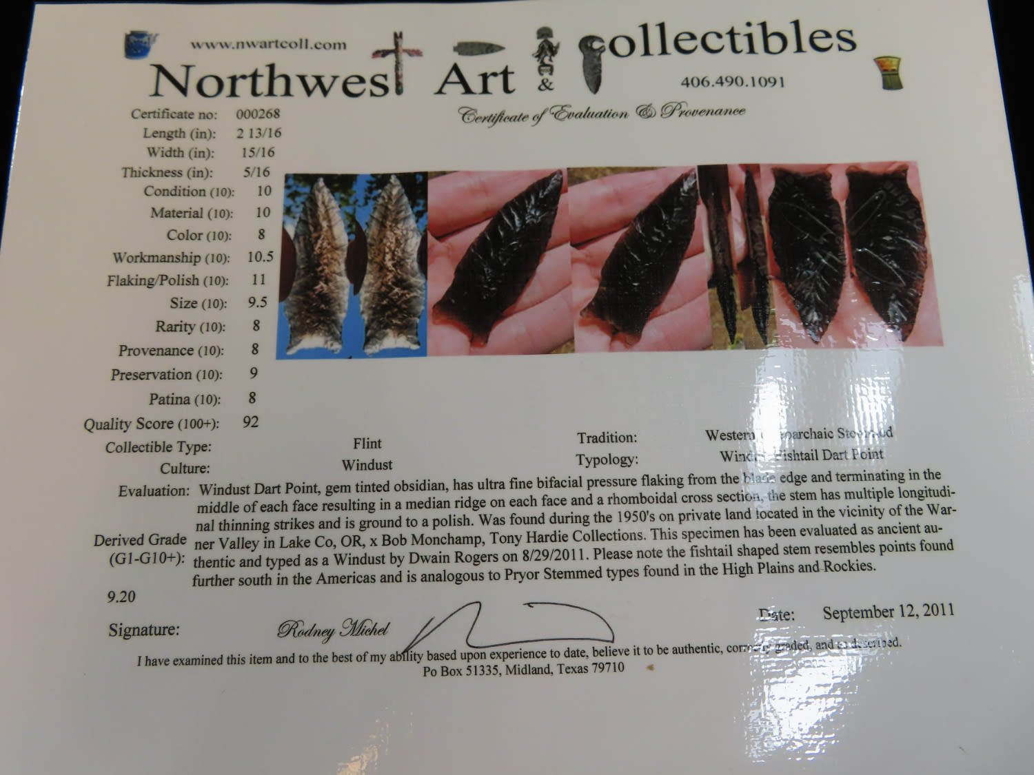 2 13/16″ Windust, made from Stunning Translucent Black Gem Obsidian, 2x COA-Rogers & Michel, found by Floyd Hoyz Sr. in the 1960’s, on private property in the Blackrock Desert, Northern Nevada