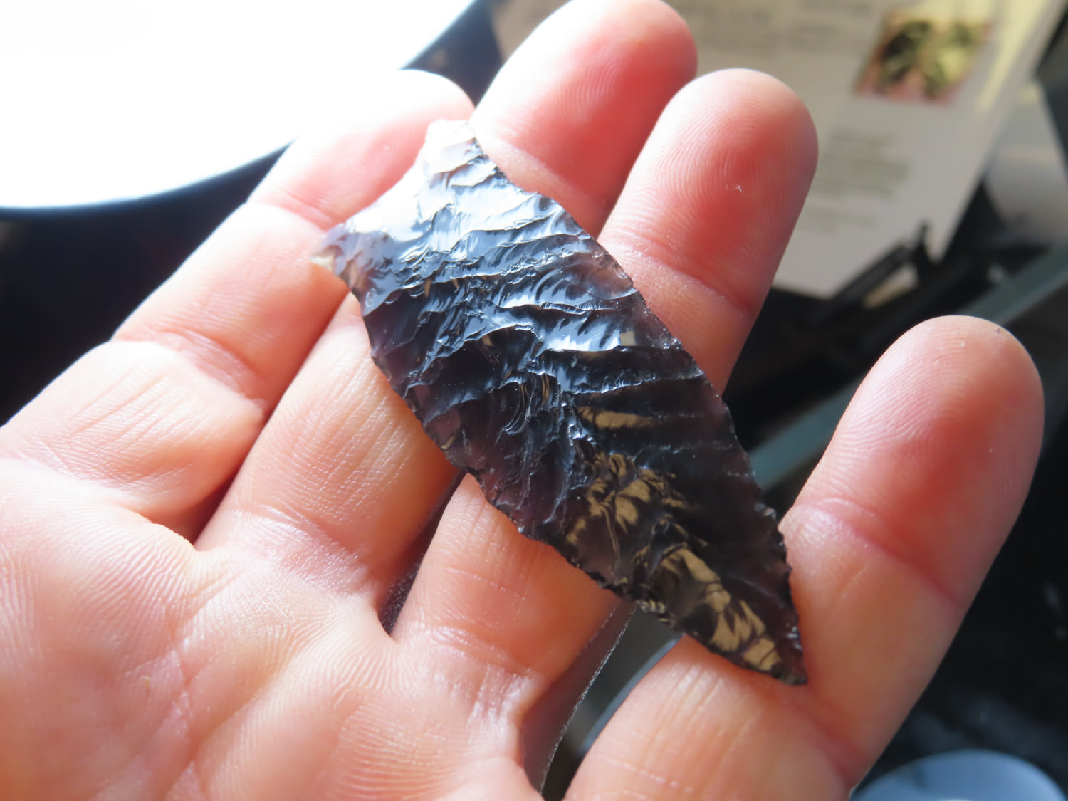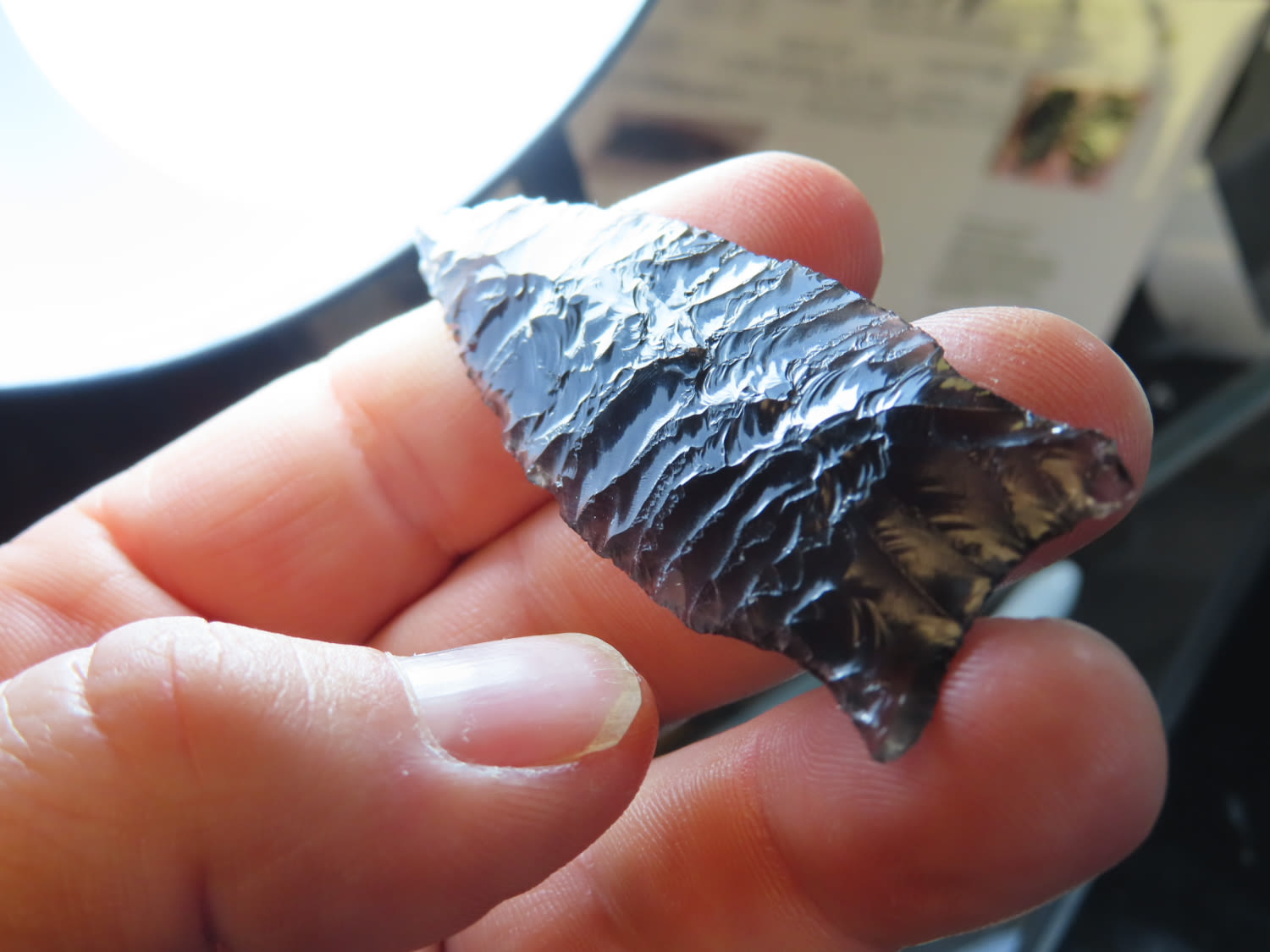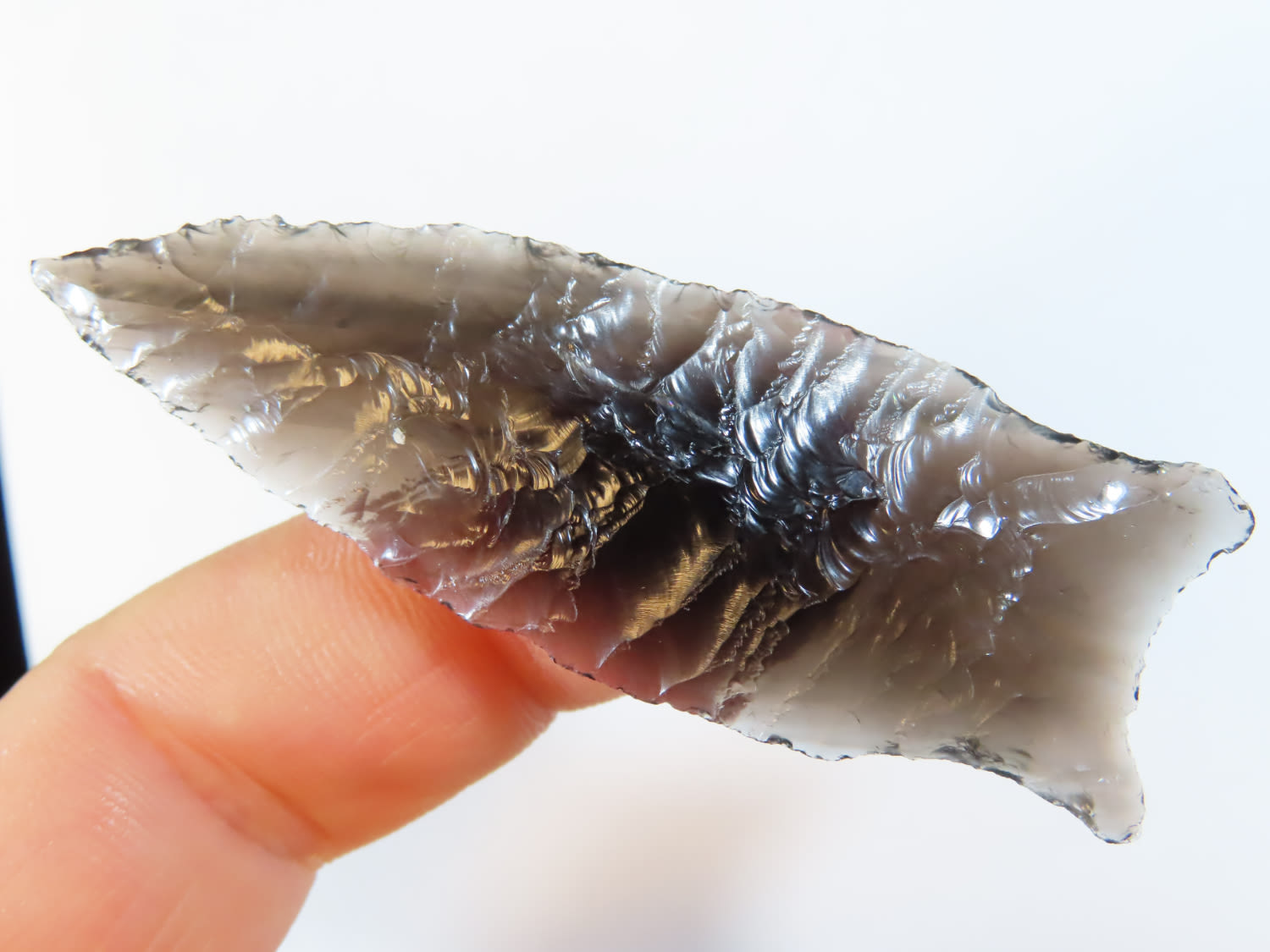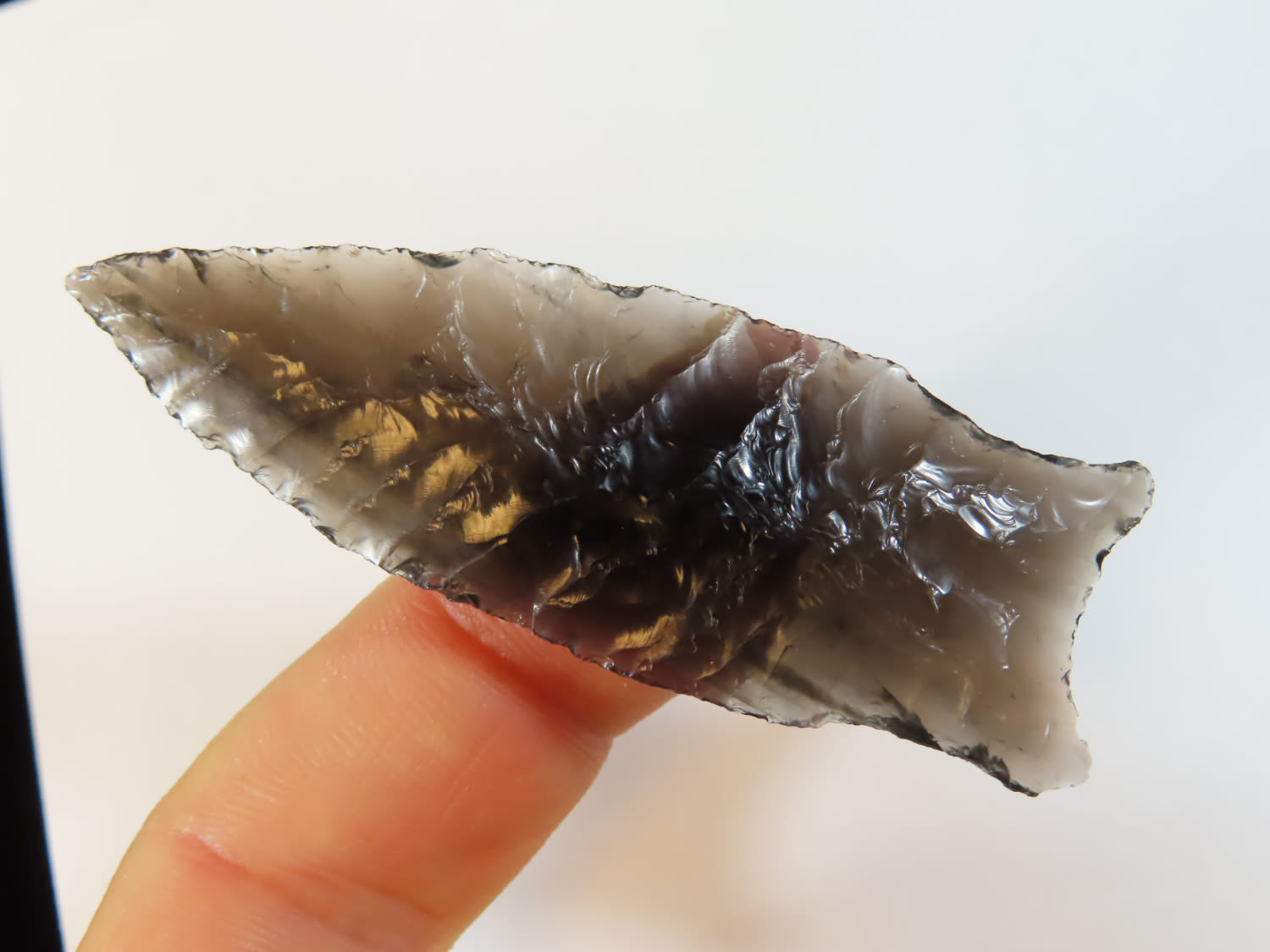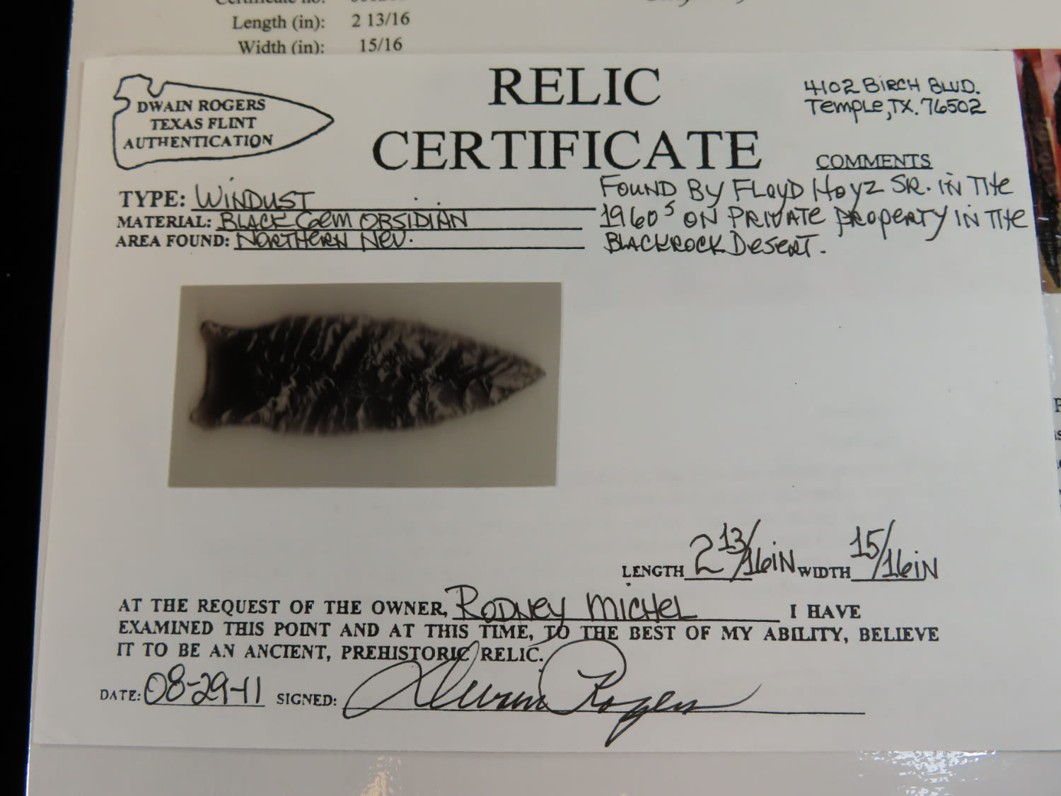 2 13/16″ Windust, made from Stunning Translucent Black Gem Obsidian, 2x COA-Rogers & Michel, found by Floyd Hoyz Sr. in the 1960’s, on private property in the Blackrock Desert, Northern Nevada