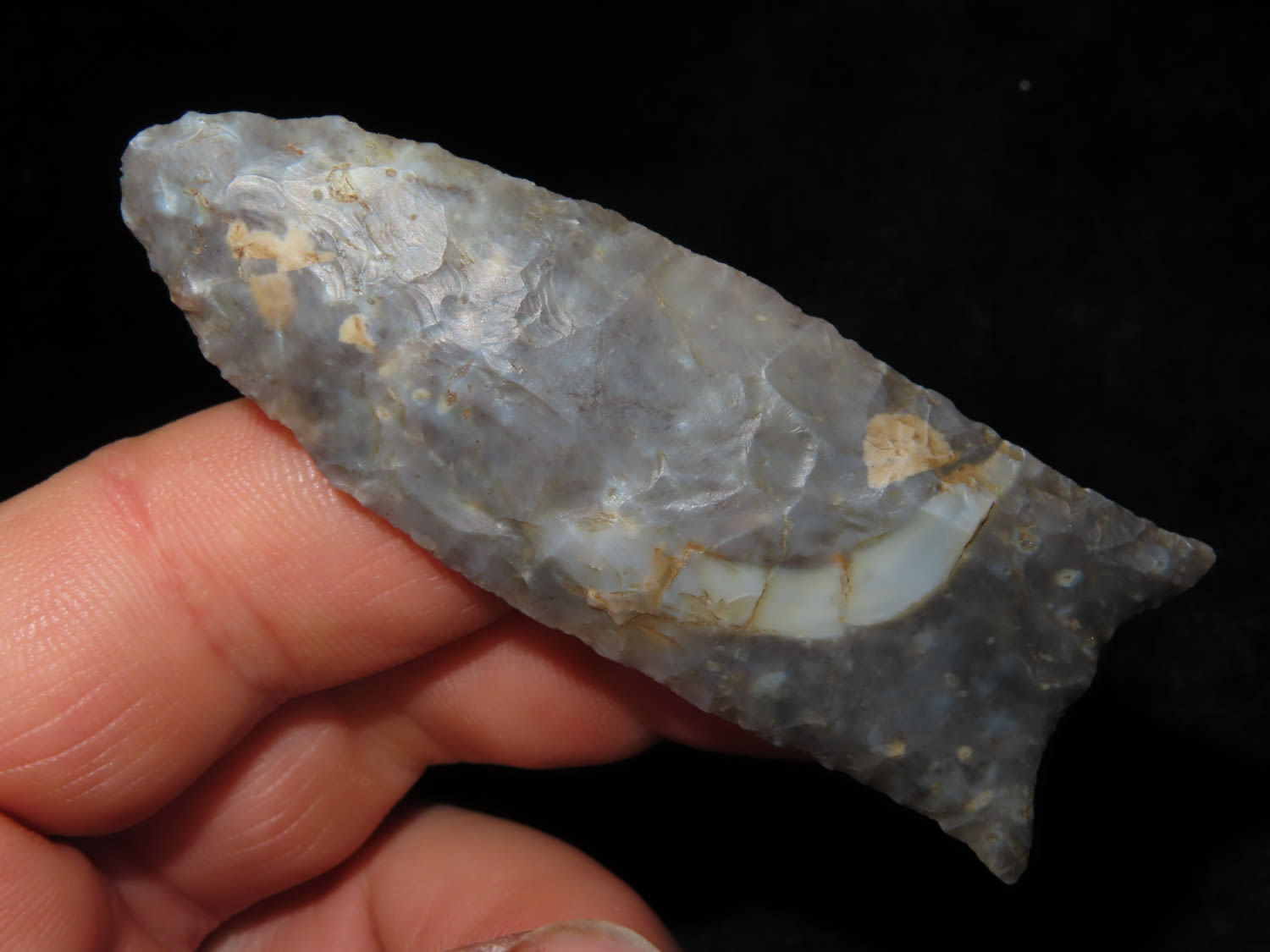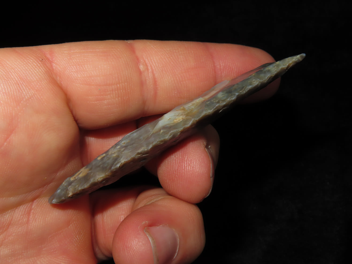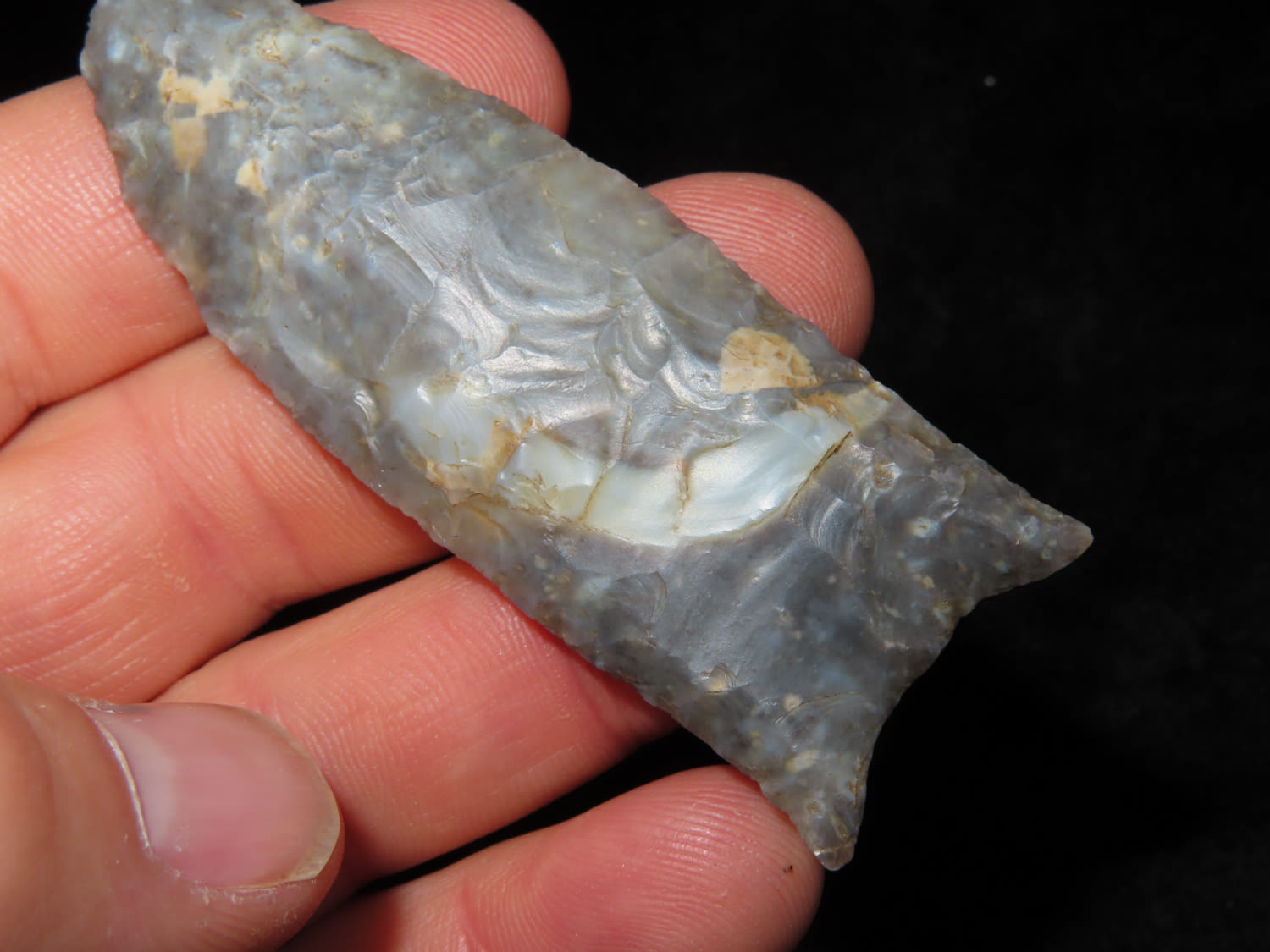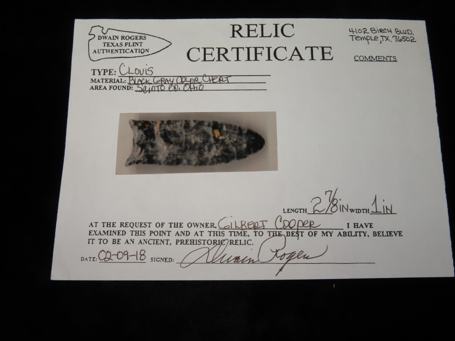 2 7/8″ Clovis. Rogers COA, made from Black Chert, found in Scioto Co Ohio