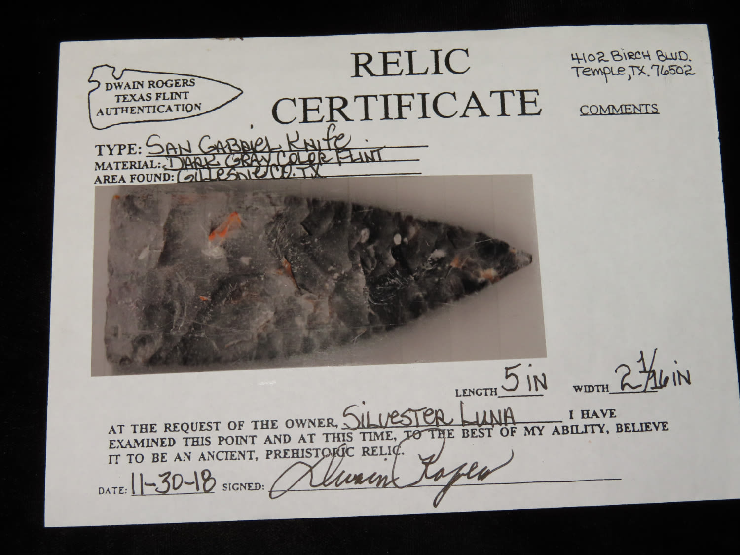 5″ San Gabriel Knife, Rogers COA, found in Gillespie Co Texas, Outstanding Color.