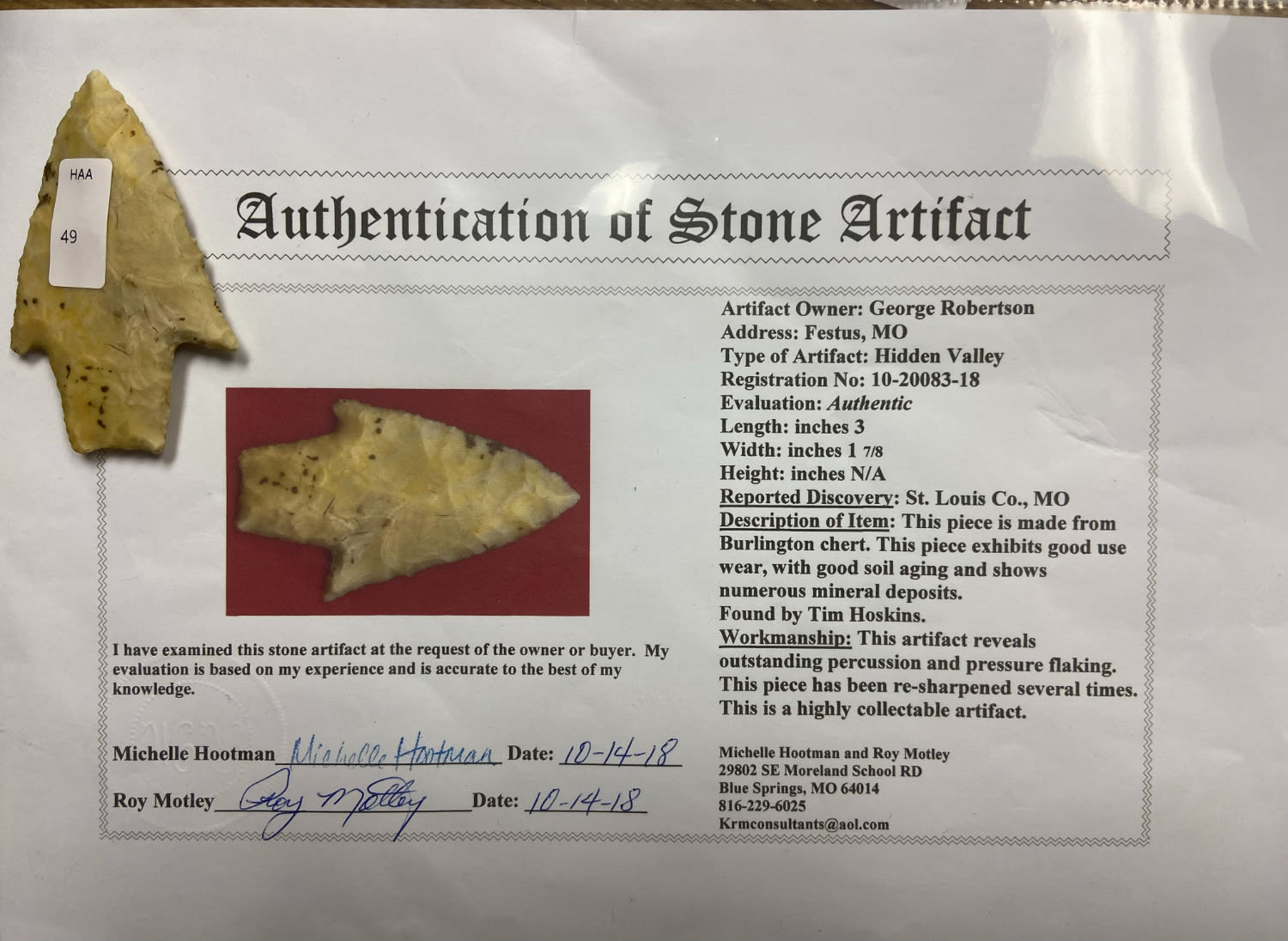 3″ Hidden Valley, Motley COA, found in St Louis Co Missouri, Ex Randall Kimbrell Collection