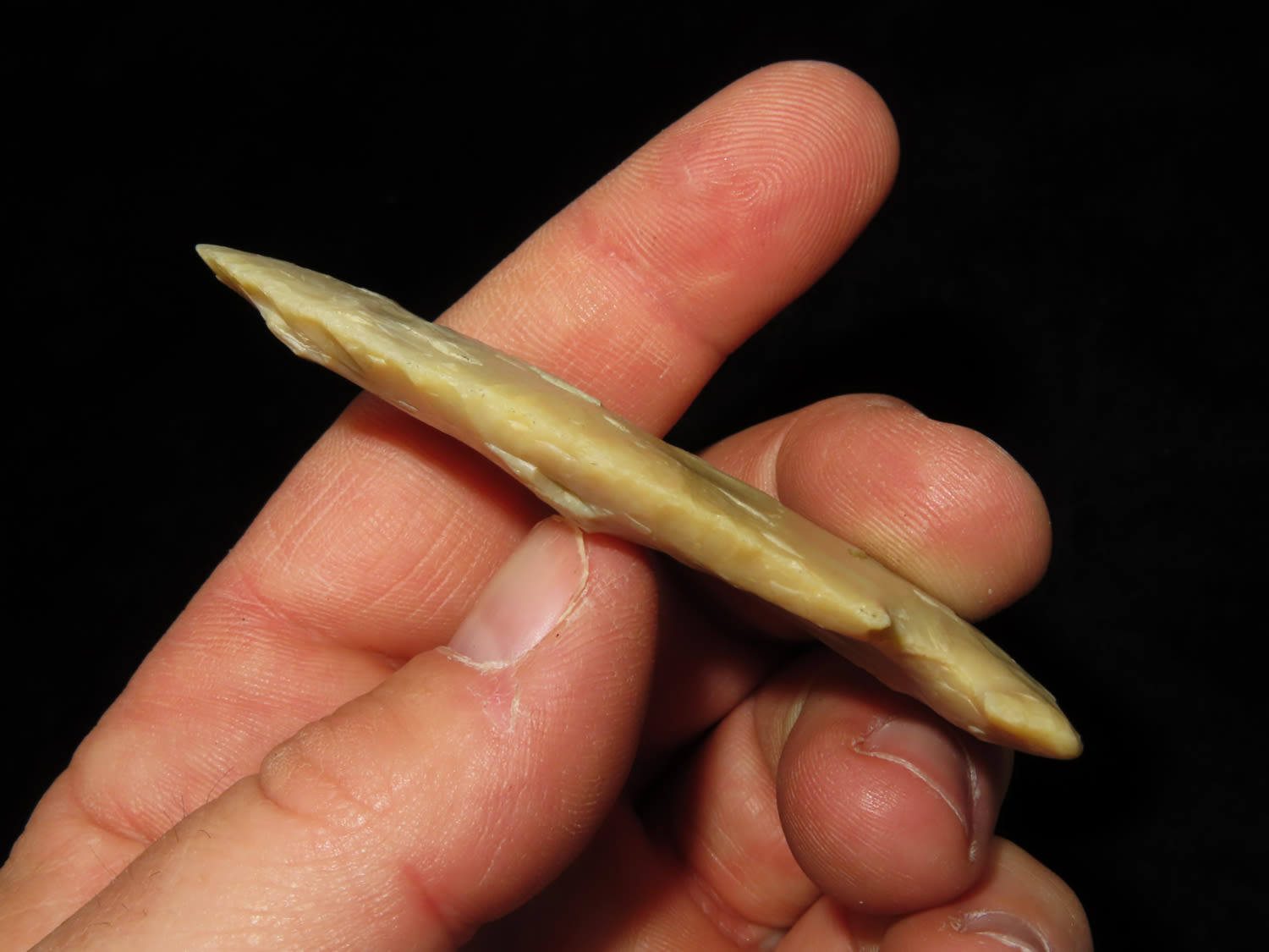 3″ Godar, found in Richland Co Illinois, made from Creek Polished Derby Chert, Ex Randall Kimbrell Collection