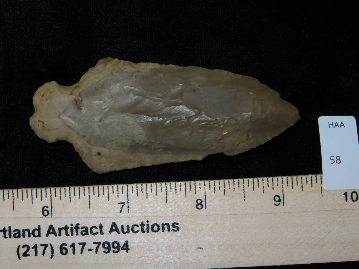 3 1/2″ Classic Heavy Duty, Cobden Chert, found in Wayne Co Illinois, One of only 2 the owner has ever seen made from Cobden material. Ex Randall Kimbrell Collection