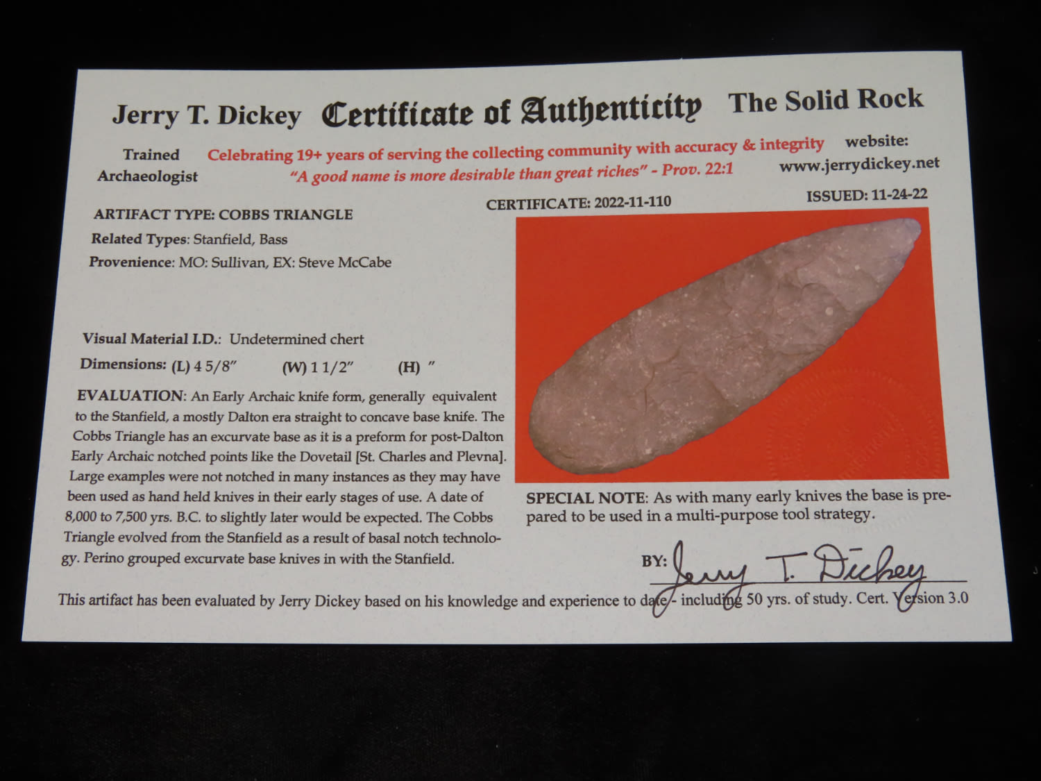 4 5/8″ Cobbs Triangle Blade, Dickey COA, Ex Steve McCabe Collection, Sullivan Co Missouri