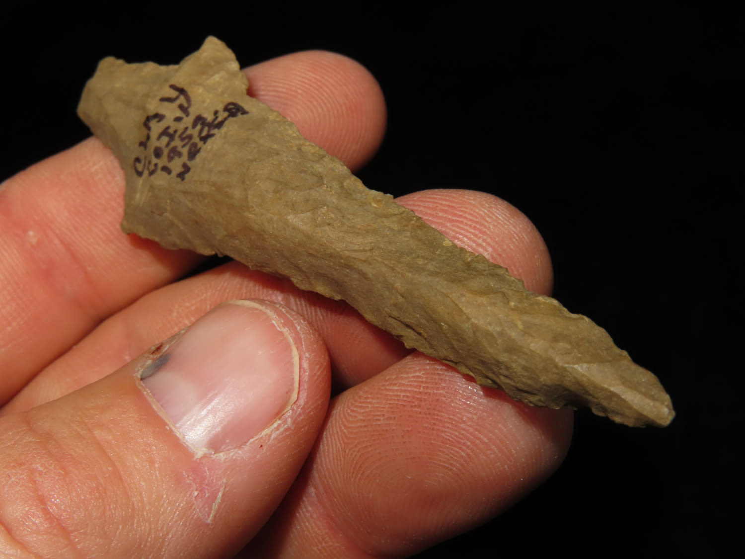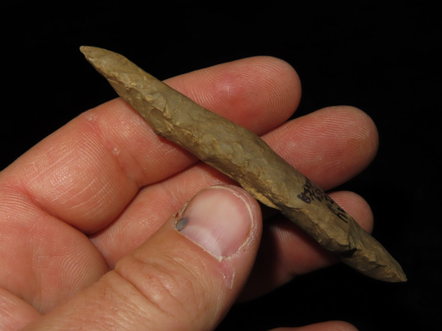 3 3/8″ Drill, found in Clay Co Illinois, Ex Indian Hill Museum, Ex Randall Kimbrell Collection
