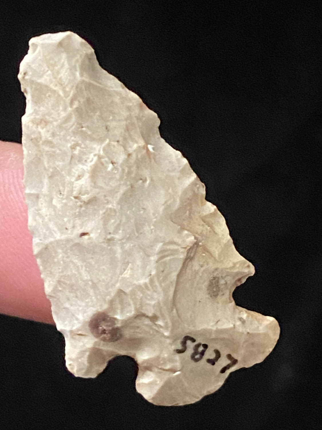 1 3/8″ Corner Notch, found in Southern Illinois, Ex Steve Manos Collection-Purchased at Collinsville Show, 2022