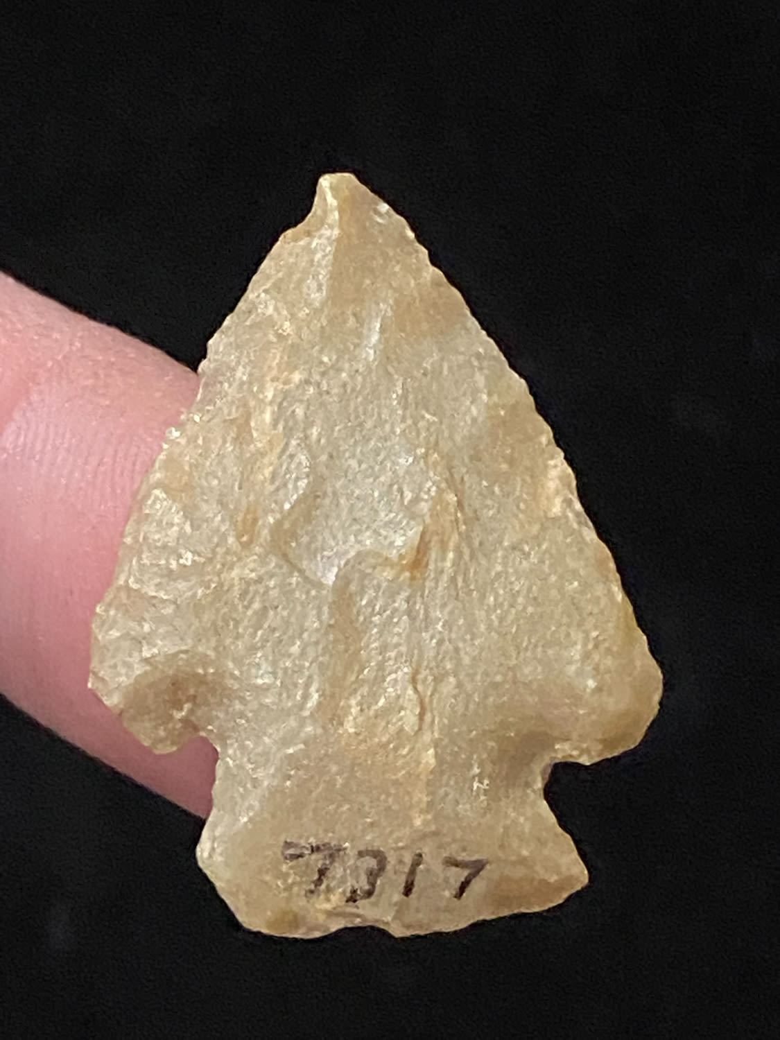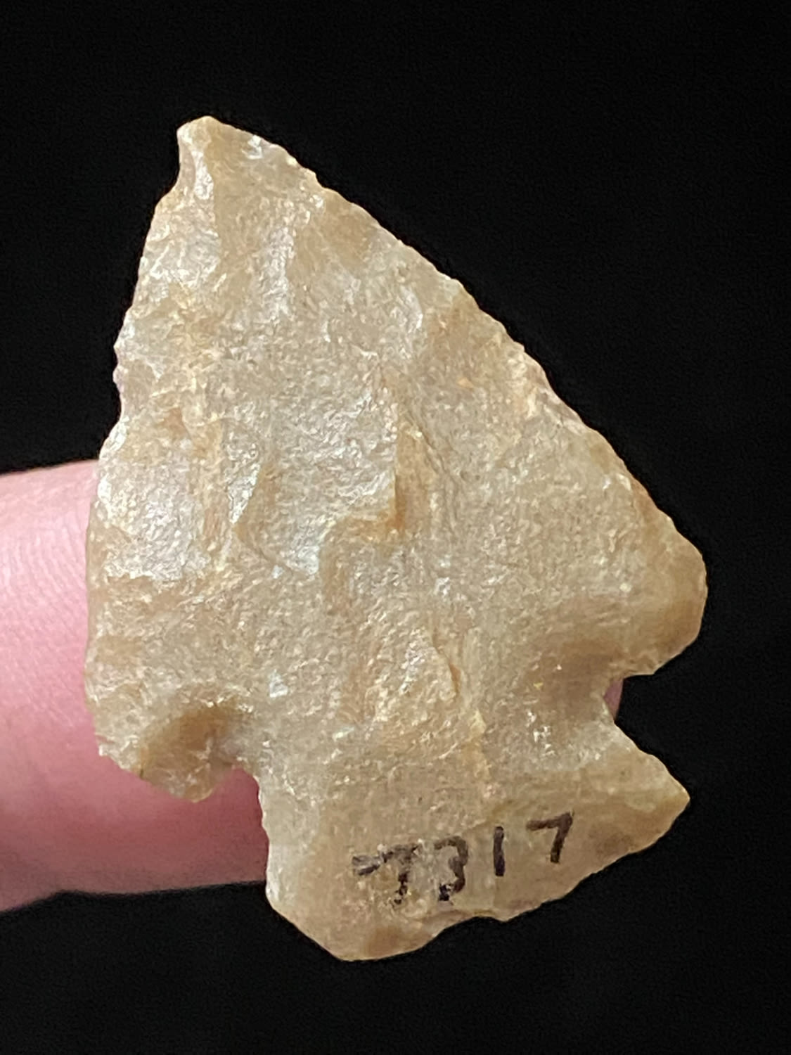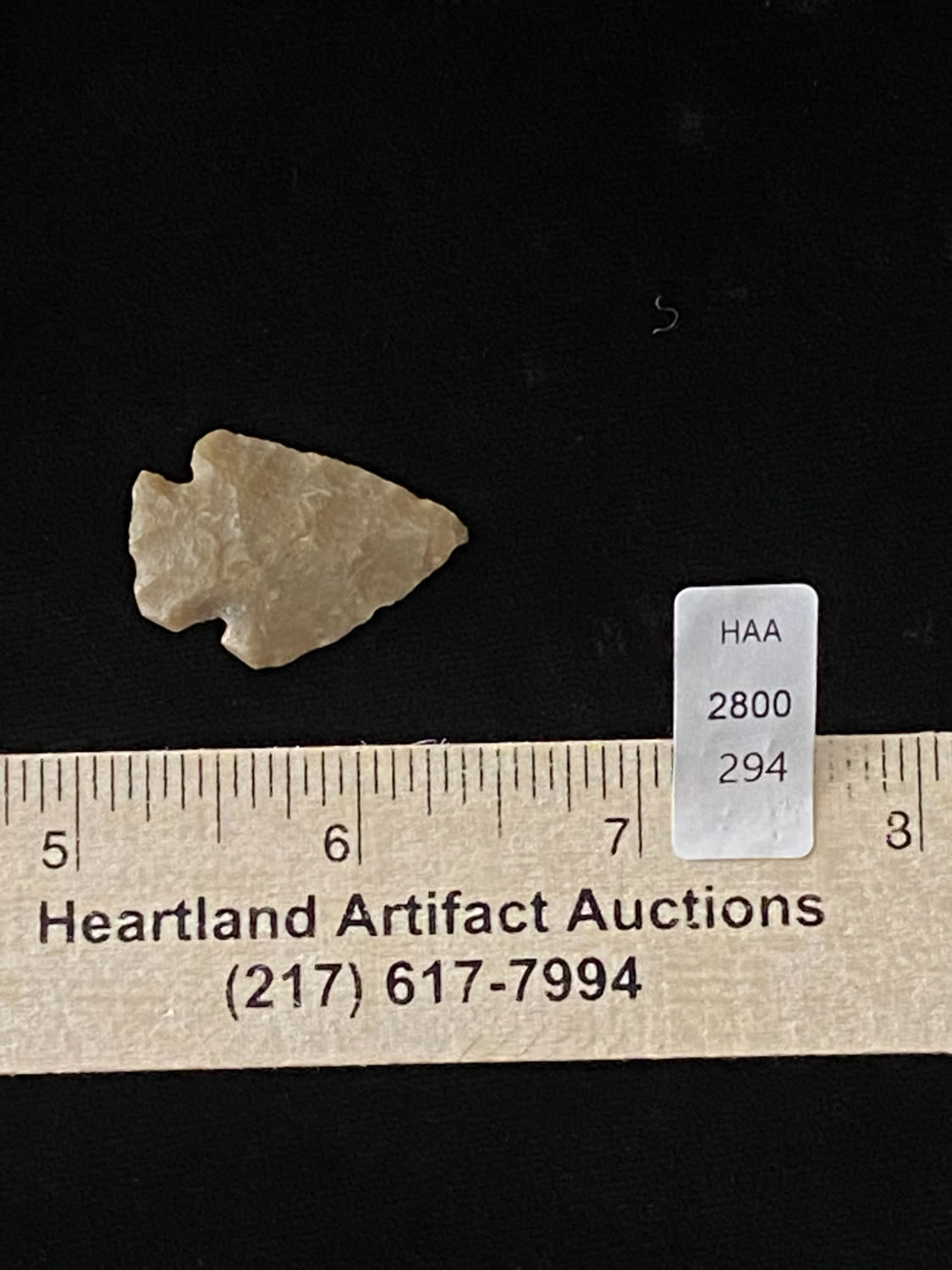 1 3/16″ Corner Notch, found in Southern Illinois, Ex Steve Manos Collection-Purchased at Collinsville Show, 2022