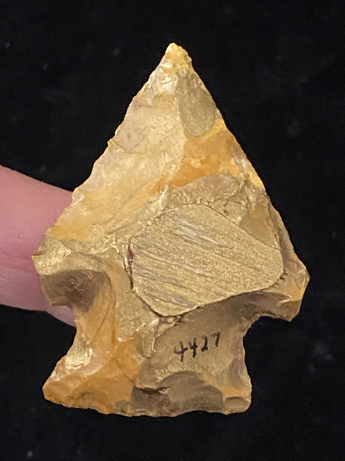 1 7/8″ Corner Notch, found in Southern Illinois, Ex Steve Manos Collection-Purchased at Collinsville Show, 2022