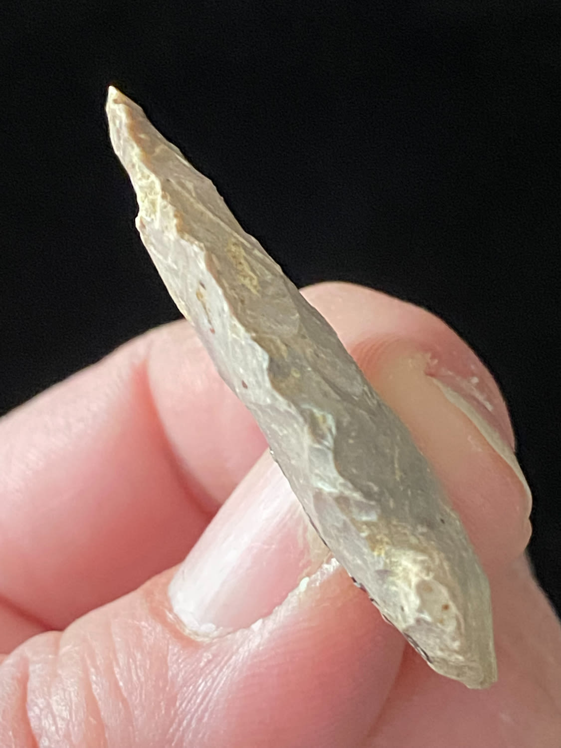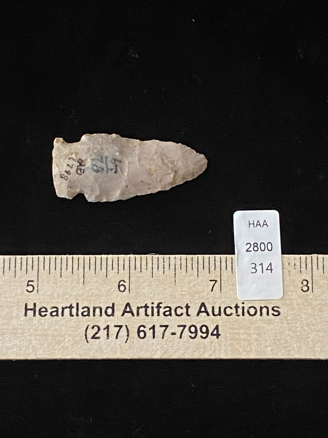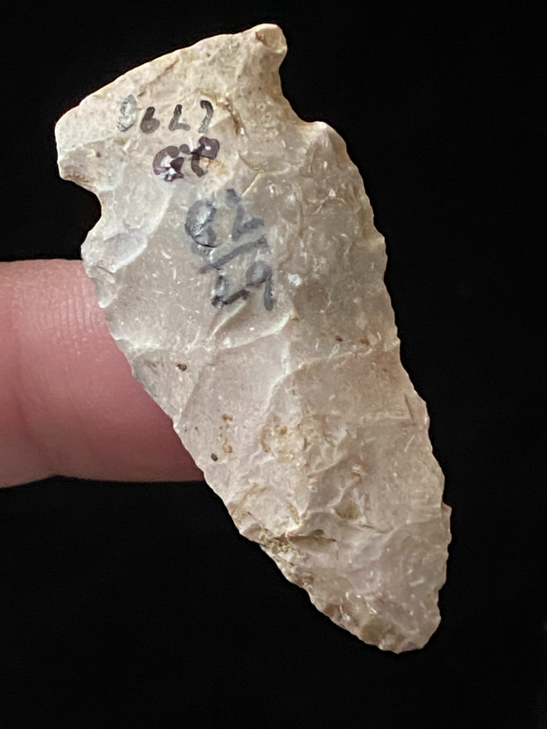 1 11/16″ Side Notch, found in Southern Illinois, Ex Steve Manos Collection-Purchased at Collinsville Show, 2022