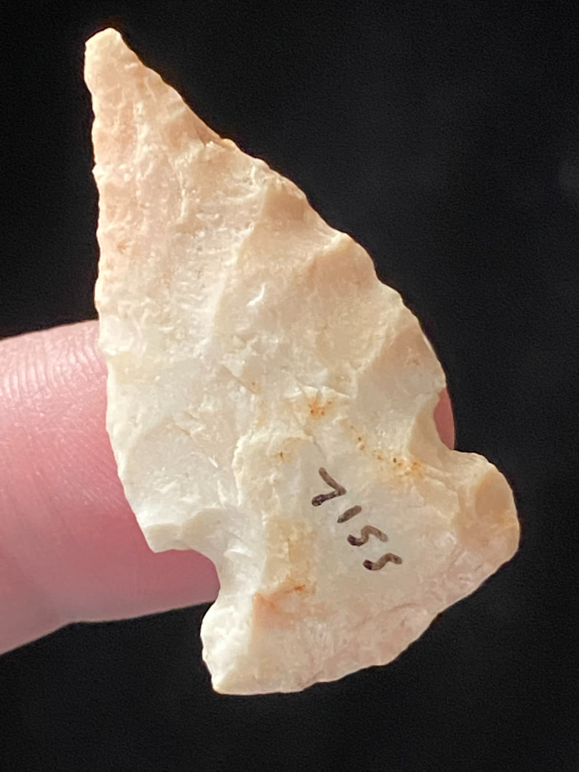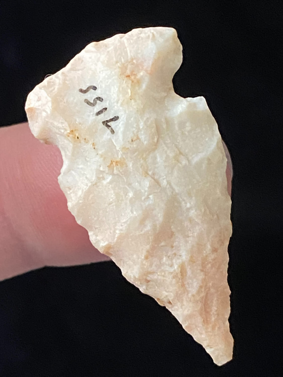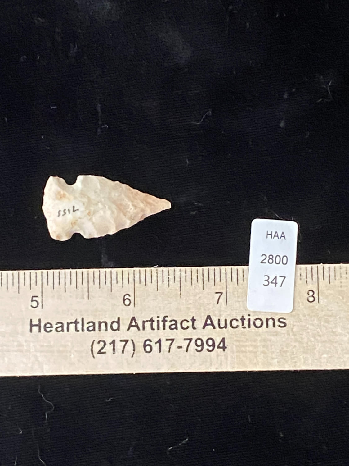 1 3/8″ Scallorn, found in Southern Illinois, Ex Steve Manos Collection-Purchased at Collinsville Show, 2022