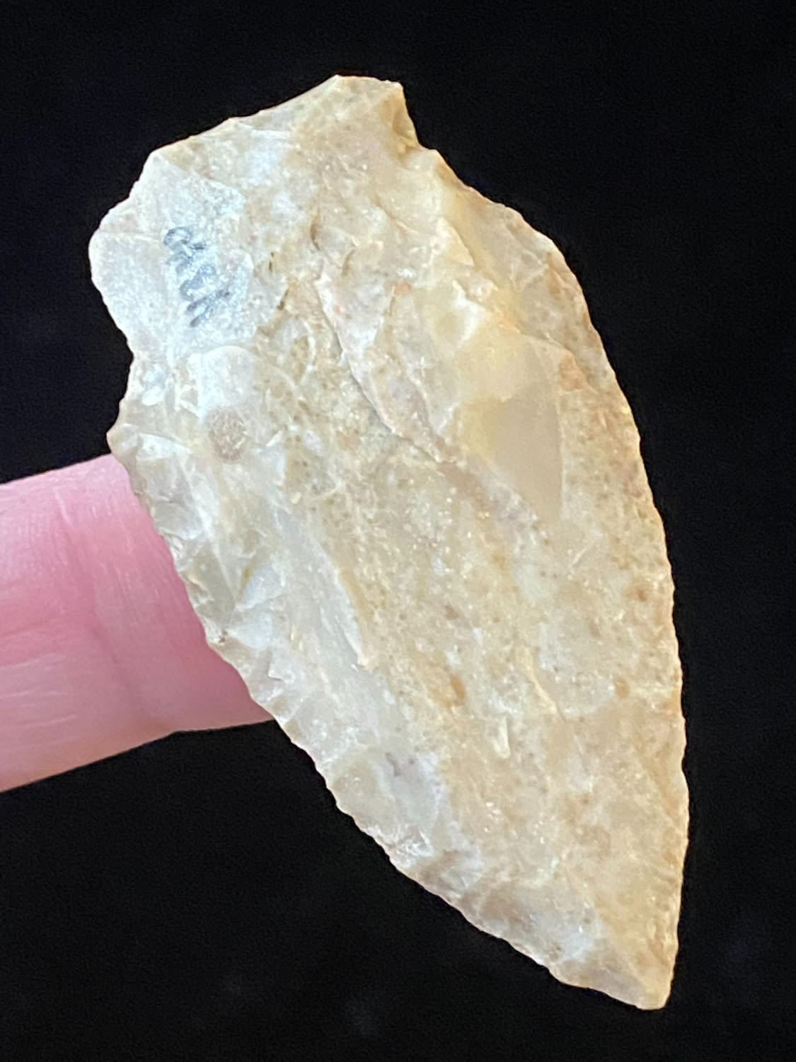 2 3/16″ Rice Shallow Notch, found in Southern Illinois, Ex Steve Manos Collection-Purchased at Collinsville Show, 2022