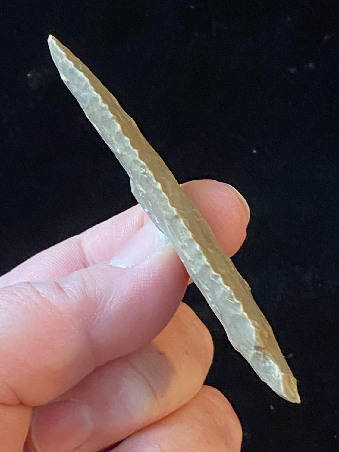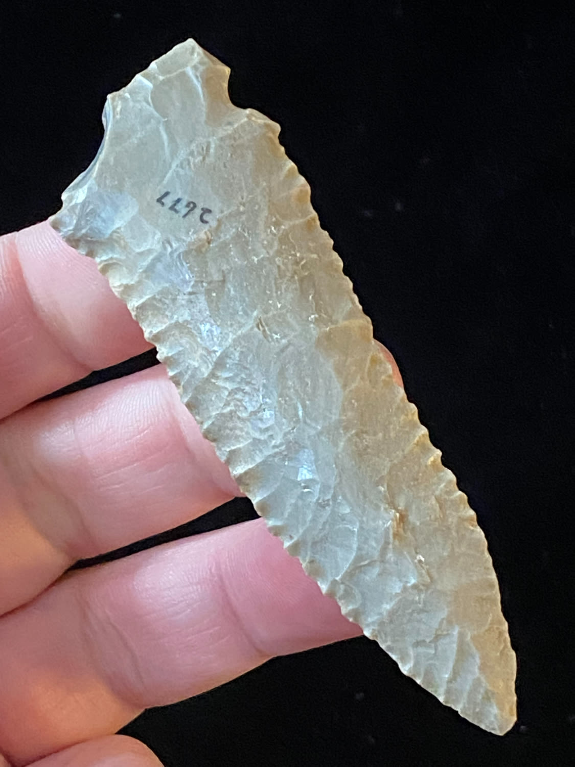3 1/4″ Kirk Serrated, found in Southern Illinois, Ex Steve Manos Collection-Purchased at Collinsville Show, 2022