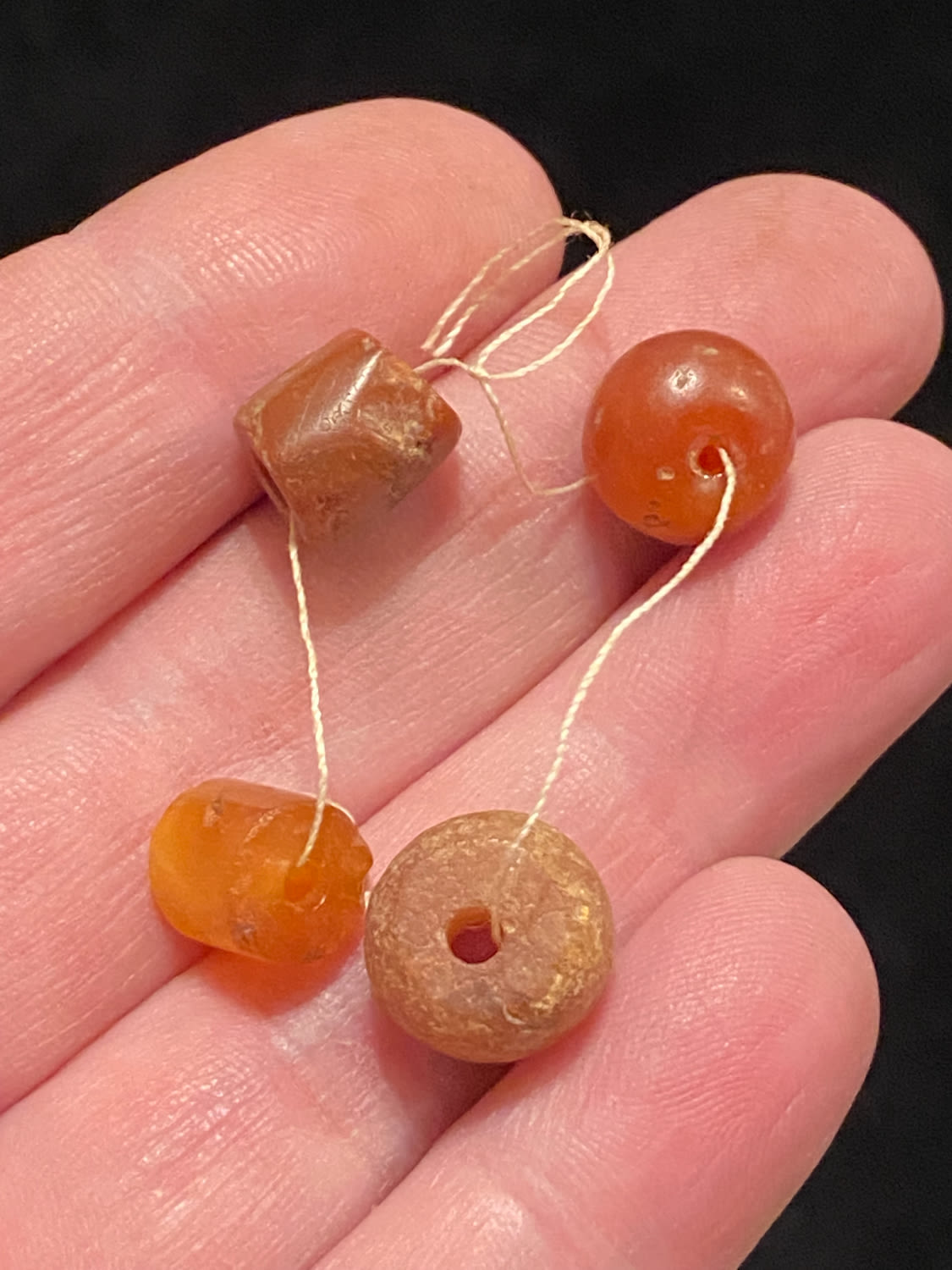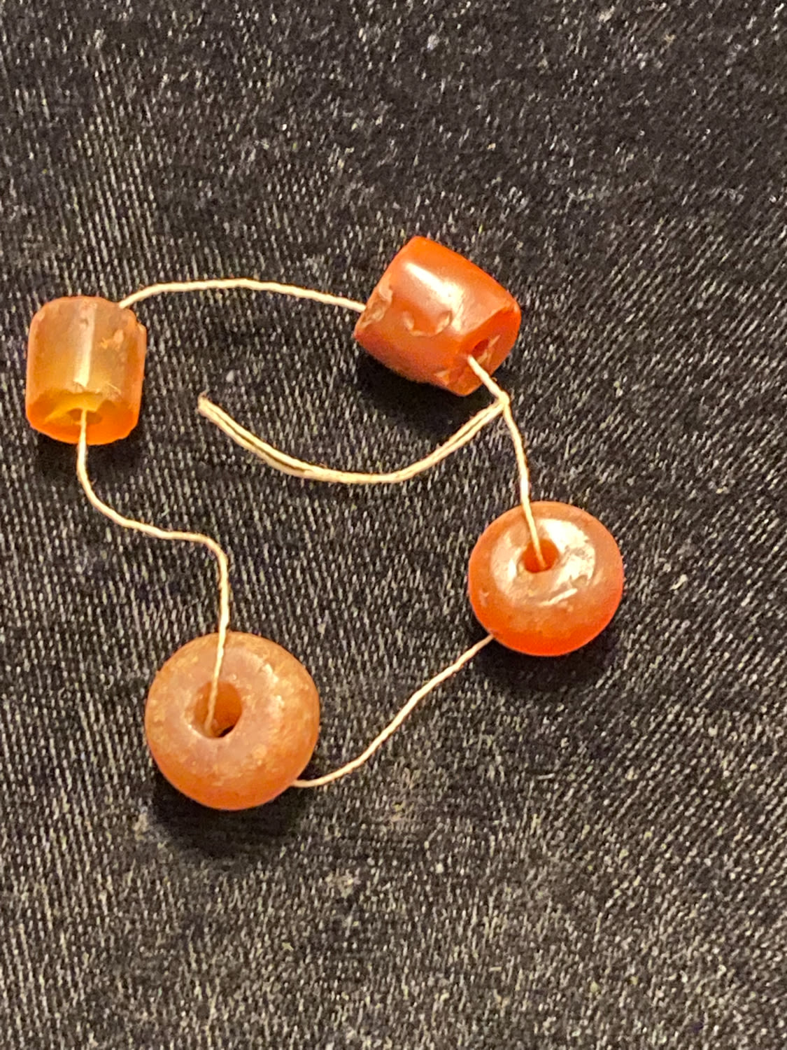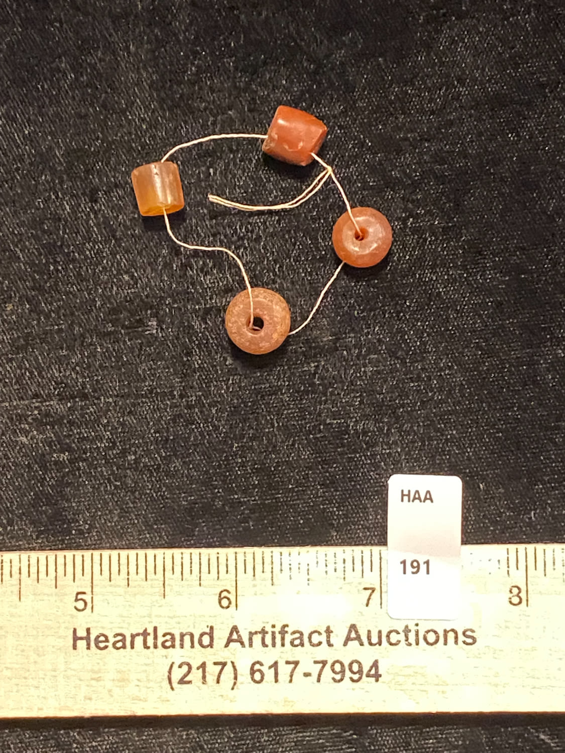 Beautiful shades of orange/red stone indian trade beads out of a Central Illinois Collection